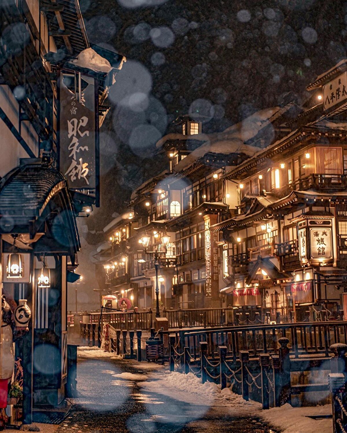 Muhteşem kaplıcalara sahip bir kasaba olan Ginzan Onsen, Japonya'nın Yamagata şehrinde bulunuyor. İsmini kasabanın arkasında bulunan gümüş madeninden alan Ginzan Onsen'in ekonomisi, gümüş madenciliğine ve kasabanın merkezinden geçen nehir boyunca bulunan kaplıcalara dayanıyor. Kasaba, ahşap işçilikle dolu tarihi evleri, gaz lambalarıyla aydınlatılan sokakları ile ziyaretçileri Miyazaki'nin bir filminde geziyormuş gibi hissettiriyor. Kış mevsiminde yoğun kar yağışı görülen kasaba, harika manzaraları sayesinde bu aylarda çok fazla ziyaretçi ağırlıyor. Kasabanın arka tarafında bulunan, 22 metrelik bir şelalenin arkasındaki dağlara doğru yapılan kısa bir yürüyüşle ziyaretçiler, gümüş madeninin bugün hala girilebilen bir bölümüne ulaşabiliyor. Fakat kış aylarında yoğun kar yağışı sebebiyle madene ulaşılamıyor ama yine de muhteşem manzaranın tadını çıkarmak yetiyor. Bu dağların derinliklerinde bulunan kasaba, yalnızca yayalara açık ve ulaşım Ginzan Onsen tren istasyonundan kalkan otobüslerle gerçekleşiyor, kış aylarında bu otobüs hattı, ziyaretçilerin artmasıyla sıklaşıyor.