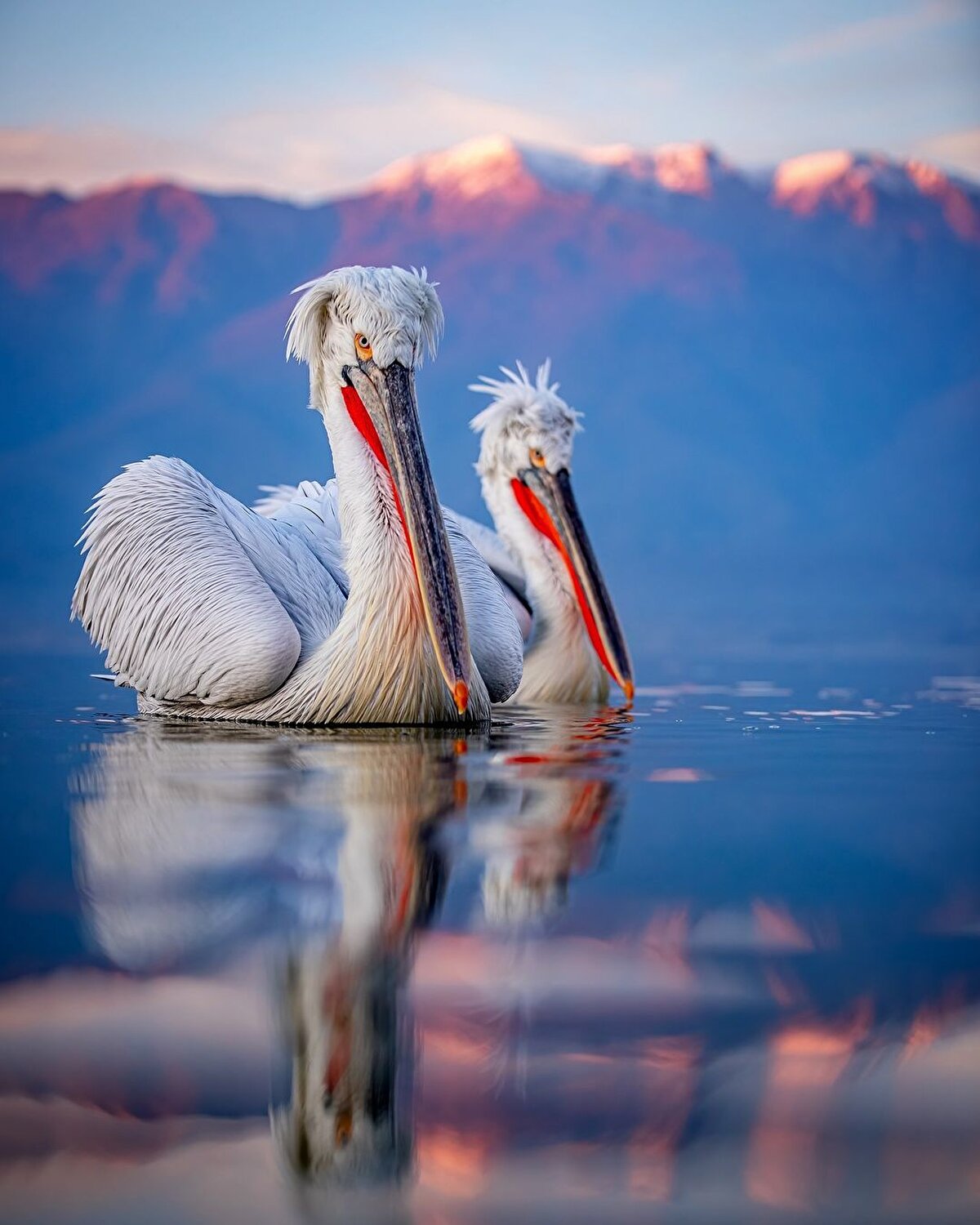 Dalmaçyalı pelikanlar, zarafetleri ve ihtişamlarıyla doğal yaşam alanlarında dikkat çekerken, aynı zamanda iklim değişikliklerine duyarlı yapılarıyla da doğanın hassas dengesini temsil ediyor.