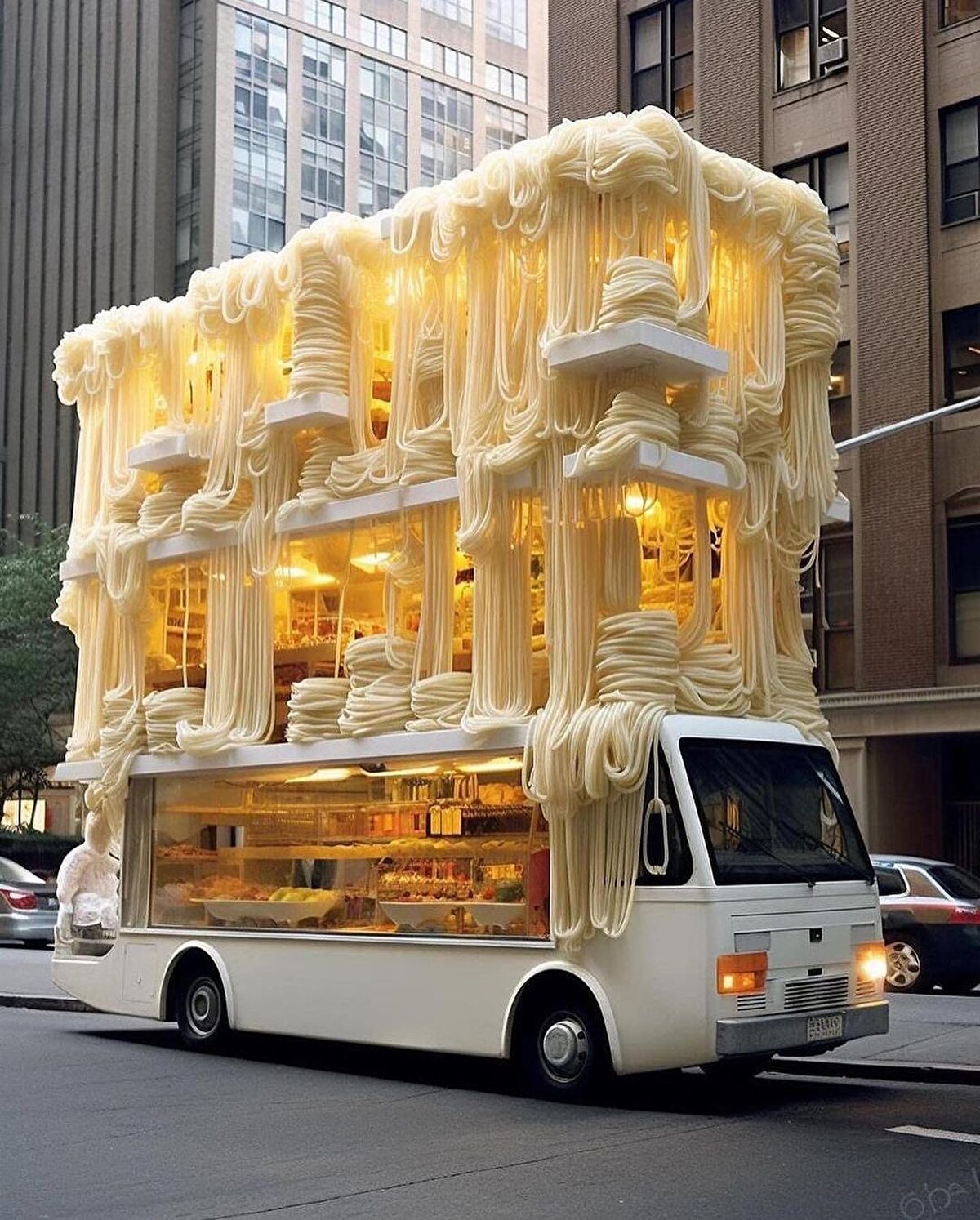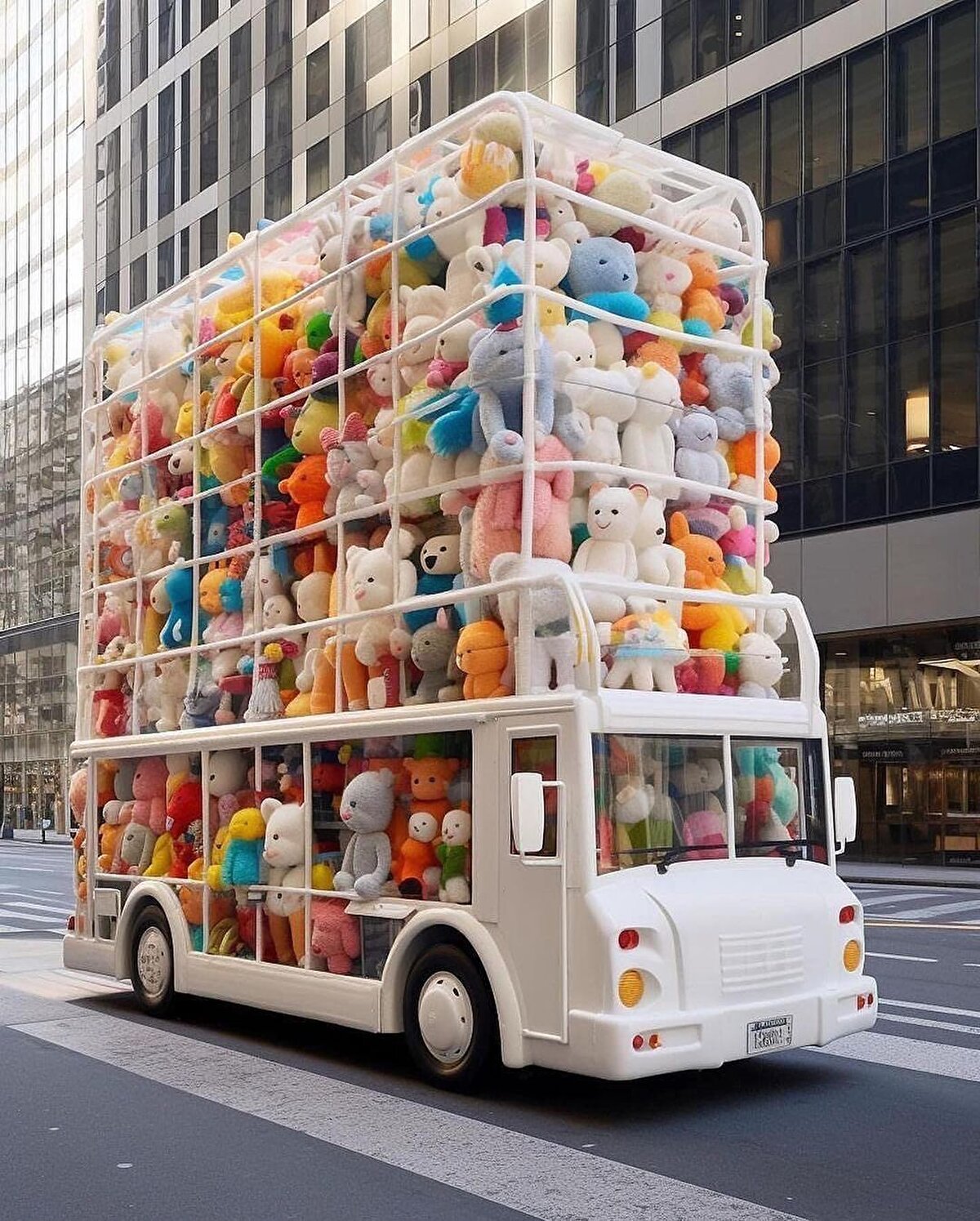 Makarnaları, sebzeleri, ayıcıkları ve daha birçok şeyi mini şehir otobüsleriyle taşımak bizce iyi fikir! Modern teknolojinin ileri seviyeye taşınan yapay zeka algoritmaları, günlük yaşantımızın farklı alanlarında kreatif ve eğlenceli uygulamalara dönüşebiliyor. Yapay zeka sanatçısı @joooo.ann yapay zeka destekli, akla gelmeyecek çok sayıda eşyayı normalden farklı boyutta tasarlayıp görenlere farklı bir deneyim sunuyor. Bu benzersiz deneyimde mini şehir otobüslerine binen dev makarnalar, sebzeler, meyveler ve otobüsün camından bakan dev ayıcıklara rastlamak mümkün.