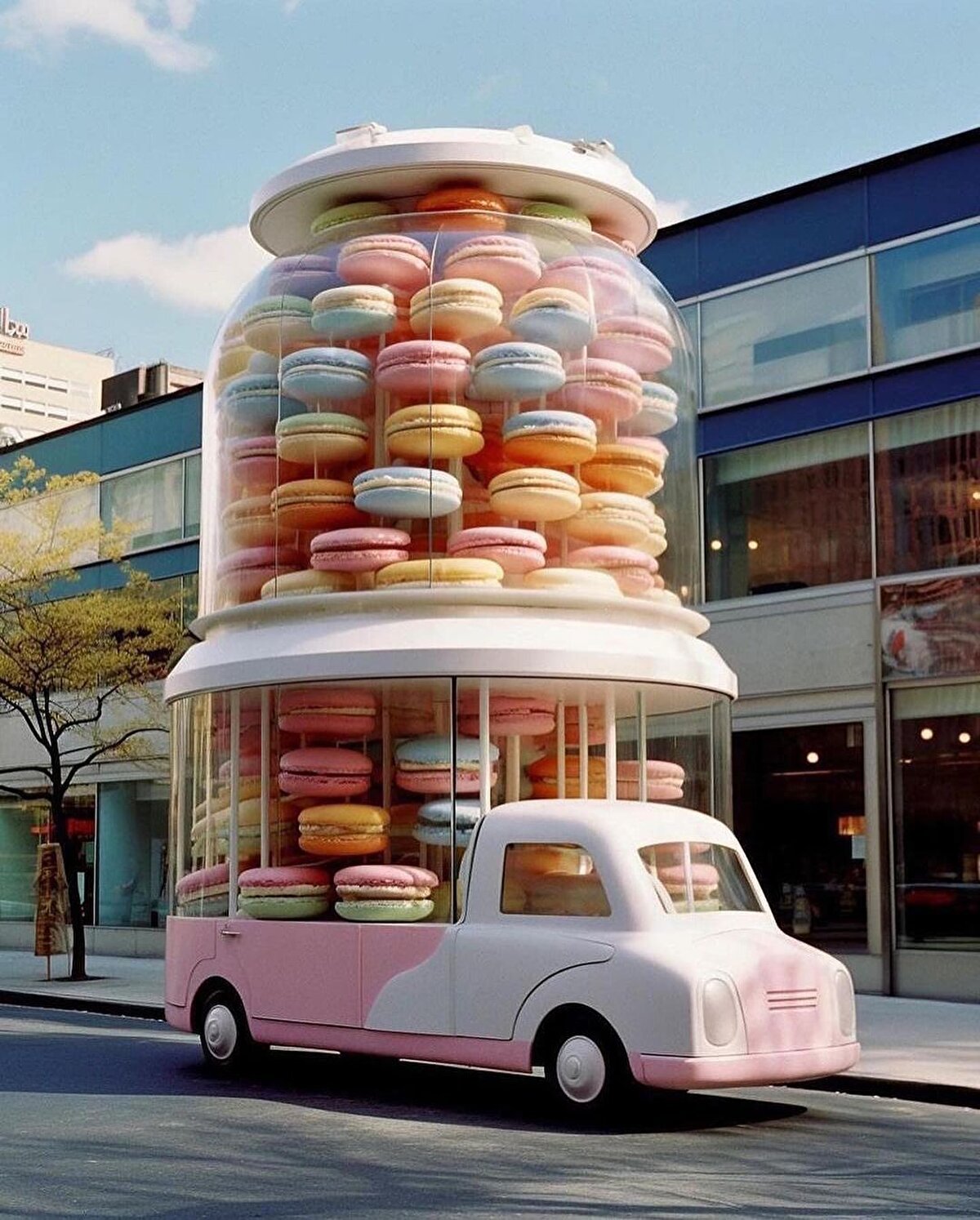 Lezzetin teknolojiyle harmanlanmasının sonucu olan, yapay zeka ile oluşturulan bu sevimli yiyecekler mini şehir otobüsleriyle şehir turuna çıkıyor ve bizi de yapay zekanın gücüyle büyülüyor. Sahiden böyle bir şehirde yaşamak nasıl olurdu demekten kendimizi alıkoyamıyoruz.