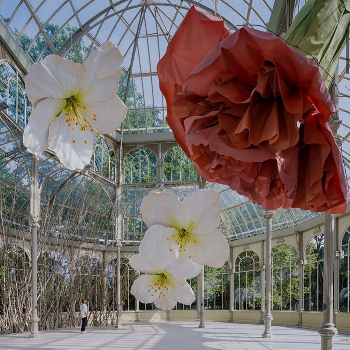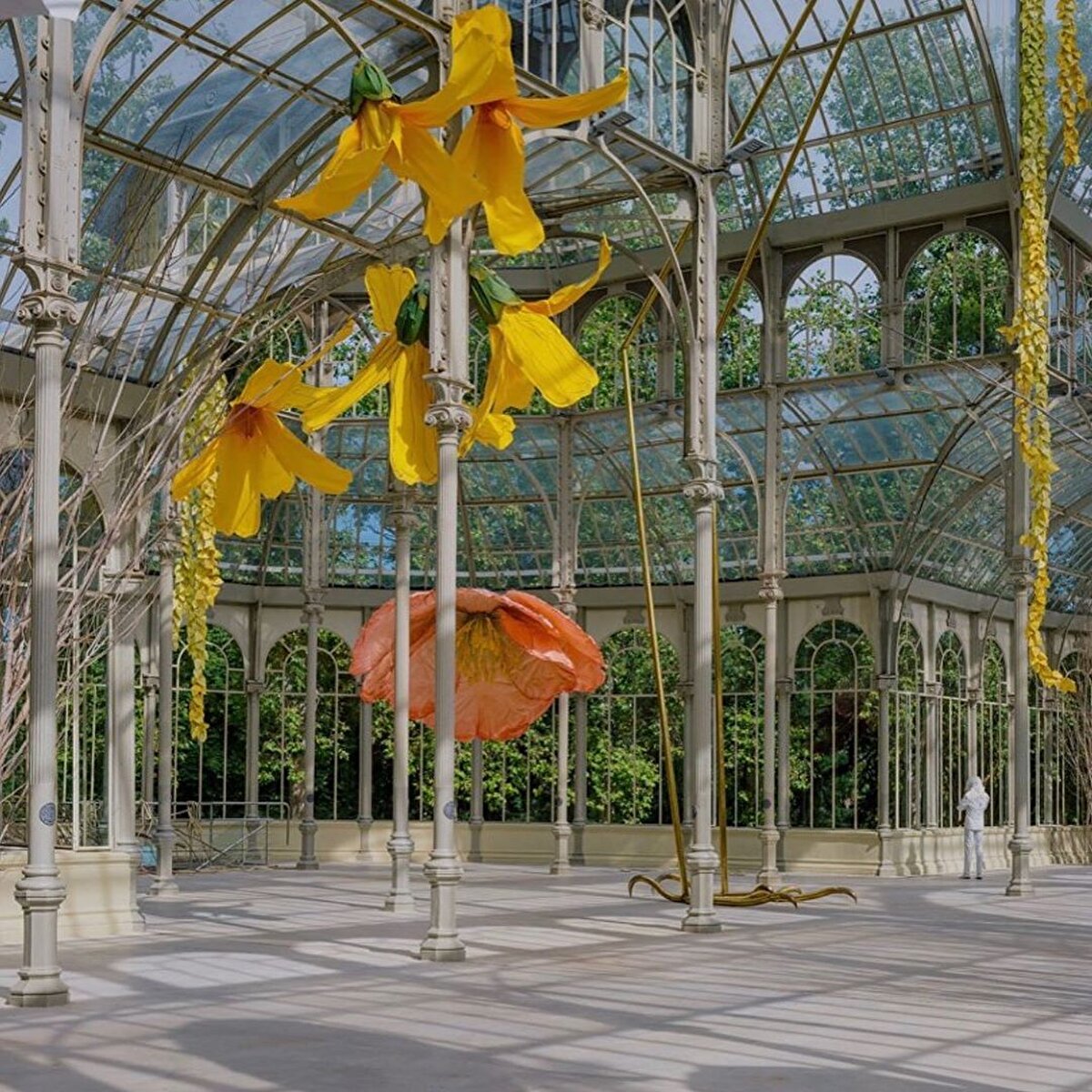 📌Kosova'da doğan sanatçı Petrit Halilaj, İspanya'daki ilk kişisel sergisinde camdan sarayı devasa çiçeklerle doldurmuş. Nilüfer, palmiye, kiraz çiçeği gibi çiçek formlarını seçen sanatçı, kültürel kimlik, ev, millet gibi konular üzerinde çalışıyor. Sanatçı, yuvanın ve çiçeklerin boyutunu büyüterek, bir anlığına bile olsa, insanların her şeyin merkezi ve ölçüsü olduğu fikrinden kaçmaya teşvik ediyor.⠀ ⠀ Sergisi hakkında konuşan sanatçı, “Palacio de Cristal'ı sevginin kutlanacağı bir yer olarak düşünmek istedim." diyor. 🧡
