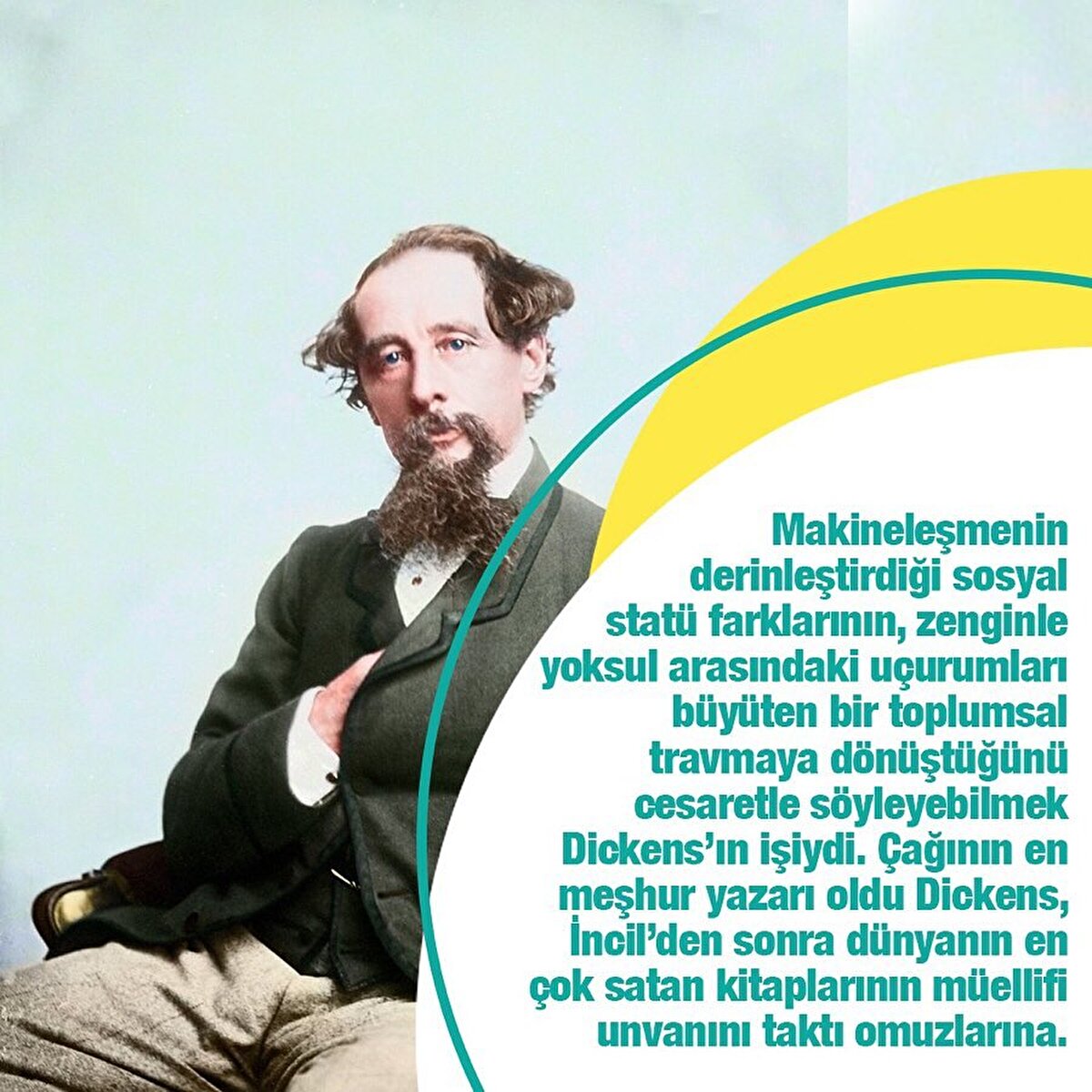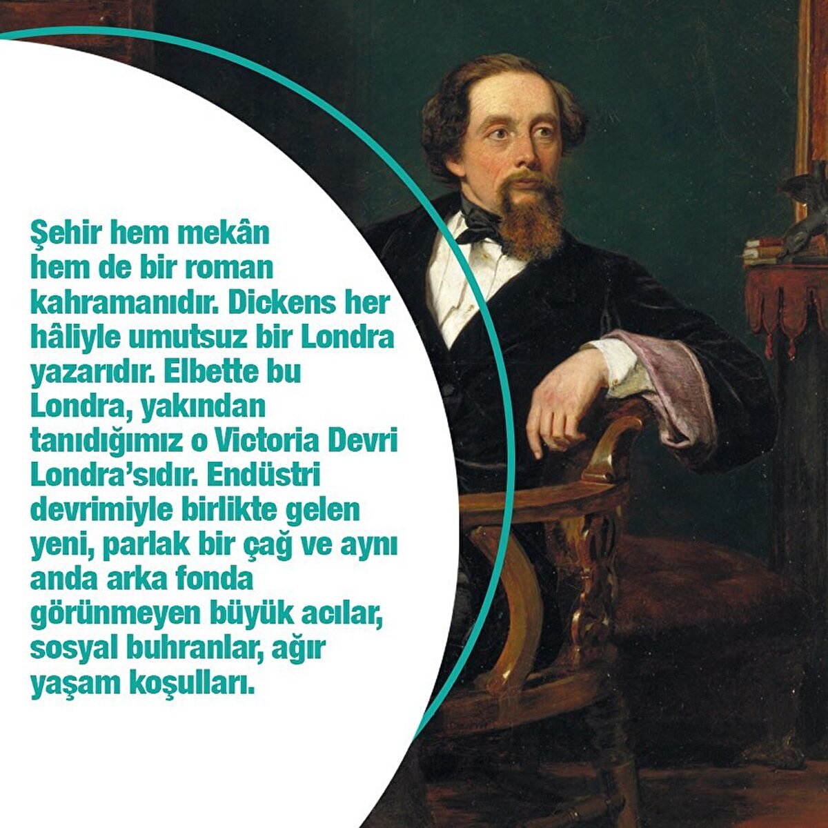 Toparlanın, Dickens'ın Londra'sına gidiyoruz! 🙌🏻😌 📚 Dickens'ın Londra'sı çoğu zaman büyük umutsuzluklarla kuşatılmış. Onun için, kara, tozlu, umutsuz bir şehir burası. Müşterek Dostumuz romanındaki şu pasaj mesela: “Bahar akşamları, görmezden gelinemeyecek kadar uzun ve aydınlık olduğunda, hava da böyle zıvanadan çıktığında, Bay Podsnap'ın açıklayıcı bir biçimde London, Londra, Londres dediği şehir berbat bir hâl alırdı. Sobası tüten bir evle, kocasını azarlayan bir hatunun özelliklerini birleştiren, kara, şirret bir şehir; kumlu kumlu bir şehir; kurşundan örtüsünde tek bir delik olmayan umutsuz bir şehir; Essex ve Kent'in devasa Bataklık Kuvvetleri tarafından kuşatılmış bir şehir." ⠀⠀ Bu kadar karamsar olmasının nedeni belki de hayatla çok küçük yaşta tanışmasındandır. Sahi, sen hiç tanıştın mı Dickens kitaplarıyla? 👀
