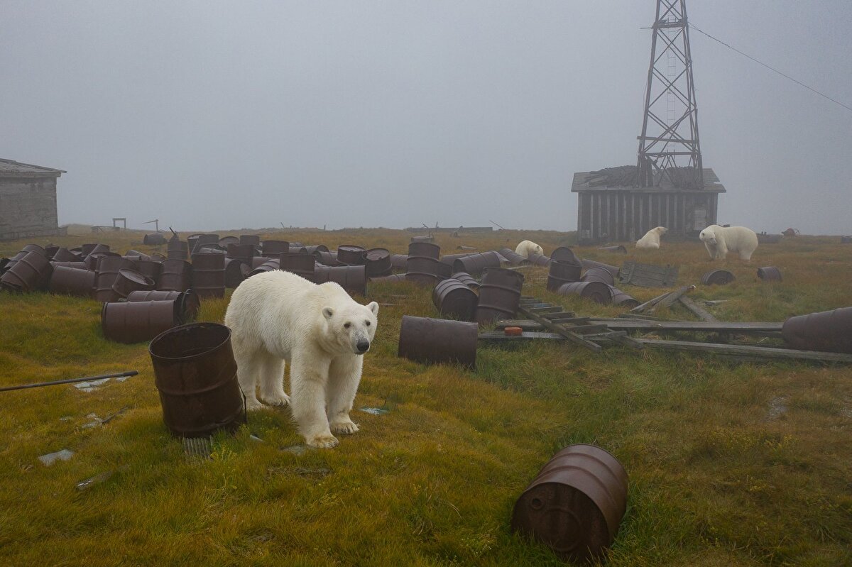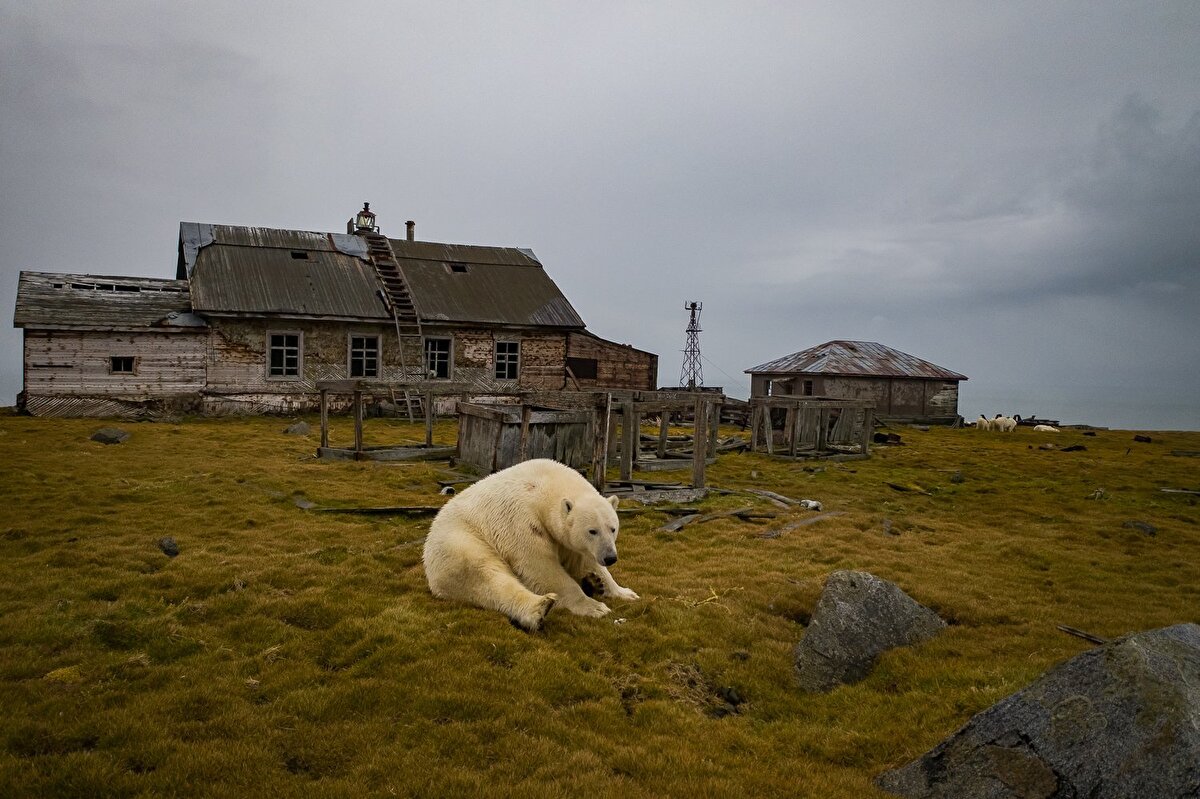 Dmitry Kokh'un yeni fotoğraf serisinde; kurumuş çimenler, paslanmış tanklar arasında, enkazdan oluşan terk edilmiş meteoroloji istasyonunu ele geçiren bir kutup ayısı grubu yer alıyor. Yıkık mülkte dolaşan ve kafalarını pencerelerden uzatan minik ayılar ortaya bu harika görüntülerin çıkmasını sağlamış.