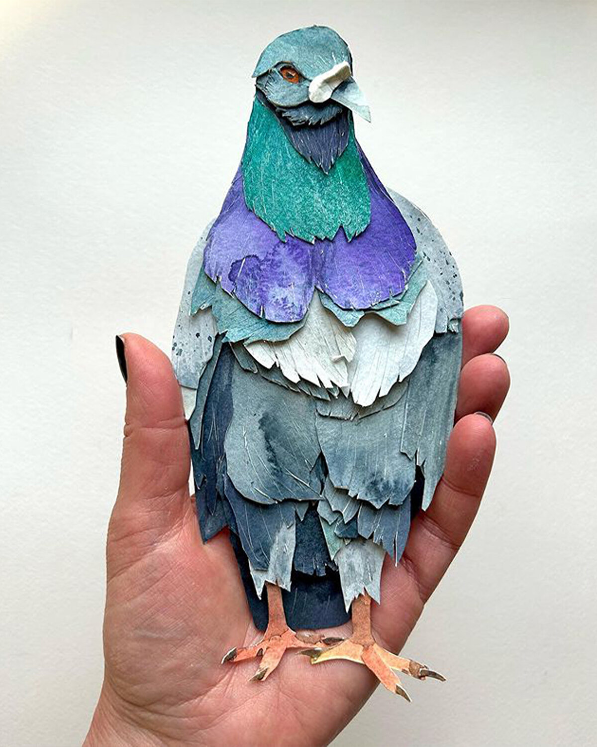 Conneticut'lı sanatçı @sarahsnippets, sulu boya ile gerçekçi hayvan portreleri yapıyor. Sanatçı, kuşların, tavukların, ördeklerin tüylerini ve ifadelerini gerçekçi bir şekilde aktarmak için sulu boyayı kullanıyor. Genellikle rastgele seçtiği kuşların kendine özgü tüylerini, boncuk gözlerini aktarmak için sulu boyanın inceliğinden yararlanıyor. Suplina, çalışmaları için yürüyüşleri sırasında güvercinlere odaklanıyor ve çevresini gözlemleyerek ilham alıyor. Bütün ayrıntıları ve karmaşıklıklarıyla bir kuşun tamamlanması ortalama 6-10 saat sürüyor.“Güvercinlerin kendine has renklerini doğru yakalamak zor “ diyen sanatçı, “kuşları kendilerine özgü kişilikleri ve özellikleriyle kağıda yansıtmak hayalim. “ diye de ekliyor.