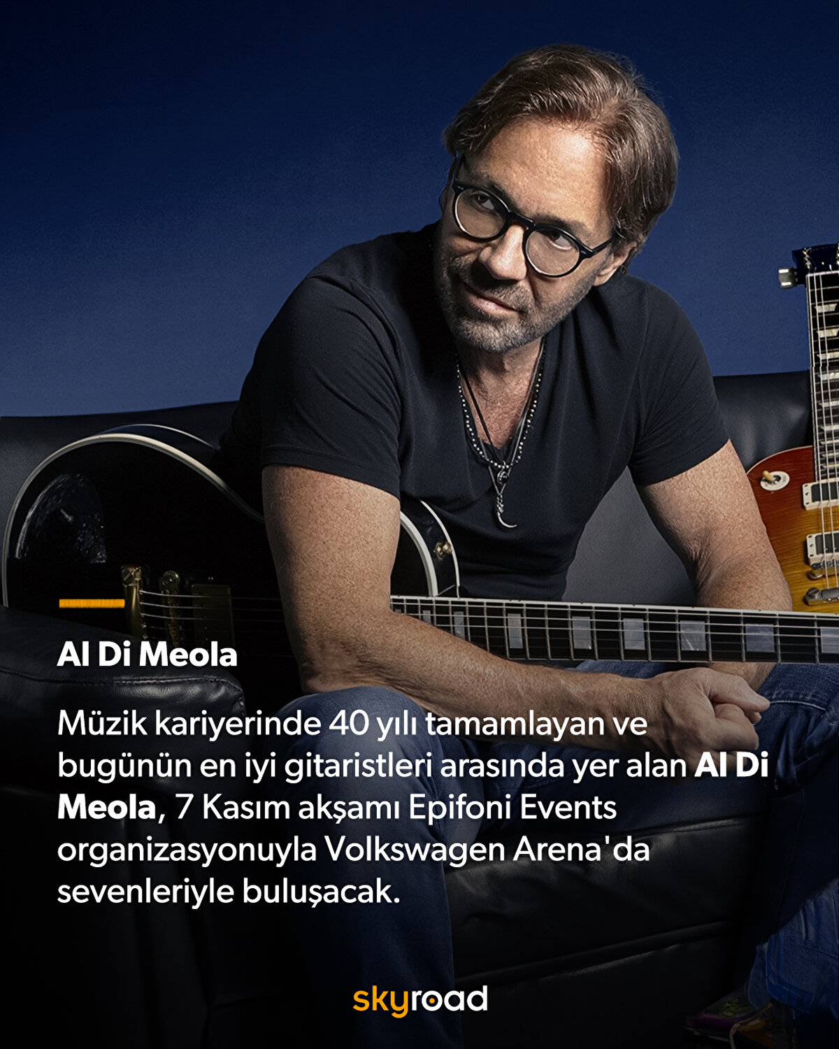 Dünya çapında tanınan ünlü müzisyenler, 2024-2025 sezonunda başta İstanbul olmak üzere Türkiye'nin birçok şehrinde müzikseverlerle buluşacak. Al Di Meola, bu akşam Epifoni Events organizasyonuyla Volkswagen Arena'da!