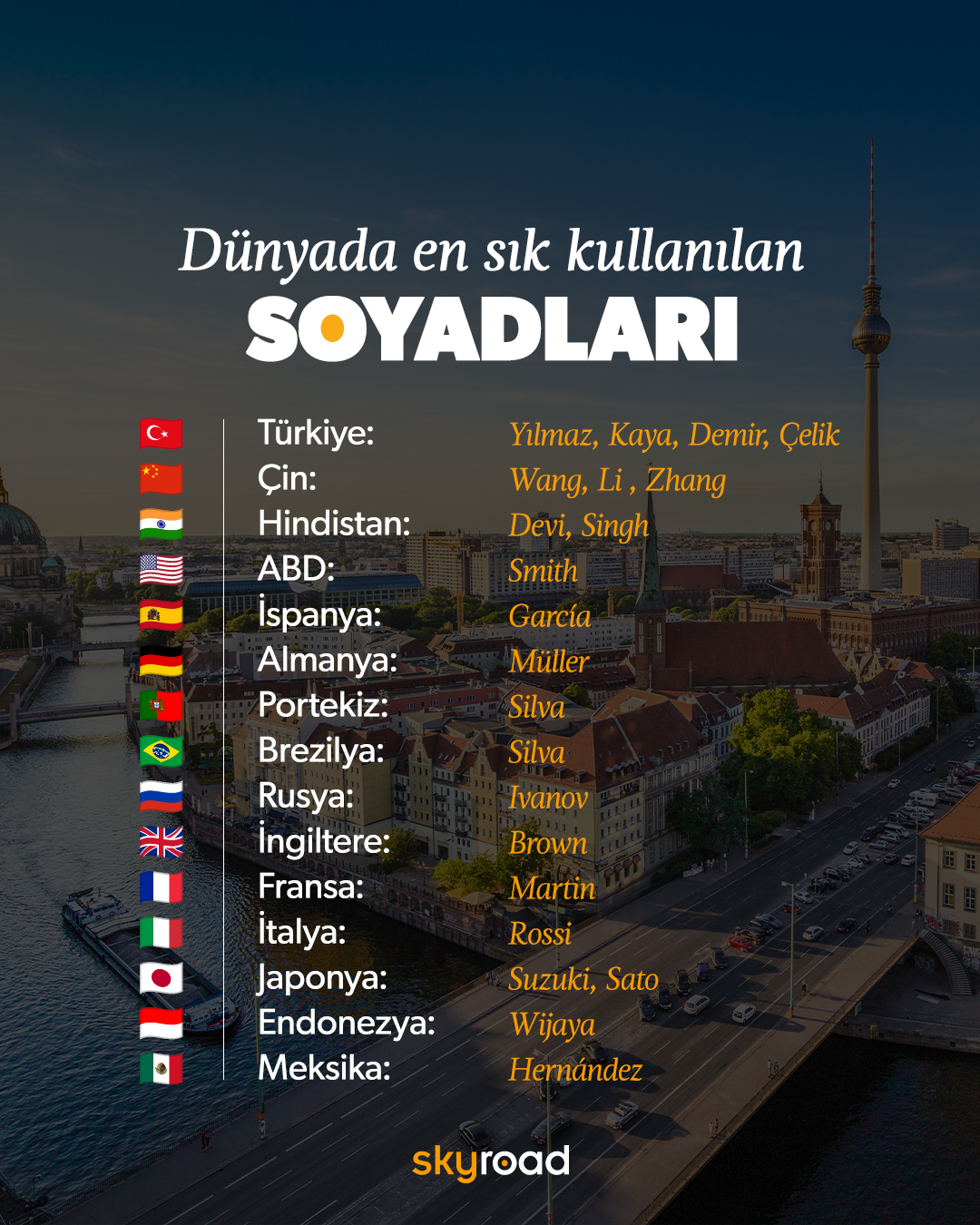 Sizin için nüfus yoğunluğuna ve tarihi göçlere göre şekillenen, dünyanın en yaygın soyadlarını listeledik.