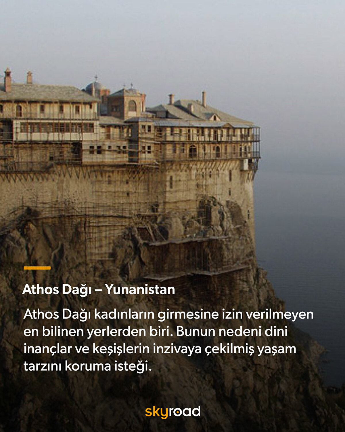 Kulağa inanılmaz gelse de, günümüzde hala bazı bölgelerde kadınların sadece cinsiyetlerinden dolayı adım atmasına izin verilmiyor. Gerek dini gerekse geleneksel nedenlerle sınır çizilen bu yerlerde, kadınlar yüzyıllardır dışlanıyor. Bu yasaklar çoğu zaman gelenek adı altında devam ediyor.