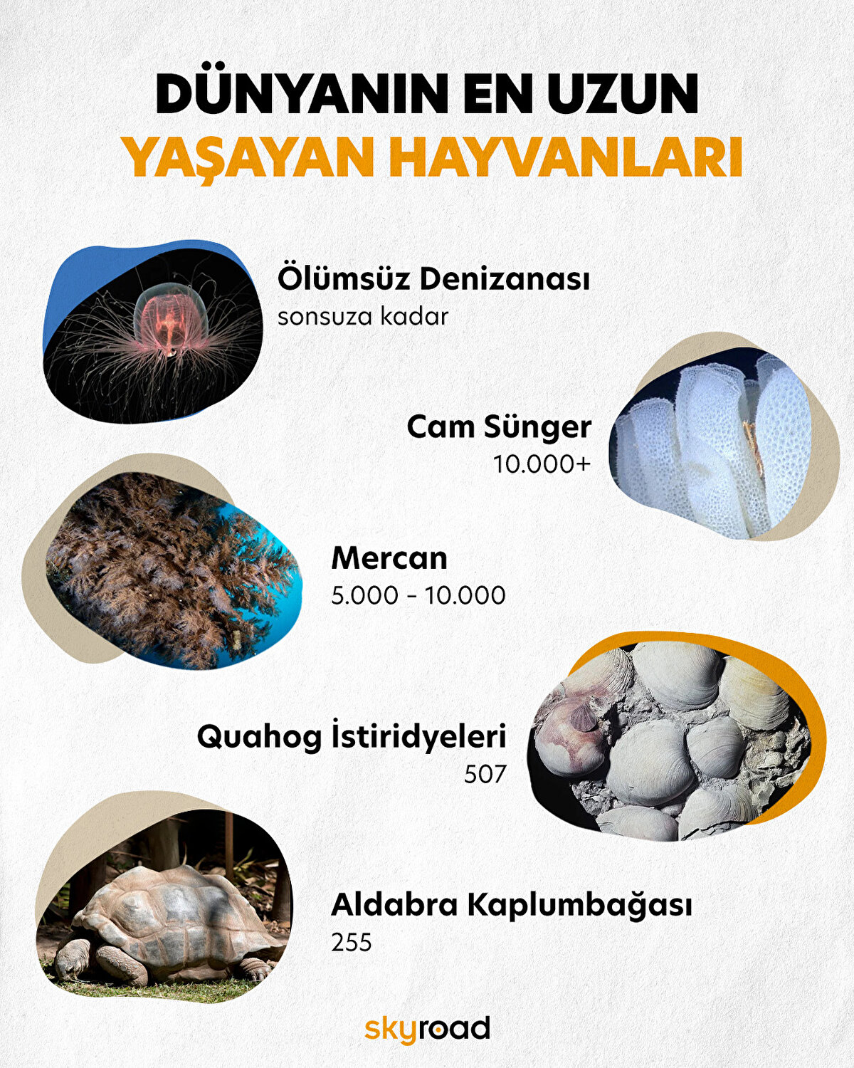 Uzun ömürlü olmayı birçok canlı ister ama bu hayvanlar istemeseler dahi uzun yaşıyorlar hatta bi' hayvanın sonsuz ömrü var. Dünyanın en uzun ömürlü hayvanları ortalama bir insan ömründen çok daha uzun bir ömre sahip. Ayrıca bu listede kaplumbağa dışındaki hayvanlar suda yaşayan hayvanlar.
