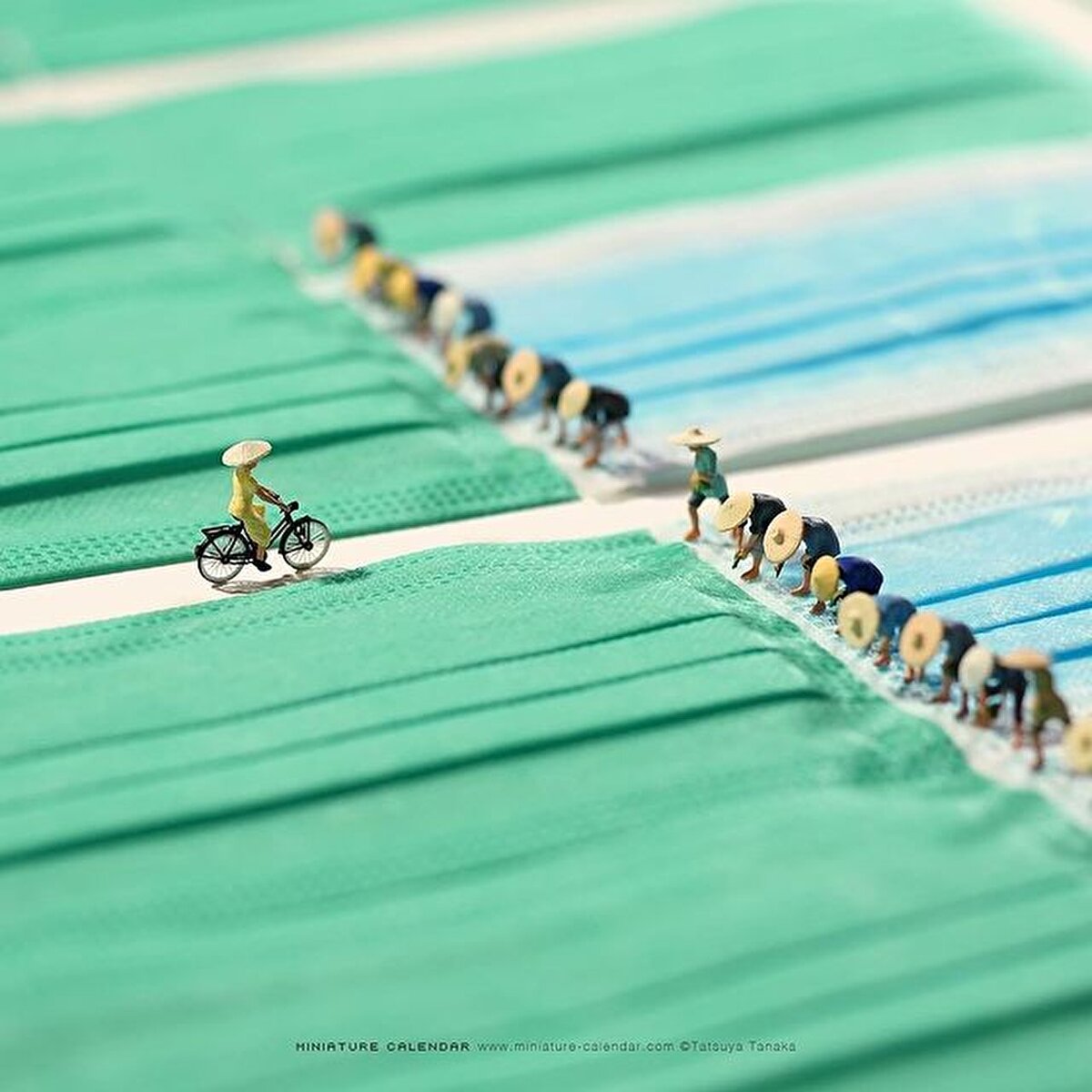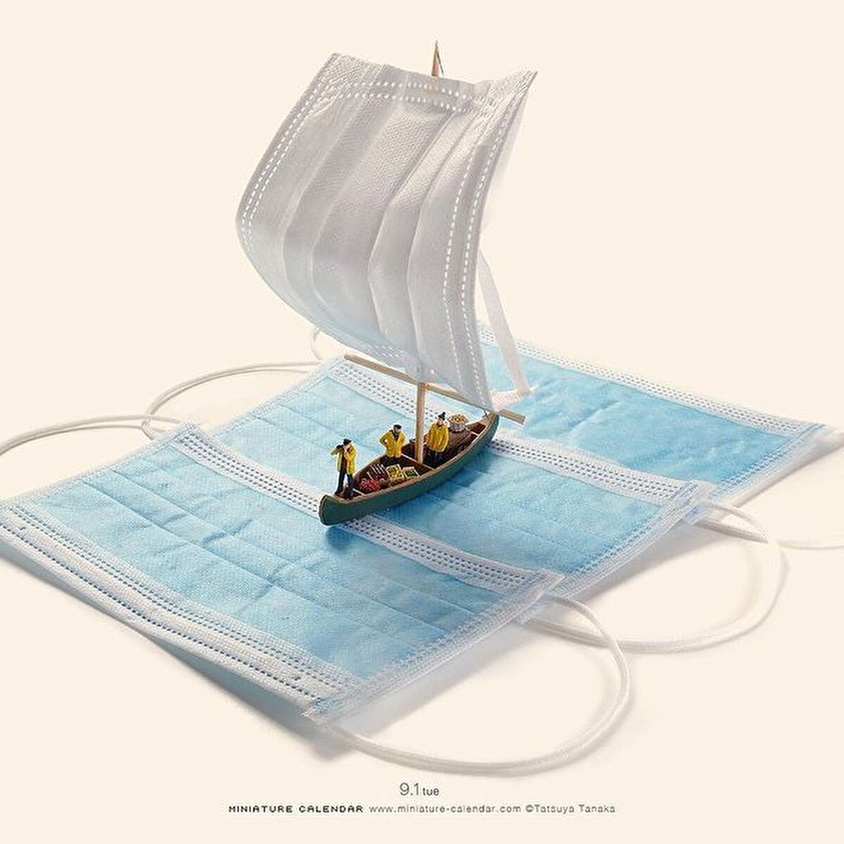 Tanaka'nın minyatürlerinden daha önce de bahsetmiştik. Maske serisine bayılıyoruz! 😷🙌🏻⠀ ⠀ 📌 Dünyanın ilk “minyatür" fotoğrafçısı Tanaka, son 10 yıldır takvim halinde günlük minyatür manzaralar ortaya çıkarıyor. Gündelik malzemeler kullanarak kendi minyatür sahnelerini oluşturuyor. Nisan 2011'den beri çalışmalarını sürdüren fotoğrafçının her çalışması yaklaşık olarak 5 saatini alıyor. ⠀ ⠀ Makarna, ayakkabı, sebze, meyve, hesap makinesi gibi gündelik eşyalarla minyatür fotoğraflar ortaya çıkaran Tanaka, pandemi dönemiyle en gündelik eşyamız olan tek kullanımlık maskeleri de minyatür dünyasına eklemiş. ⠀ Fotoğrafçı bu dönemde yaptığı çalışmaları üzerine bir röportajında şöyle diyor: ⠀ “Evlerimizde daha fazla zaman geçiriyoruz. Bu, etrafınıza iyice bakmak için bir fırsat olabilir; küçük bir görüş değişikliği sayesinde dünyanın ilginç şeylerle dolu olduğunu fark edebilirsiniz."⠀ ⠀ We thank @tanaka_tatsuya for these amazing works. 🧡
