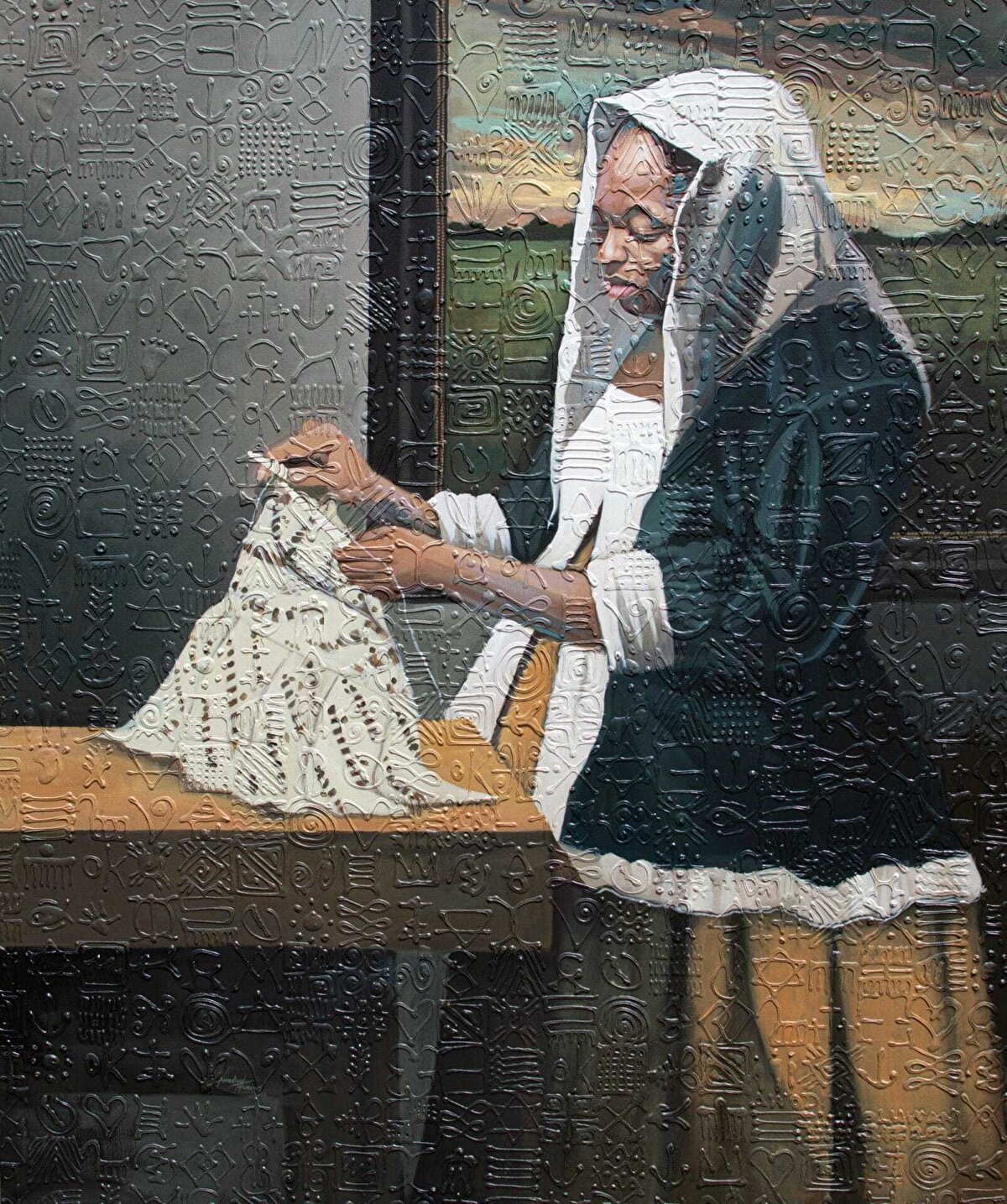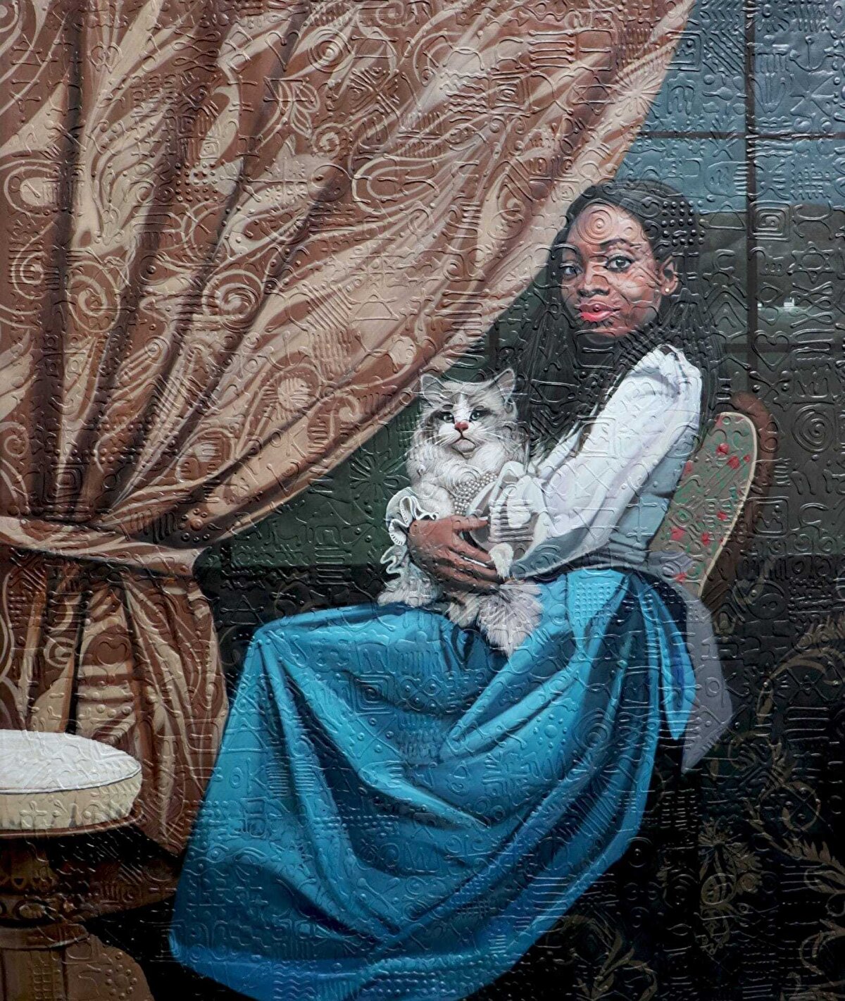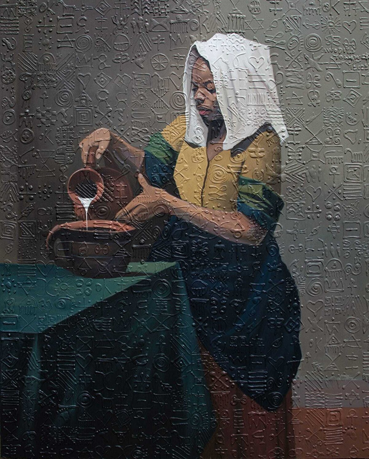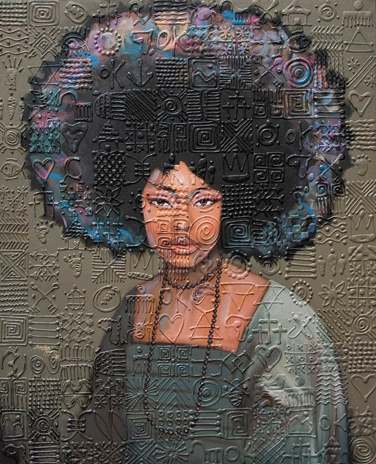 Afrikalı sanatçı @awodiya_toluwani, tuval üzerine akrilik boyama yöntemi ile ortaya çıkardığı eserlerde yalnızca bir portre değil, seyahatleri esnasında gözlemlediği ve zihnine kazınan kültürlerdeki bazı yaralayıcı yönleri portreler üzerine belirgin semboller halinde resmedilmiş düşündürücü dokunuşları görmek mümkün.