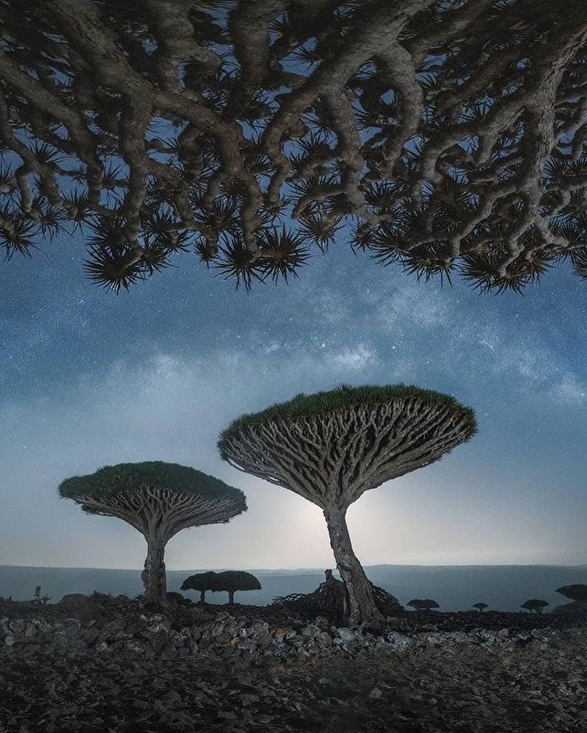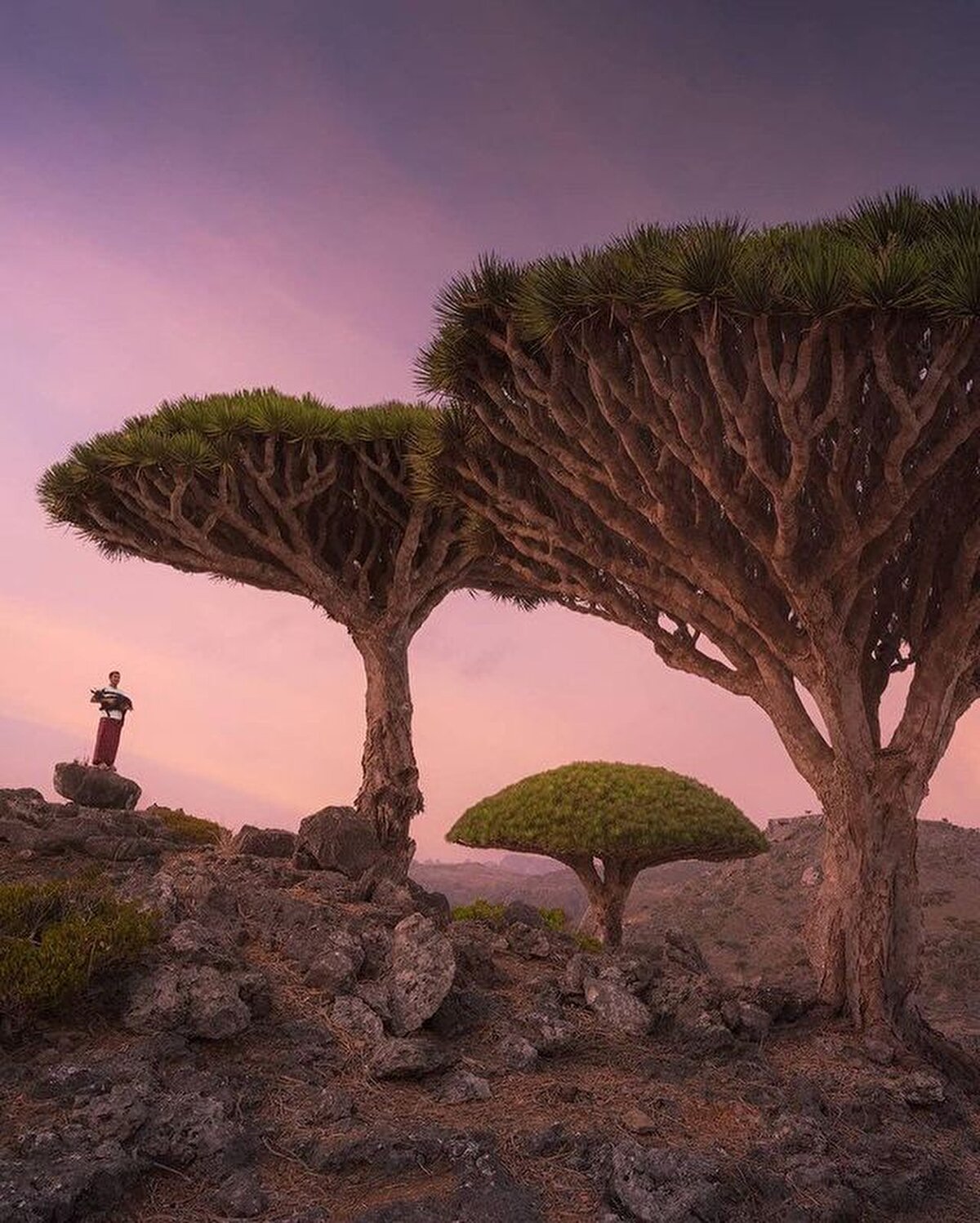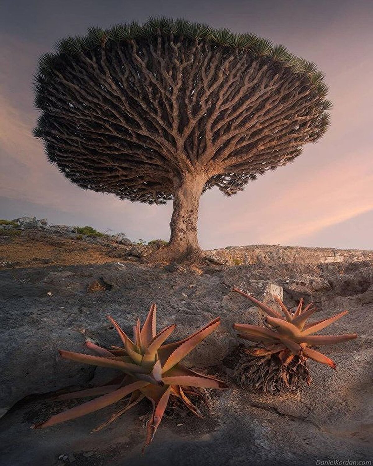 Daha önce kendisiyle karşılaşmış mıydın? Tanıştıralım, ejderha kanı ağacı. 🤩⠀ ⠀ 📌 Sıra dışı görünümleriyle ejderha kanı ağaçları veya Dracaena Cinnabari, endemik bir ağaç türü. Yalnızca Afrika Boynuzu'nun 240 kilometre açıklarındaki Sokotra adasında yetişiyor. Ada florasının yaklaşık yüzde 37'si endemik ve ejderha kanı ağacı en çok ilgi uyandıranlardan biri. Yavaş büyüyen ve yapraklarını dökmeyen bu ağaç uzaktan dev bir mantara benziyor. Kuru iklime uygun sık dalları ve mumsu yapıya sahip yaprakları suyu hapsetmesini ve korumasını sağlıyor.⠀ ⠀ 🐉 Bir efsaneye göre ise bu ağaç, fille savaşan ejderhanın kanıyla oluştu. Efsanedeki ejderha gibi bu ağaç da yaralandığında kırmızı bir reçine ortaya çıkar.⠀ ⠀ We thank @danielkordan for these amazing photos. 🧡