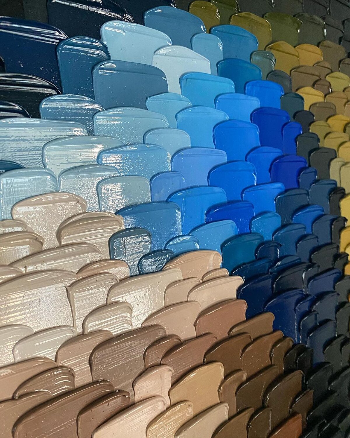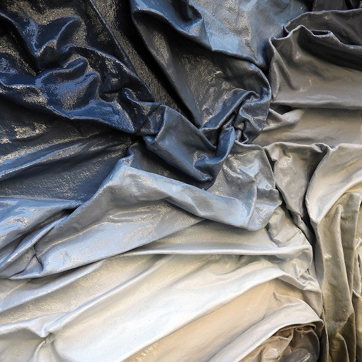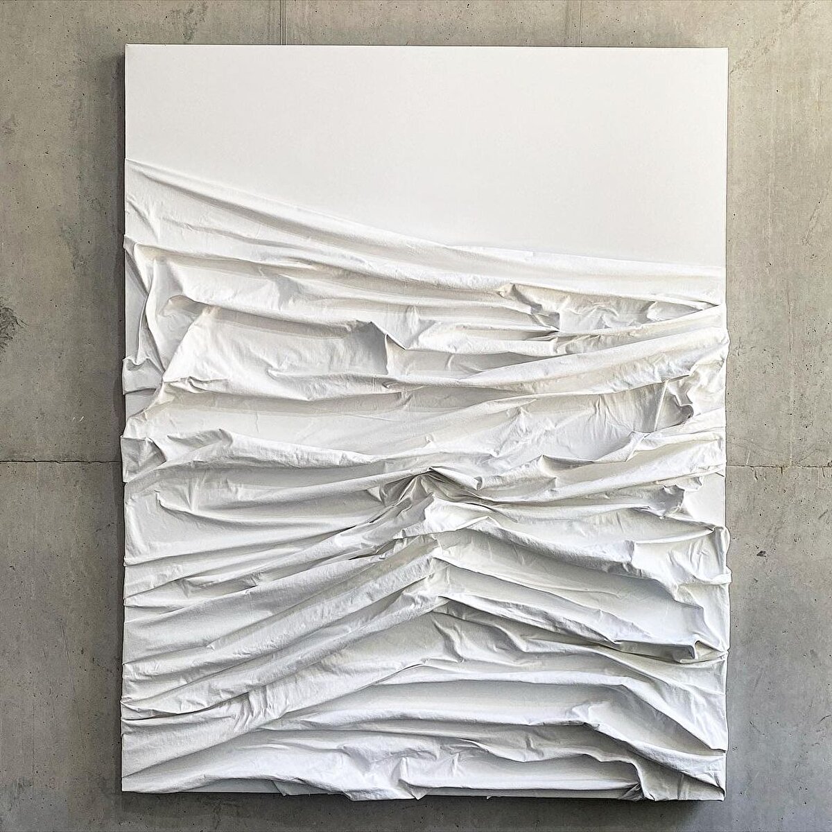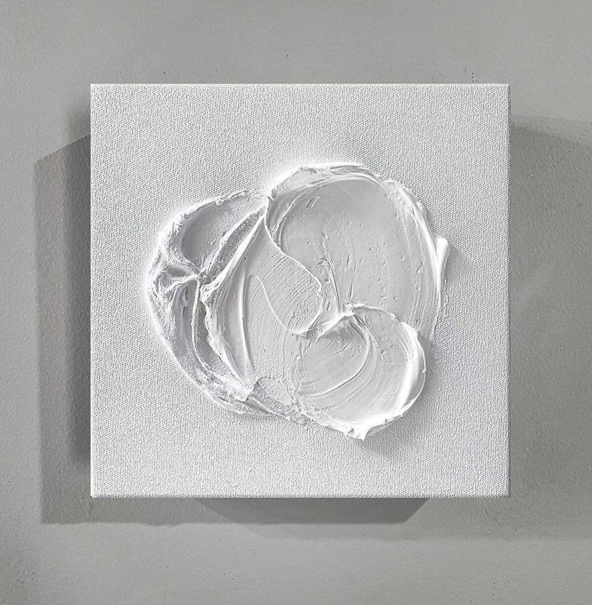 Sanatçı, yağlı boya, beton ve reçine kullanarak tuval üzerinde çalışıyor. Bir kumaş parçasının dalgaları, pütürlü beton, macunumsu yağlıboya; tüm bunların yapısını kullanarak dokulu soyut eserlerde ışık yansımalarının kattığı hisse yönlendiriyor. Hayatın, iniş ve çıkış denkleminde tek bir bakış olmadığını, insanın derinlikli bir varlık olduğunu ve denge halinde bir sürecin gerçekliğine işaret ediliyor.