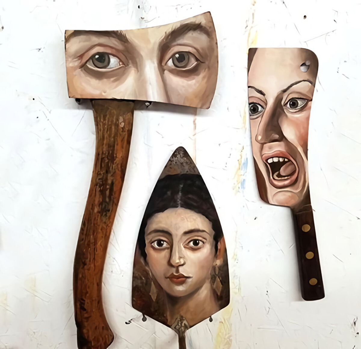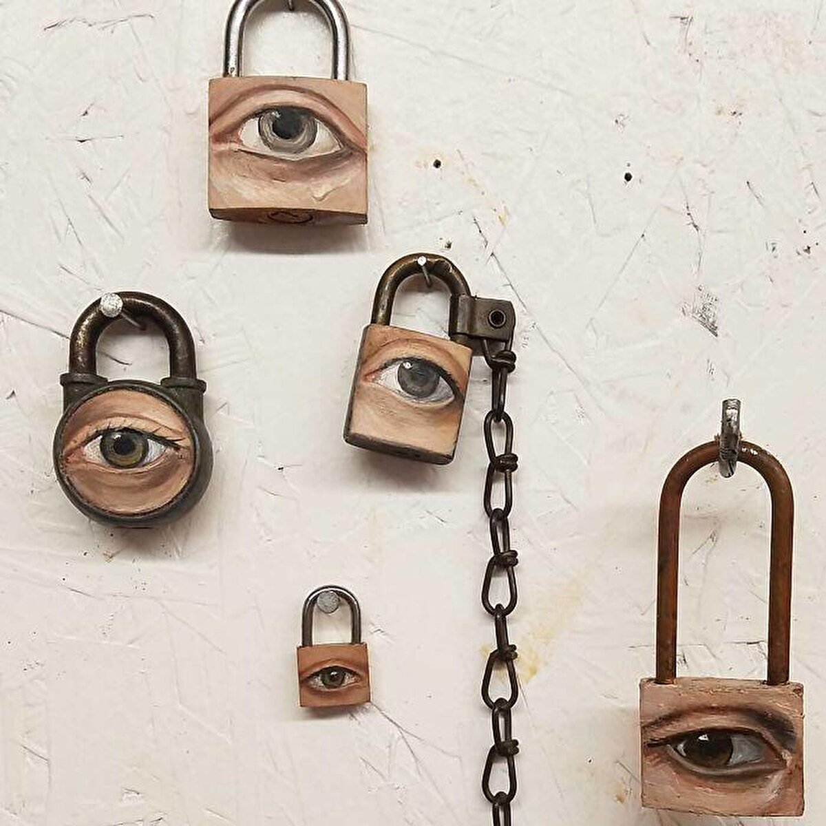 🙌 Alexandra Dillon, bulduğu nesneler üzerinde sanatını oluşturan Los Angeles merkezli sürrealist bir ressam. Dillon, mesleğinin aracı olan yıpranmış kilitler, ütü, balta ve boya fırçalarına hayali portreler çiziyor. Küçük resimler benzersiz kişilikleri yansıtıyor; "Karakterlerim bana bir yazara gelen ilham gibi geliyor ve bi anda kafamda belirip bana kim olduklarını söylüyorlar, ben de resmediyorum'' diye belirtiyor.