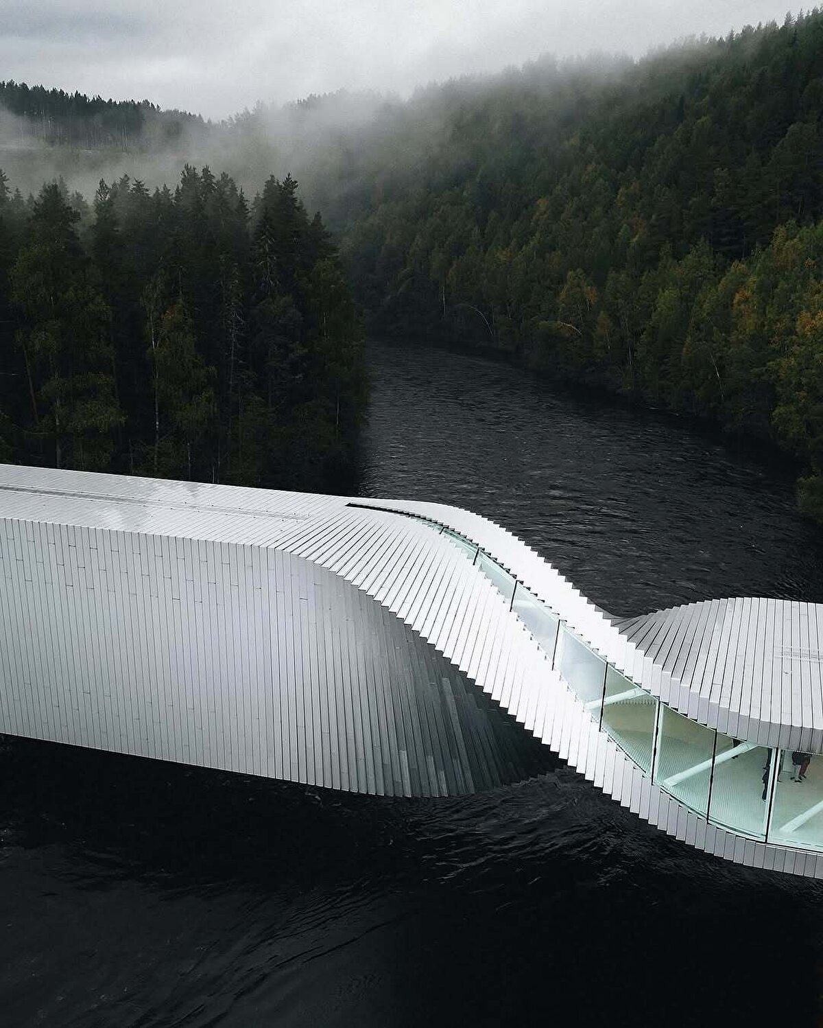 Norveç'in Kistefos Müzesi'nde yer alan Twist, hem sanat galerisi hem de köprü olarak işlev gören, mimari açıdan çığır açan bir yapı. Bjarke Ingels Group (BIG) tarafından tasarlanan bu etkileyici yapı, Randselva Nehri üzerinde 90 derecelik bir bükülme ile iki kıyıyı birbirine bağlıyor.