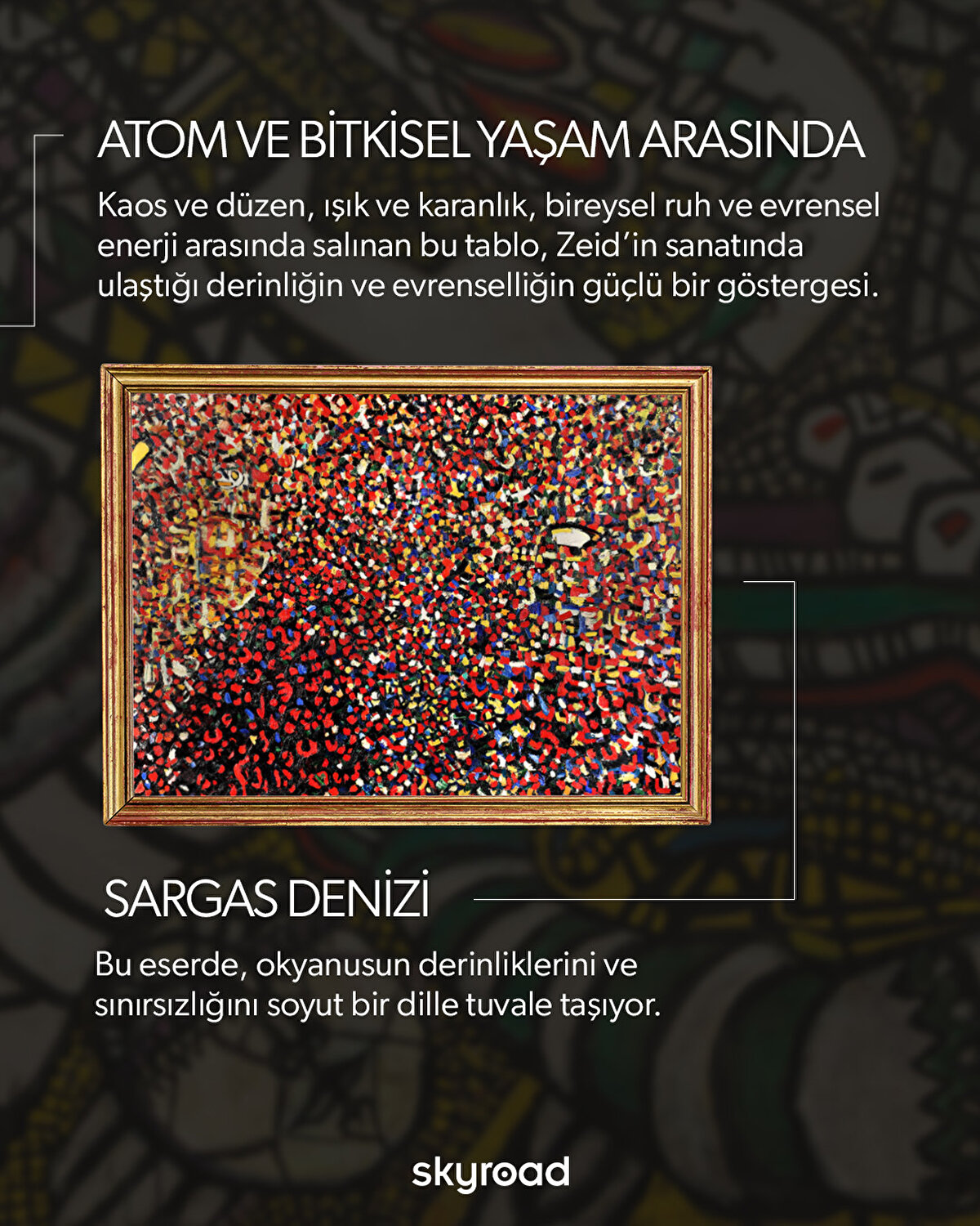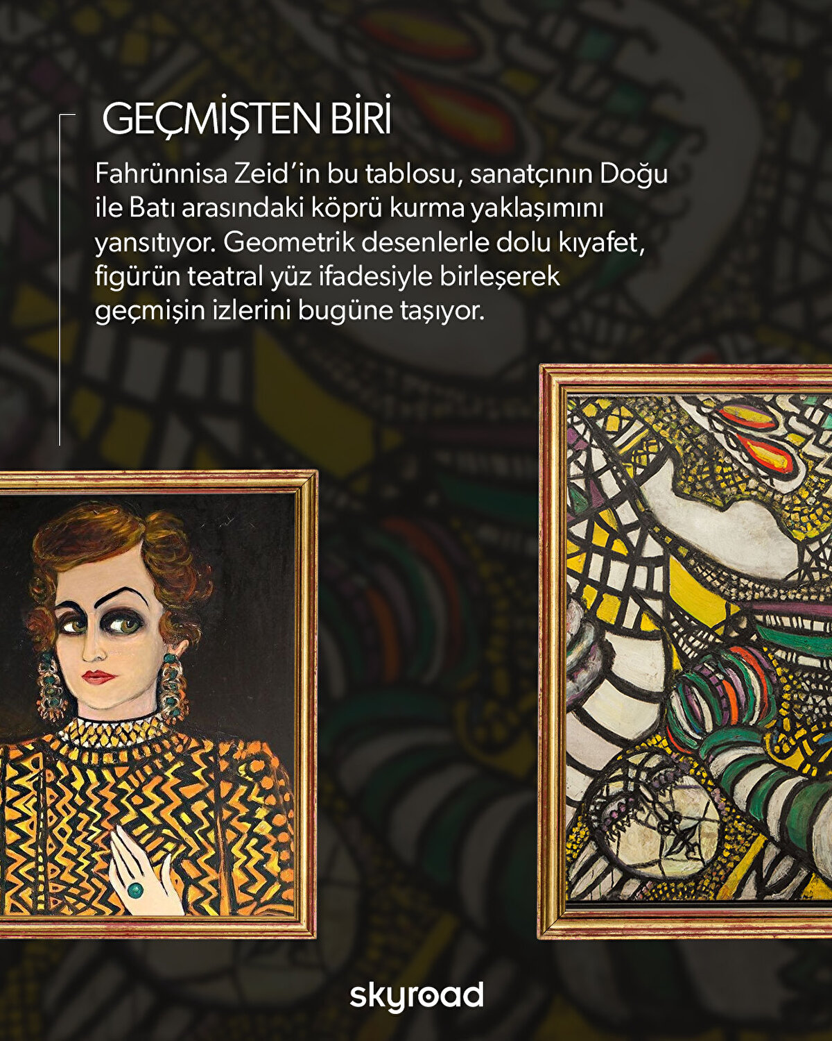 Fahrünnisa Zeid, modern sanatın sınırlarını Doğu ve Batı estetiğini bir araya getirerek zorlayan öncü bir ressam. İstanbul'da doğup büyüyen Zeid, sanat eğitimini Avrupa'da tamamlayarak farklı kültürlerin etkilerini eserlerine taşıdı. Soyut ve geometrik formları, zengin ve canlı renk paletleriyle birleştiren sanatçı, özellikle büyük tuval çalışmalarıyla izleyici üzerinde güçlü bir etki bırakıyor. Eserlerinde İslam sanatının geleneksel motiflerini modern bir yorumla sunan Zeid, görselliğiyle olduğu kadar kültürel yaklaşımıyla da sanat tarihine iz bıraktı.