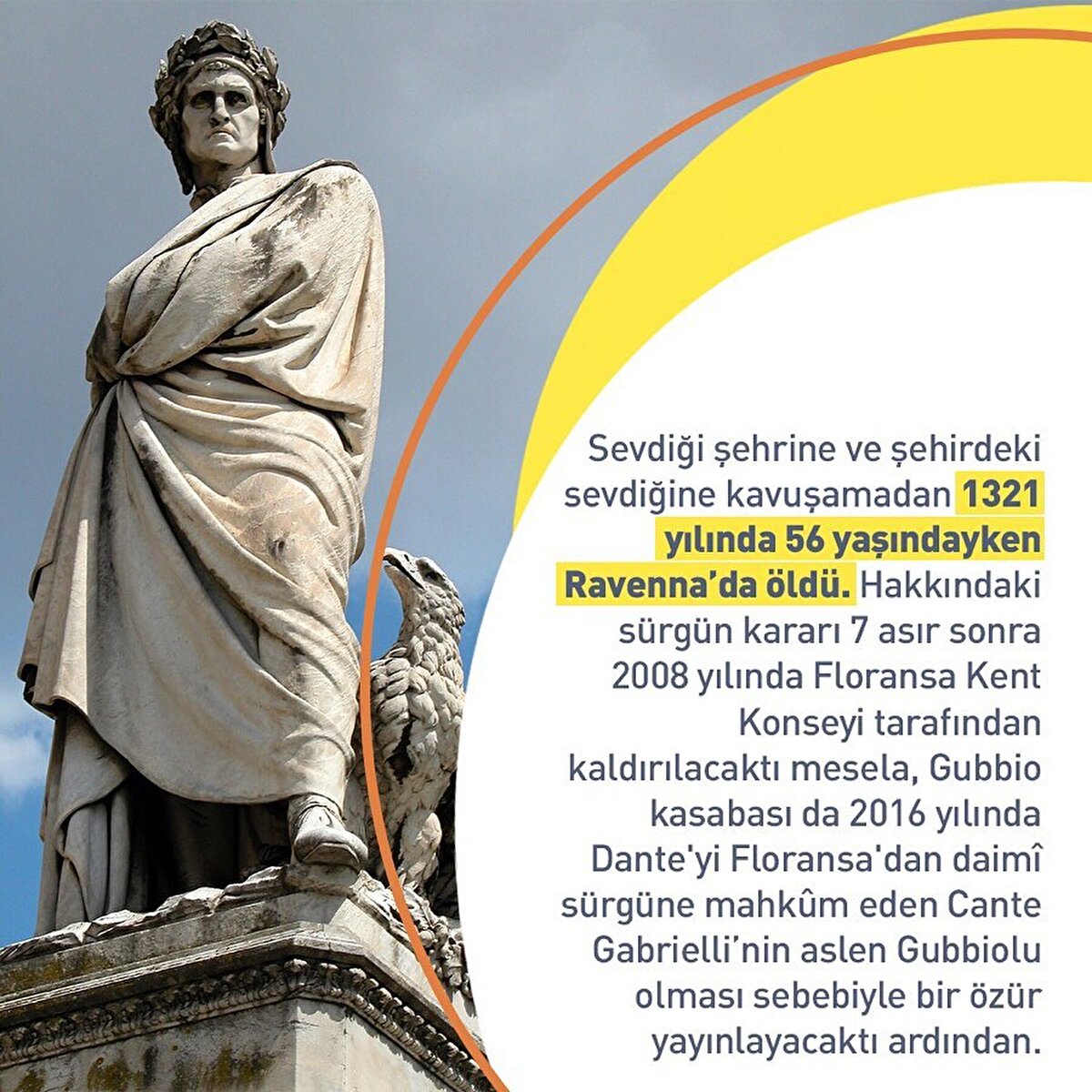 Dante, 700 yıldır Floransa sokaklarında ölümsüz!✍🏻⠀ ⠀ Floransa için söylenen "Eğer İtalya Mona Lisa olsaydı, Floransa onun gülüşü olurdu" sözünün kapsadığı geniş bir anlam var elbette. Ama büyük aşkı Beatrice'i kaybettiğinde henüz 25 yaşında olan Dante için ancak kederli zamanların mekânı olarak tanımlanabilirdi Floransa. Kederli ve uğrunda savaşmaya, ölmeye değer. 🙌🏻💭