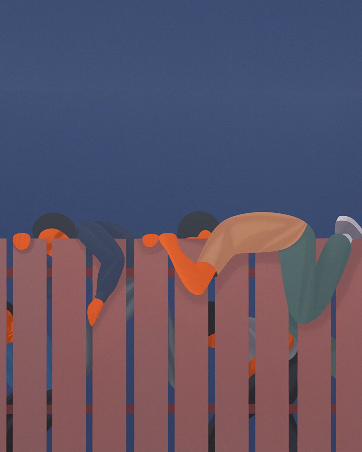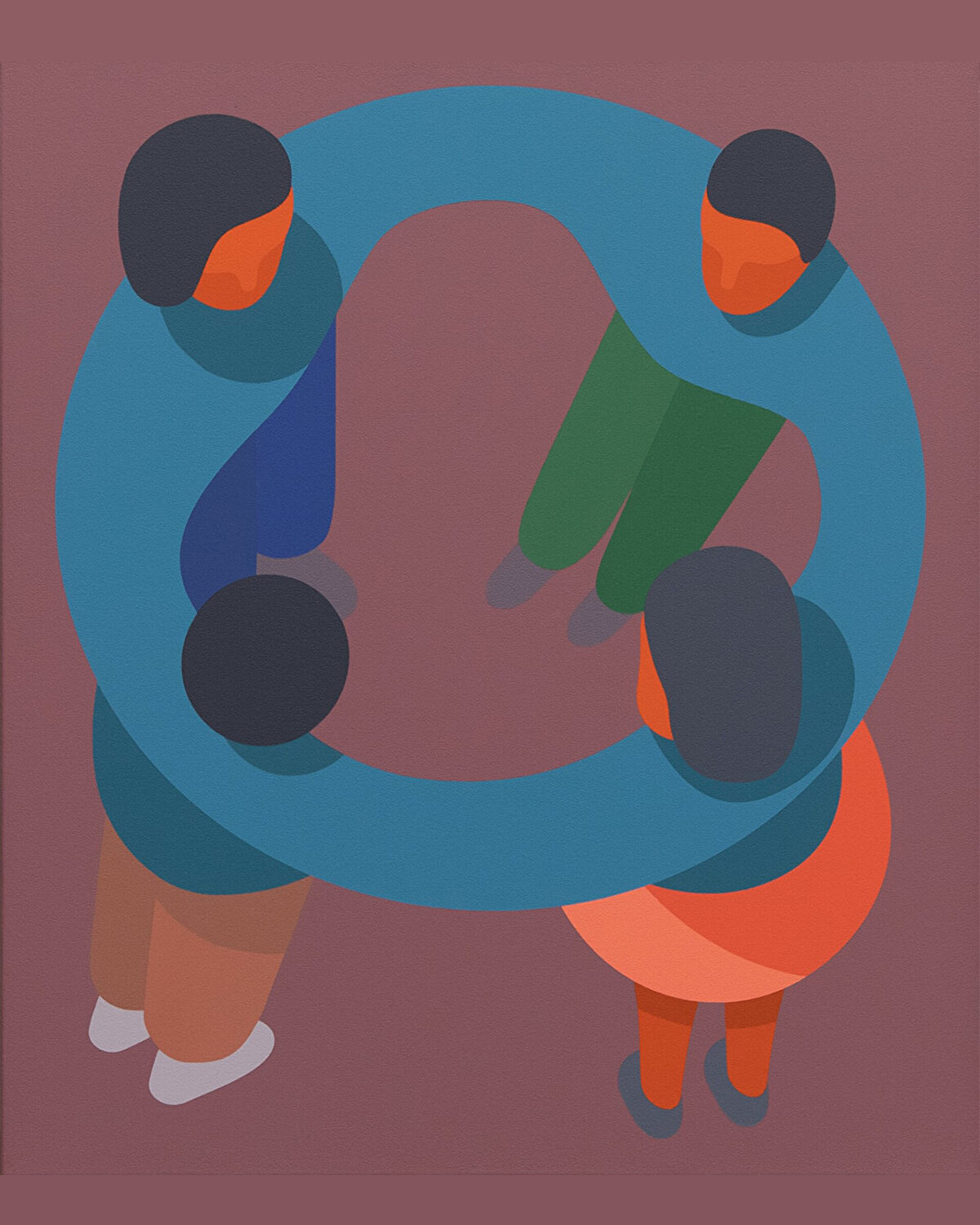 Cesur, düz renk panellerle tasvir edilen akrilik resimlerinde, belirsiz figürler kollarını birleştiriyor, bir çiti atlıyor veya Truva atını çağrıştıran bir siluete baş veya ayakları hünerle sokulmuş şekilde gösteriliyor. Bu resimlerin birçoğu, biz insanların birbirimize ve bu gezegeni paylaştığımız diğer türlere karşı sorumluluğumuzun ne olduğunu sorguluyor/sorgulatıyor ve @mcfetridge bu soruları 'süslemesiz' görsel diliyle ele alıyor. Nature Mart serisi, 20 Ocak'a kadar Toronto'daki Cooper Cole'da sergileniyor.