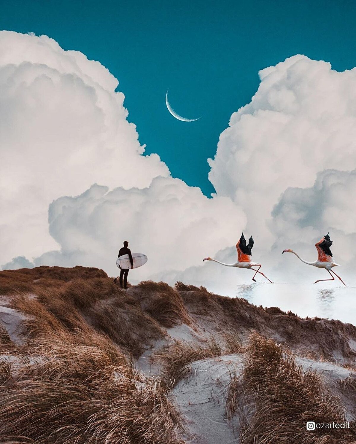 Hem buralarda kalalım hem de buralardan biraz uzaklaşalım mı? 🤓 Teşekkürler dijital sanat, artık burada değiliz. 😌🙌🏻⠀ ⠀⠀ ✨Gelişen teknoloji ile birlikte coğrafi sınırların etkisiz kalması, fiziksel engellerin ortadan kalkması, dijital teknolojilerin yaygınlaşması gibi etkenler, yaşamımızda sanatsal ve kültürel anlamda değişimleri de beraberinde getirdi. Dijital teknolojiler sayesinde, yeni anlatım biçimleri doğdu. Dijital sanatın, sanat olup olmadığı tartışmasının yanında, sanatsal bir akım olma olasılığı da zaman zaman gündeme geliyor.⠀⠀ ⠀⠀ 📌 Grafik tasarımcı Salih Özdemir, dijital çalışmalarını sosyal medya hesaplarından takipçileriyle buluşturuyor. Sevdiği mekanları hayal gücüyle yeniden yorumlamaktan keyif aldığını söyleyen Özdemir'in çalışmalarında, beklemediğimiz yerlerde beklemediğimiz sürprizlerle karşılıyoruz.⠀⠀ ⠀⠀ 📸: @ozartedit