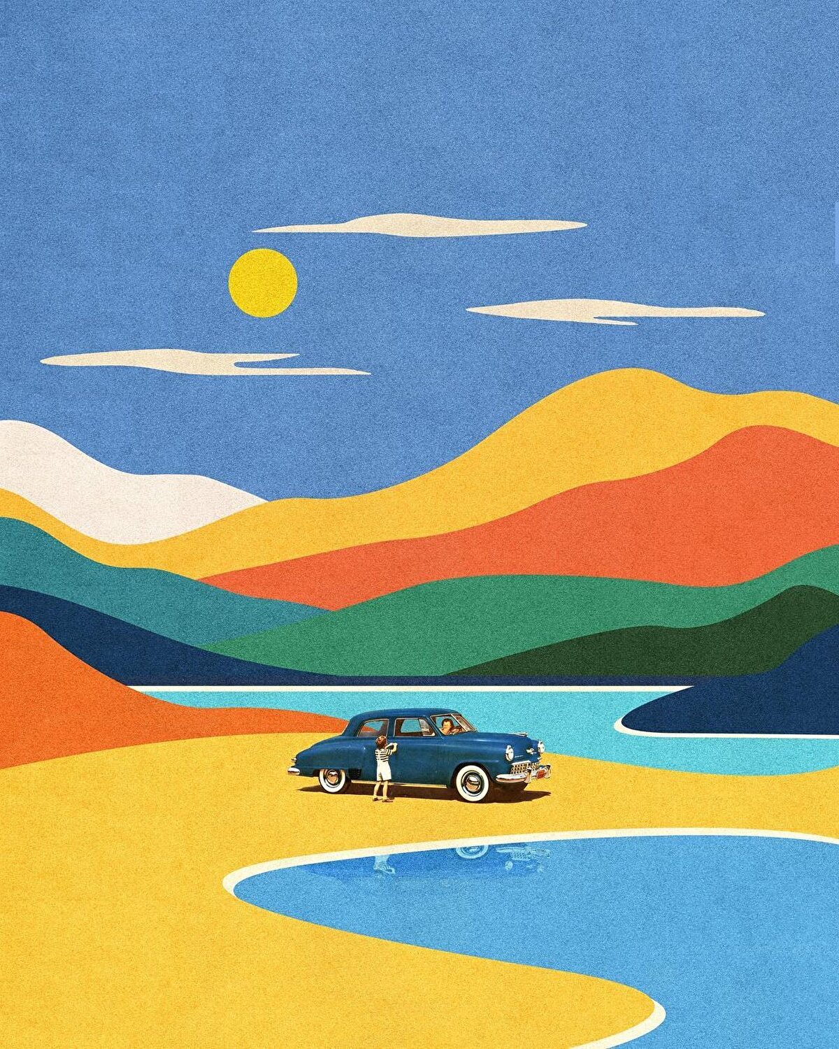 📌 Cebelitarık'ta yaşayan grafik tasarım sanatçısı Jesse Stone, 1960'ların dergilerinden fırlamış gibi görünen çok renkli kolajlarıyla tanınıyor. Çalışmaları çoğunlukla dağlar, çöller, kovboylar, tekneler, silüetler ve güneşli bir günde yapılan yolculuk sahneleri içeriyor. Stone, rüya ile gerçek arasında dengede duran bu hayali yerler ve insanlar ile dikkat çekici eserlerini ortaya çıkarıyor. Çalışmalarındaki bu küçük, yalnız figürlerin kim olduklarını, nereye gittiklerini bilmiyoruz fakat eserlerine baktıkça içimizde bu sonsuz manzaralarda onlarla birlikte kendimizi kaybetme isteği uyanıyor.