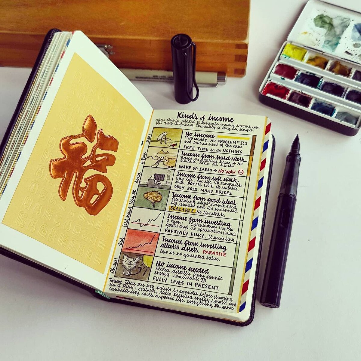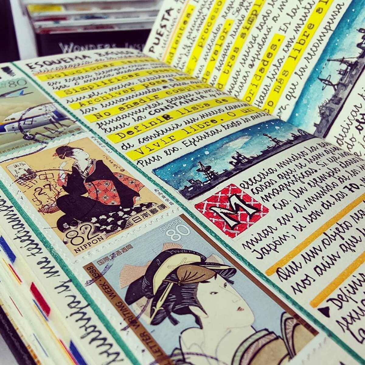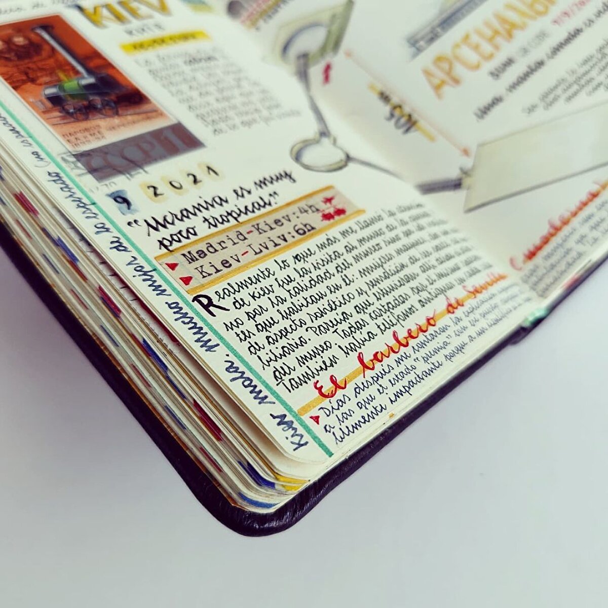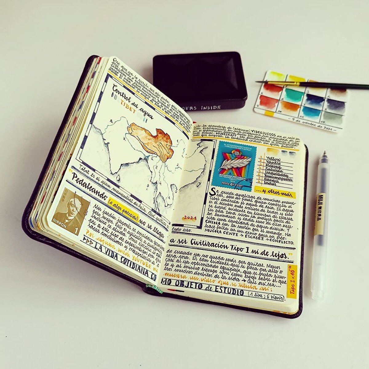 İspanyol sanatçı @jose_naranja, seyahat anılarını eskiz defterlerine çiziyor. 2005 yılından beri seyahat anılarını defterlerine aldığı notlarla arşivleyen sanatçı, yazılarına suluboya çizimler de ekliyor. Bu küçük ve kendine has günlükler, Naranja'nın yolculuklarını samimi bir şekilde yansıtıyor. Günlükleri, gezdiği yerlerin mimarisinden haritalarına kadar pek çok farklı detay barındırıyor. Özellikle Asya'yı ziyaret etmekten hoşlandığını belirten sanatçı, eskizlerine gezilerinden topladığı pulları ve kartpostalları da ekliyor. Tutkusunu, ''Fotoğraf çekmeyi ve seyahat etmeyi çok seviyorum. Özellikle de Asya'ya seyahat etmeyi, Asya harika.'' diyerek açıklayan sanatçı, çalışmalarını ise ''Rüyalar, fikirler ve deneyimler deposu'' olarak tanımlıyor. Naranjanın çalışmalarının her sayfası, nereye giderse gitsin adeta görsel bir şölen sunuyor.
