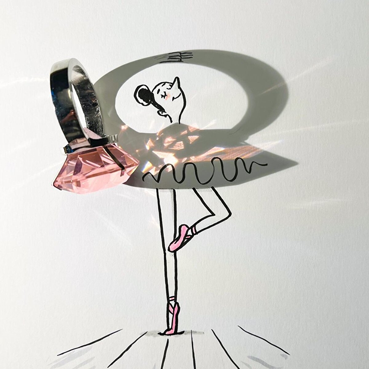 Belçikalı 'gölge bilimcisi' @vincent_bal, günlük hayatta sık kullanılan eşyaların oluşturduğu gölgeler ve ışık oyunlarıyla yeniden anlam kazanan görseller üzerine gölge sanatı çalışmaları yapıyor. Gündelik hayatın hemen her köşesinde karşılaştığımız basit eşyalarla hayal gücünün sınırlarını zorlayıcı fikirler üreten sanatçı, bazen bir yüzükle balerine kostüm yapıyor, bazen fileli bir pazar torbasıyla su damlacıklarını canlandırıyor bazen de renkli bir bardakla kağıt üzerine okyanuslar yansıtıyor. Hayal gücümüzün azımsanmayacak kadar değerli ve sınırsız olduğunu bir kez daha kanıtlayan bu çalışmalar, durup üzerine düşünmeye sürüklüyor.
