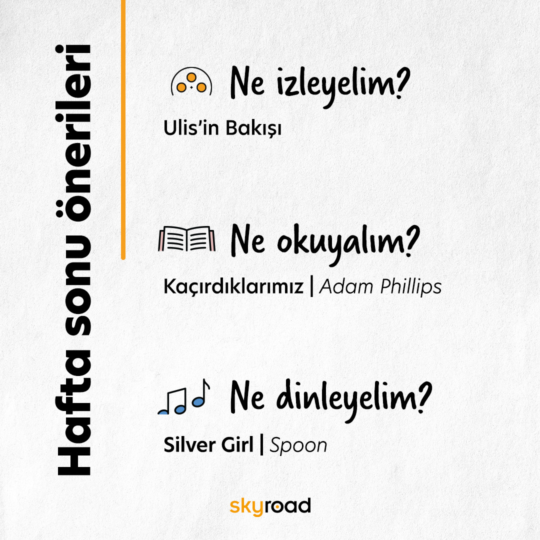 Hafta sonunu kitap okuyarak, film izleyerek ya da hunharca müzik dinleyerek geçirmek isteyenler için harika önerilerle geldik. 🎉 Senin hafta sonu önerilerinde neler var? 🧡