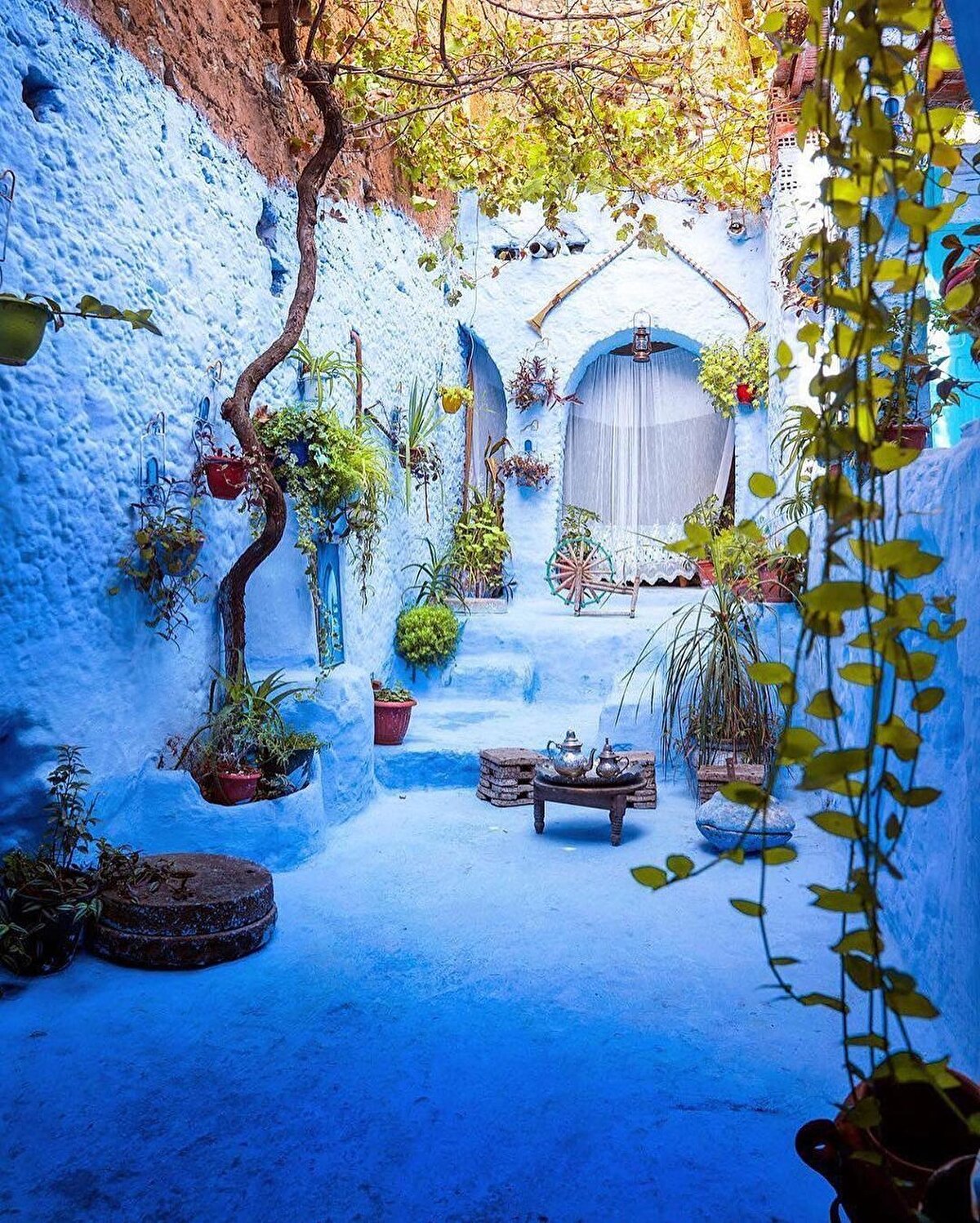 Turistik Fas rotalarında göremediğimiz, ülkenin en görülesi yerlerinden biri; burası harika mavi sokaklarıyla Şafşavan ❤⠀ ⠀ 📌 Türkiye'den kalkan turlarda daha çok Casablanca, Marrakesh, Fez, Meknes şehirleri tercih ediliyor. Chefcahaouen bu şehirlere uzak kaldığı için pek tercih edilmiyor. Fas'ın kuzeyinde kalması ve İspanya'ya yakınlığı Avrupa'dan yoğun ziyaretçi almasına sebep oluyor. Zaten şehir meydanındaki kafelerde Avrupalı turistler hemen gözünüze çarpıyor. Şehir Rif Dağları arasında kalmış bir vadide bulunuyor. Vadiye geldiğiniz yol boyunca şehre yukarıdan baktığınızda bembeyaz bir yerleşime iniyormuşsunuz hissini veriyor. Oysaki sokaklarına girdiğinizde mavinin tonlarında kayboluyorsunuz. ⠀ ⠀ Rif Dağları'nın eteğine kurulan Şafşavan, Berberi dilinde “çift boynuz" anlamına geliyor. İki boynuzun arasındaki düz vadide masmavi bir şehir uzanıyor. Boynuzun tepelerine doğru dikilen betonarme binalarda mavi renk geleneği yavaş yavaş terk edilmeye başlanmış. Evleri maviye boyamak yazılı olmayan bir sözleşmeye yani geleneğe dayanıyor Şafşavan'da. ⠀ ⠀ Bir rivayete göre mavi renk sivrisineklerin şehir sokaklarına yaklaşmamalarına sebep oluyormuş. Başka bir rivayete göre buraya yerleşen Yahudilerin geleneklerinden kaynaklanıyormuş şehri maviye boyamak… Yüzyıllardır boyandığını söyleyenler de var, 1930'dan beri devam ettiğini söyleyenler de... Gerçi rivayetlerden hangisi doğru olursa olsun sonucun muhteşem olduğu ortada.⠀ ⠀ Harika fotoğraflar için @ilhan1077'e teşekkürler! ☀️