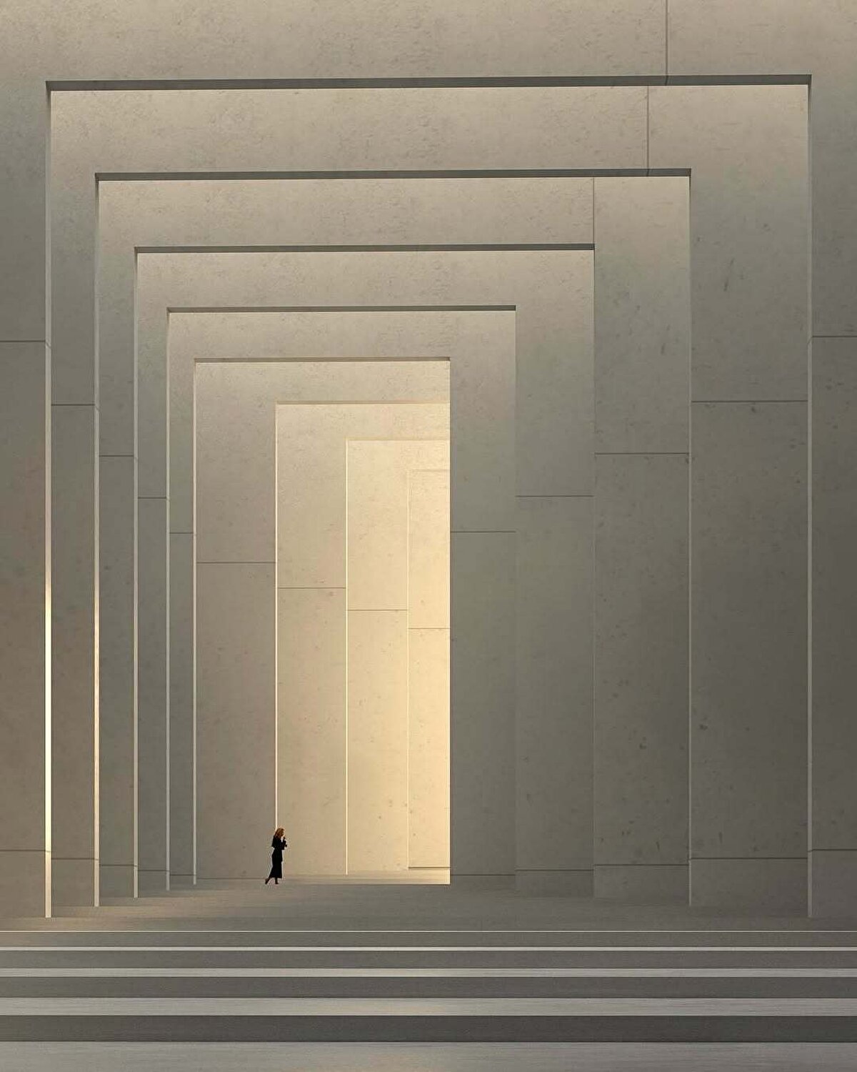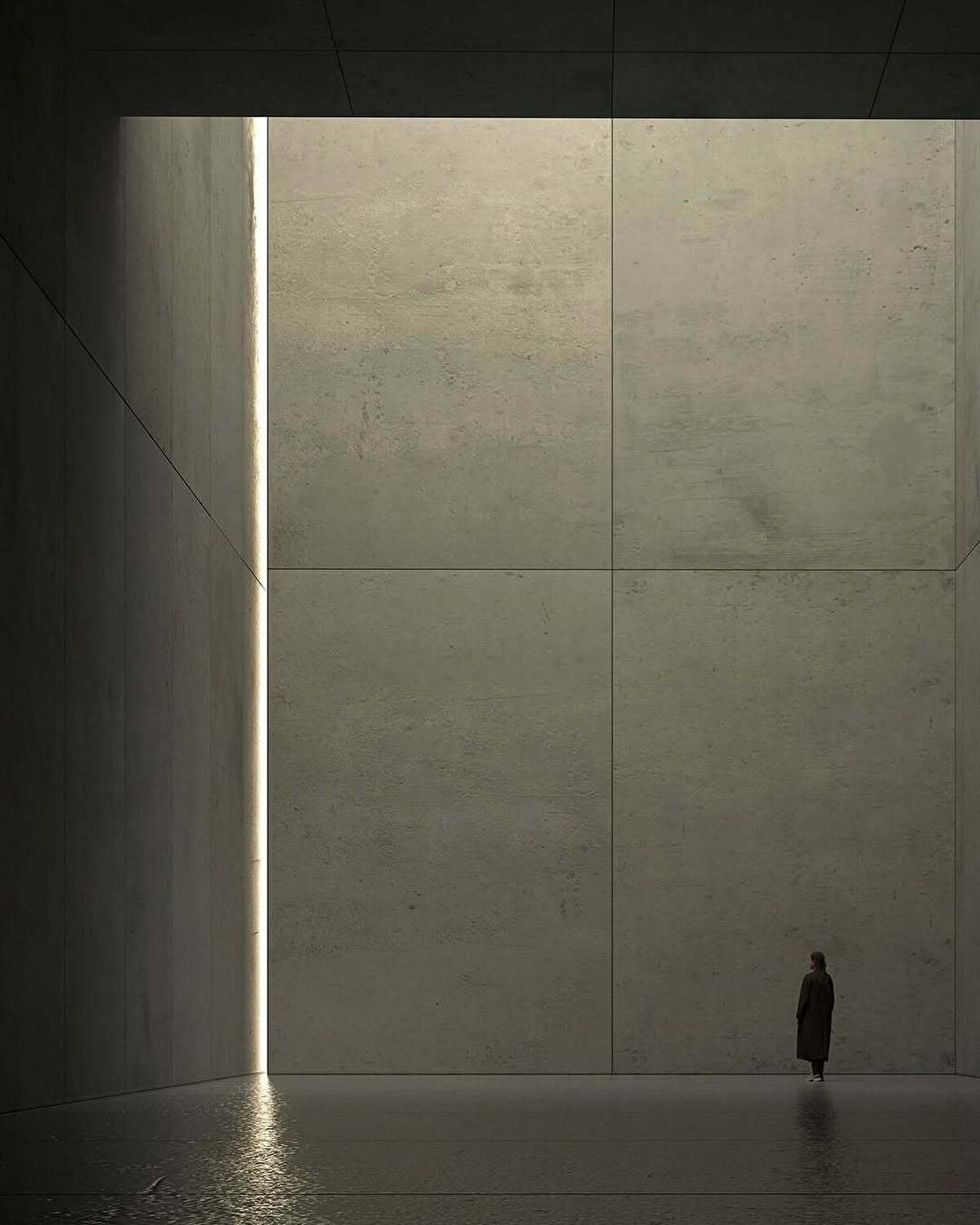 Resim, illüstrasyon ve 3D modellemeyi bir arada kullanan sanatçı, devasa mimari yapılarla çevrelenmiş küçük insan figürleri üzerinden insanın modern dünyadaki yalnızlığını simgeliyor. Boşluk duygusunun mekan üzerinden hissedildiği bu sahnelerde, yalnızlık sadece bir figürle değil; duvarların gölgesinden süzülen tek bir ışıkla da anlatılıyor.