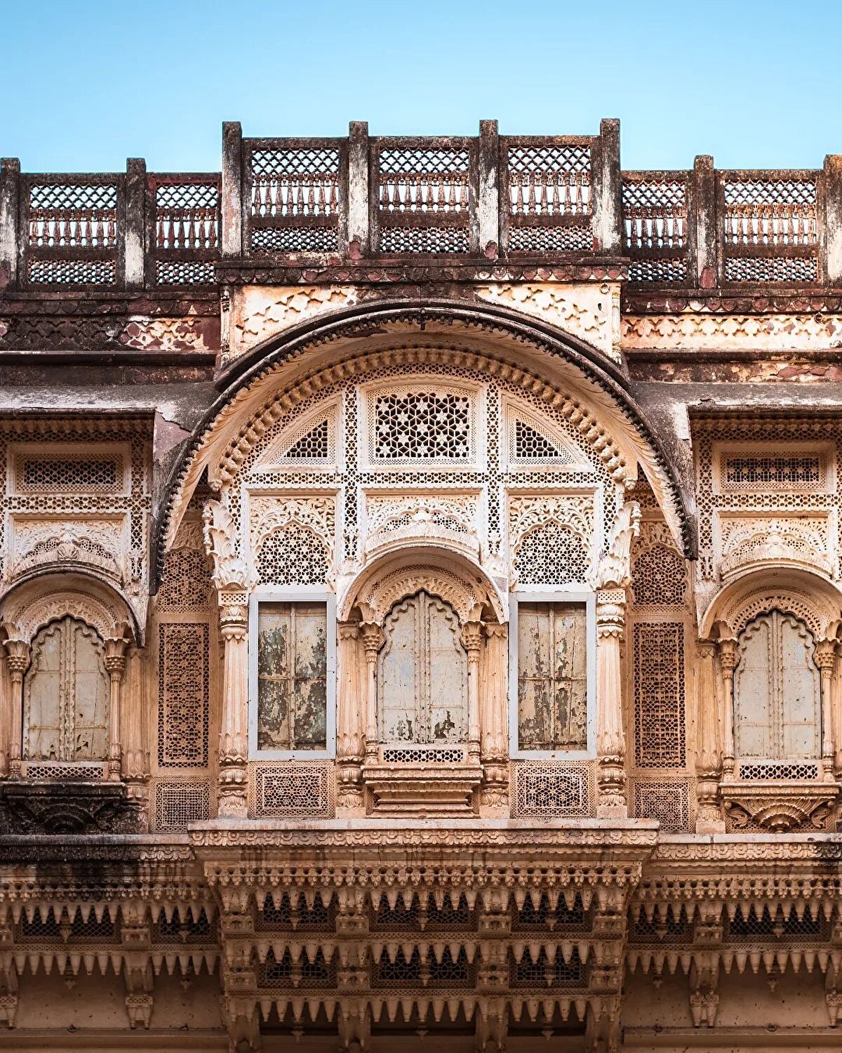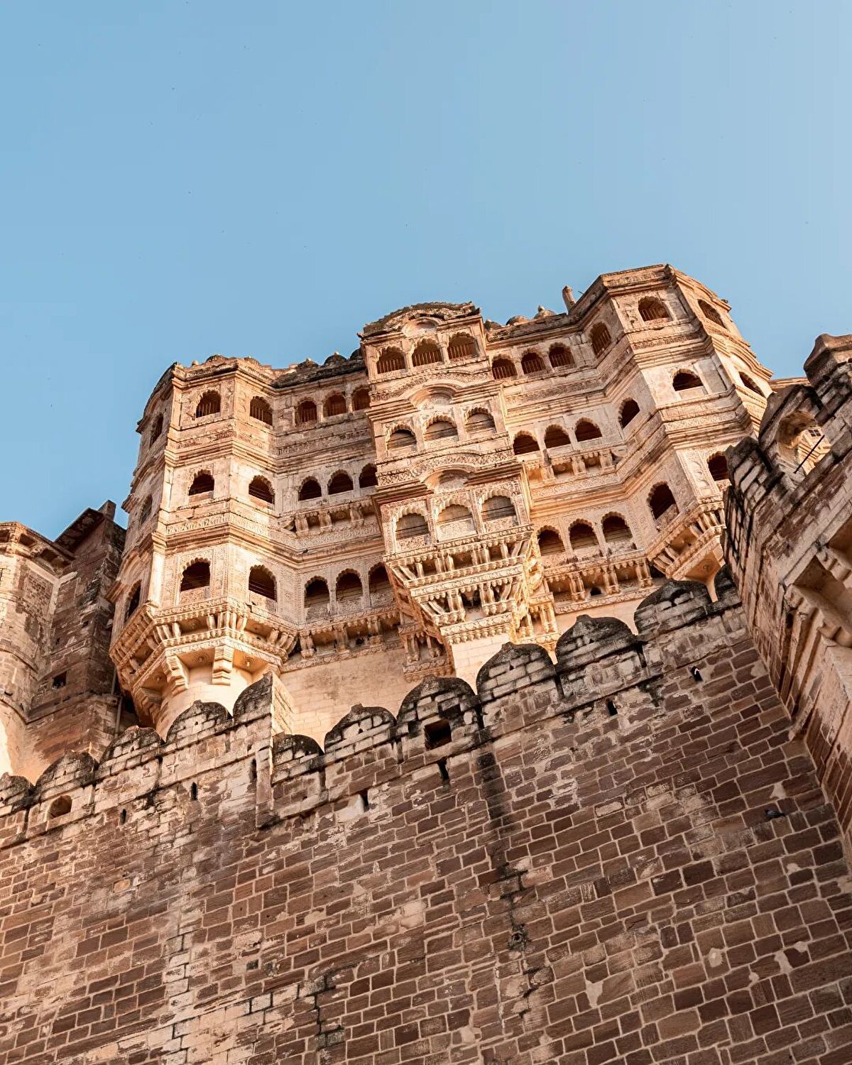 Güneş anlamına gelen Mehrangarh, Hindistan'da Jodhpur şehrini gören yaklaşık 120 metre yükseklikteki bir dağ üzerine inşa edildi. Hint saray yaşamına dair izler bulunan ve 15. yüzyılda yapımına başlandığı ifade edilen kalenin tam 500 yılda tamamlandığı söyleniyor. Bu da 20. yüzyıl da dahil olmak üzere birçok farklı döneme ait çeşitli mimari farklılıklar görülüyor. Yedi kapıdan geçerek giriş yapılan kale, kırmızı kum taşlarından yapılmış, cumbalı pencereler ve kafesli bölümleriyle dikkat çeken bir görünüme sahip.