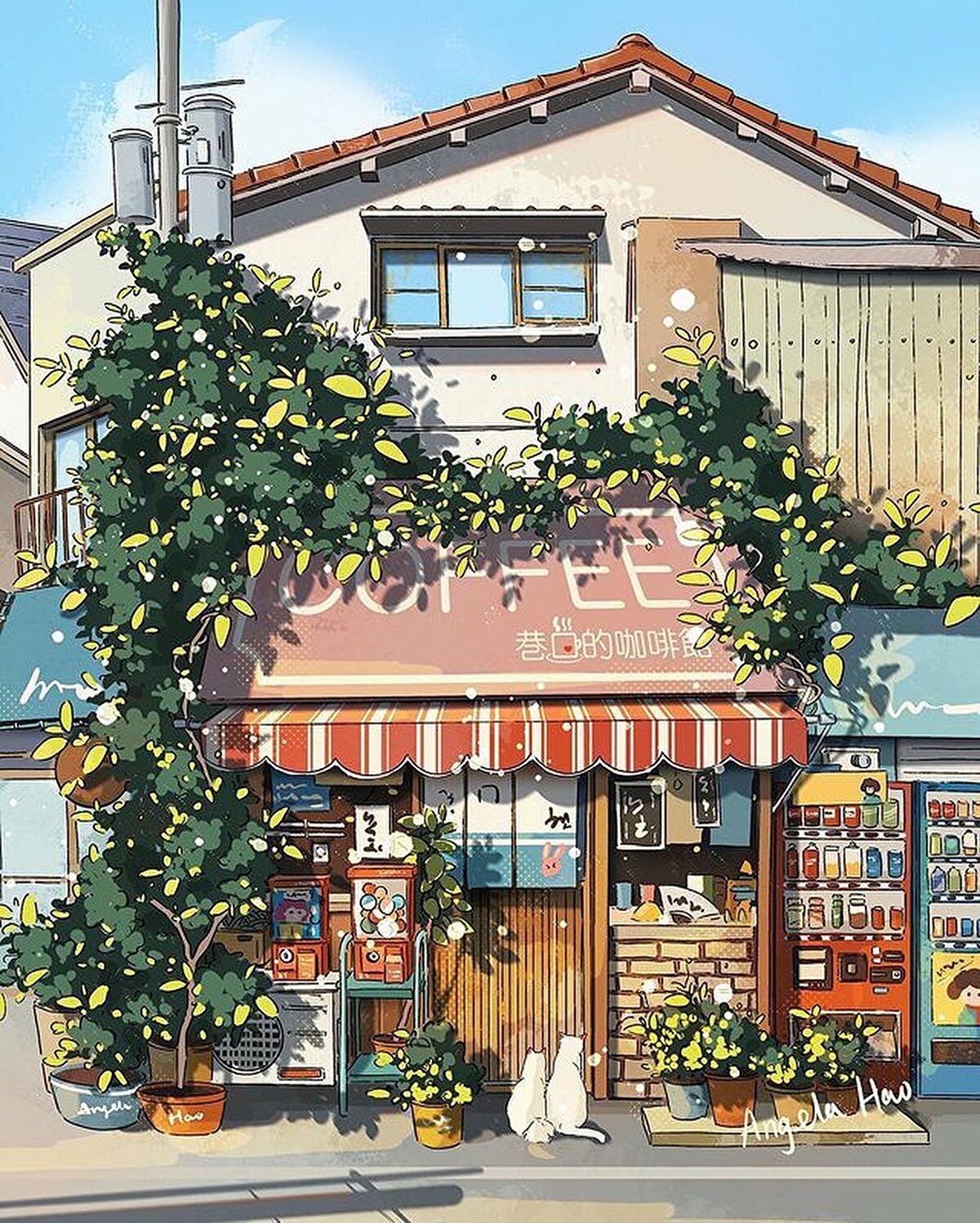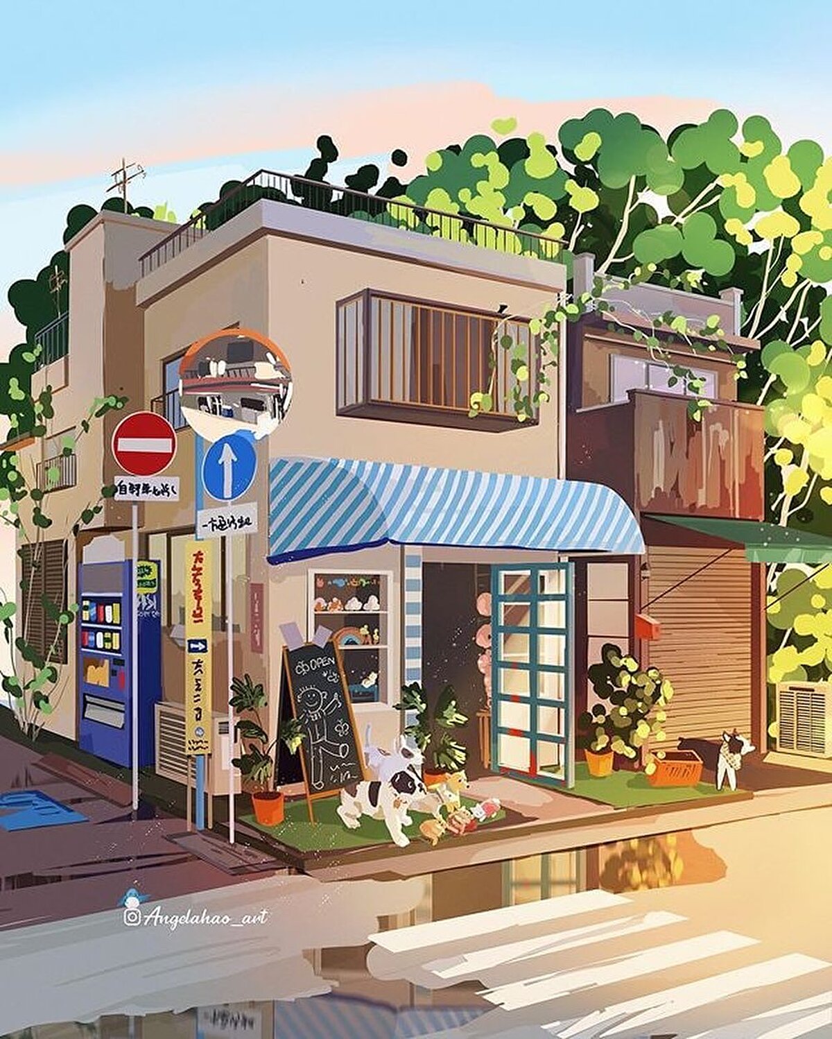 📌 Amerika Birleşik Devletleri'nde yaşamak, sanatçı Angela Hao'nun Japonya'nın güzelliklerini çizmesine engel olmadı. Google Street View kullanan Hao, sanatı için ilham aldığı Tokyo ve diğer Japon şehirlerinin sokaklarında sık sık dolaşıyor. Mimari illüstrasyonlara odaklandığını söyleyen Hao, özellikle mağazaları, restoranları ve evleri resmediyor. Sanatçının yalın gerçekliğe eklediği hayali öğeler, ilk bakışta Studio Ghibli çalışmalarını anımsatıyor.⠀