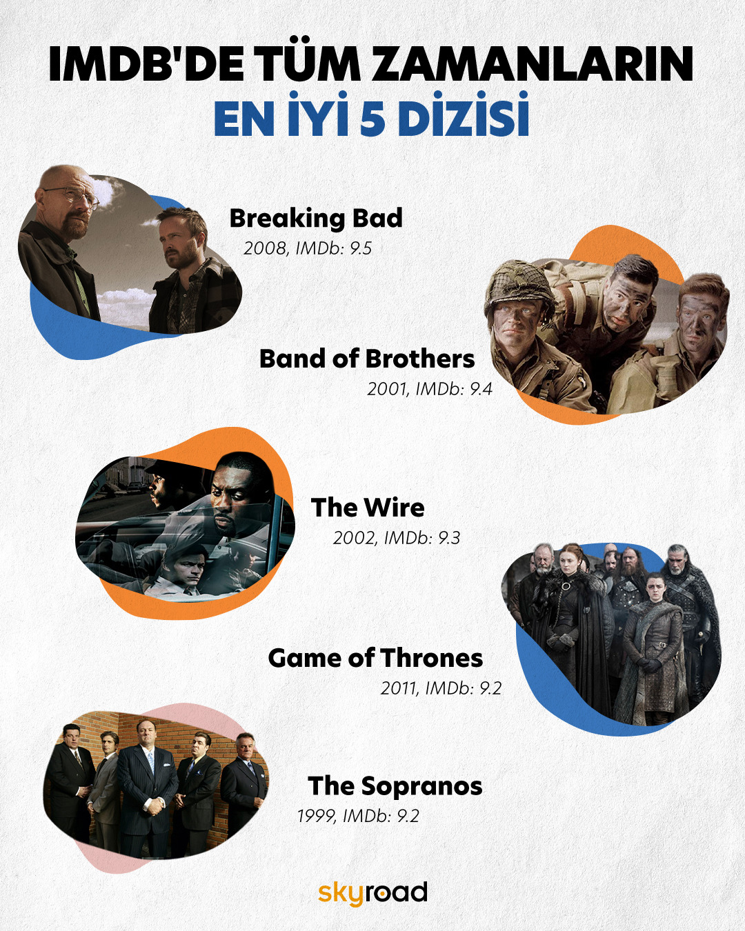 IMDb tüm zamanların en iyi dizilerini kullanıcıların ve seyircilerin oylarıyla belirledi. İlk beş dizi:
