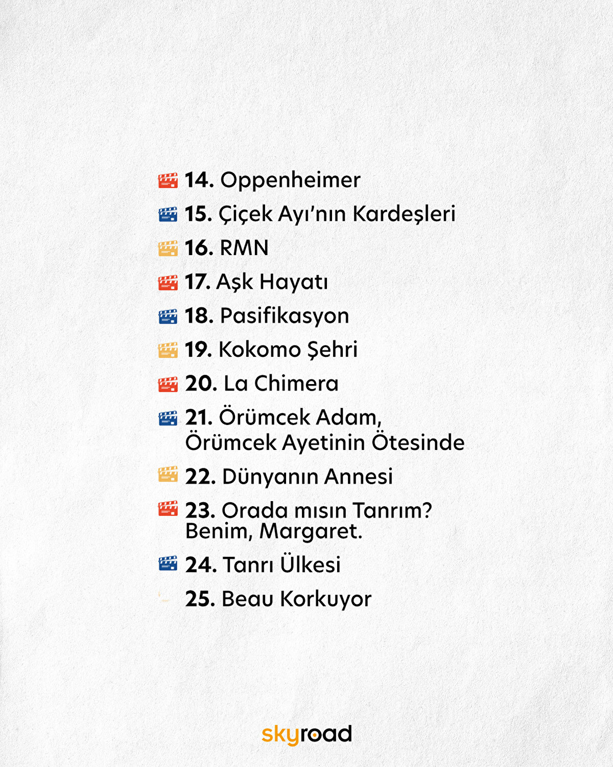 2023'ün son düzlüğüne girdik, bu yıl izlediklerimizi puanlama vakti geldi bizce. Ancak biz kendi favorilerimizi açıklamadan önce Indiewire'ın listesini paylaşmak istedik. Bizim listede izlemediğimiz bazı filmler var. Listeden ilham alarak yıl bitmeden izlemeyi ve hemen puanlarımızı vermeyi planlıyoruz.