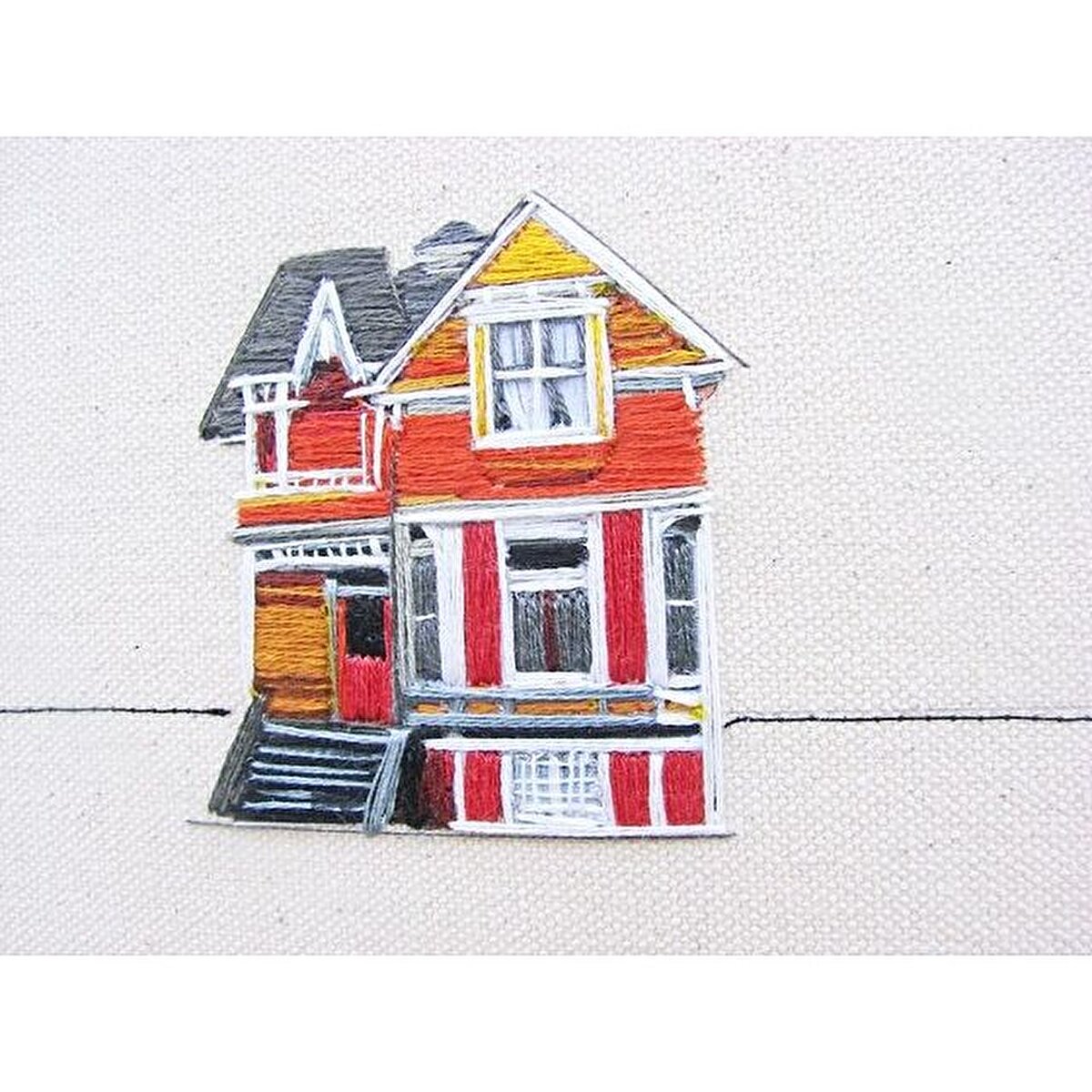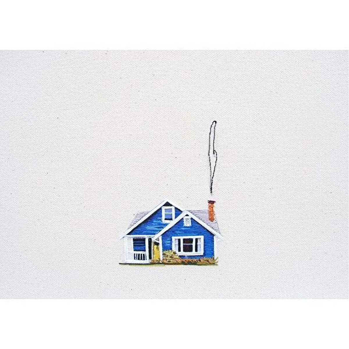 Stephanie Clark iplikten evler inşa ediyor! Evler, yapılar, onları çevreleyen peyzaj, çevreye özgü ağaçlar, güneş ve ay ışığı bu 'ipli resimler'de yer alıyor. Clark, hem aileyi hem de bir yaşamın hikayesini en doğru şekilde anlattığına inandığı ev hissiyatını anlatmak için nakış işlemeyi kullanıyor.