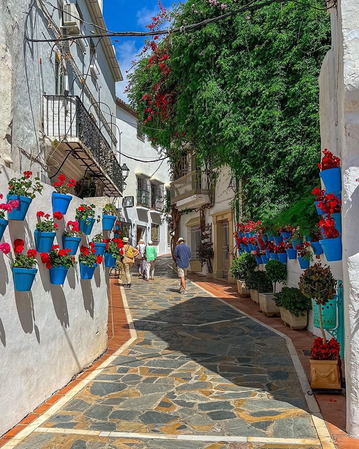 İspanya'nın en güzel bölgelerinden biri olan Marbella, Roma tarzı mozaiklerle kaplı dar ve kıvrımlı sokakları, pencerelerinden sardunyalar sarkan az katlı evleri ve Arnavut kaldırımlı sokaklarıyla etkileyici bir görünüme sahip.