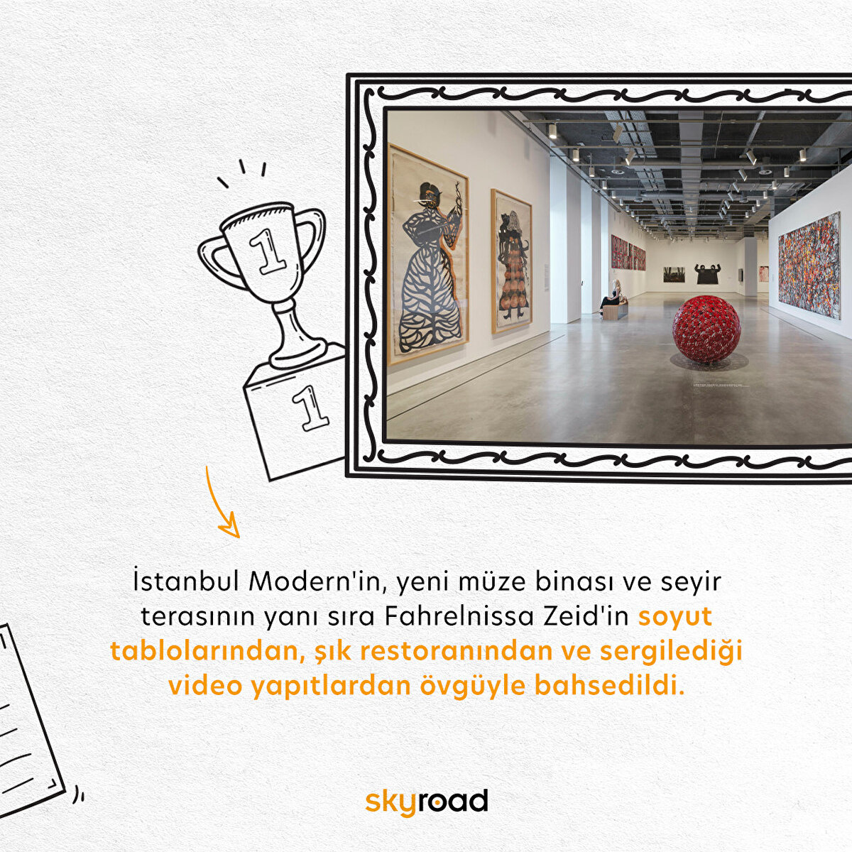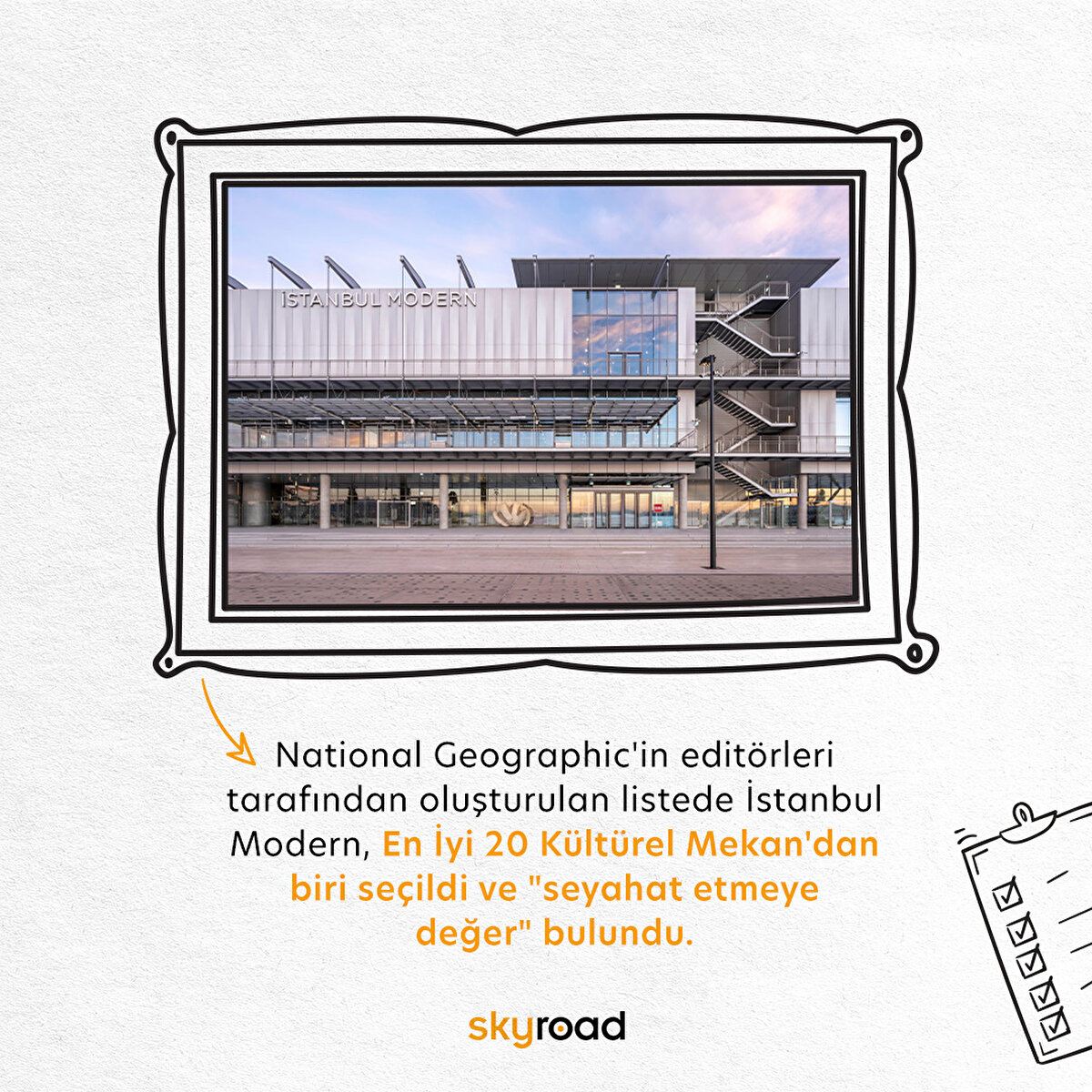İstanbul Modern, National Geographic editörlerinin belirlediği En İyi 20 Kültürel Mekan listesine girmeyi başardı. Bu önemli seçki, müzeyi "seyahat etmeye değer" bir yer olarak nitelendiriyor. Listede İstanbul Modern ile birlikte, Washington'daki Folger Shakespeare Kütüphanesi, Karayipler'deki Molinere Sualtı Heykel Parkı, Moğolistan'daki Cengiz Han Müzesi ve Londra'daki Battersea Parkı gibi dünyaca ünlü mekanlar da yer alıyor. İstanbul Modern, yeni müze binası ve seyir terasıyla dikkat çekerken; Fahrelnissa Zeid'in soyut tabloları, şık restoranı ve video sanatı eserleriyle de övgü topluyor. Ayrıca, müze 13 Ocak'ta Architectural Digest tarafından açıklanan "2024'ün Harika Eserleri" listesinde de yerini almıştı.