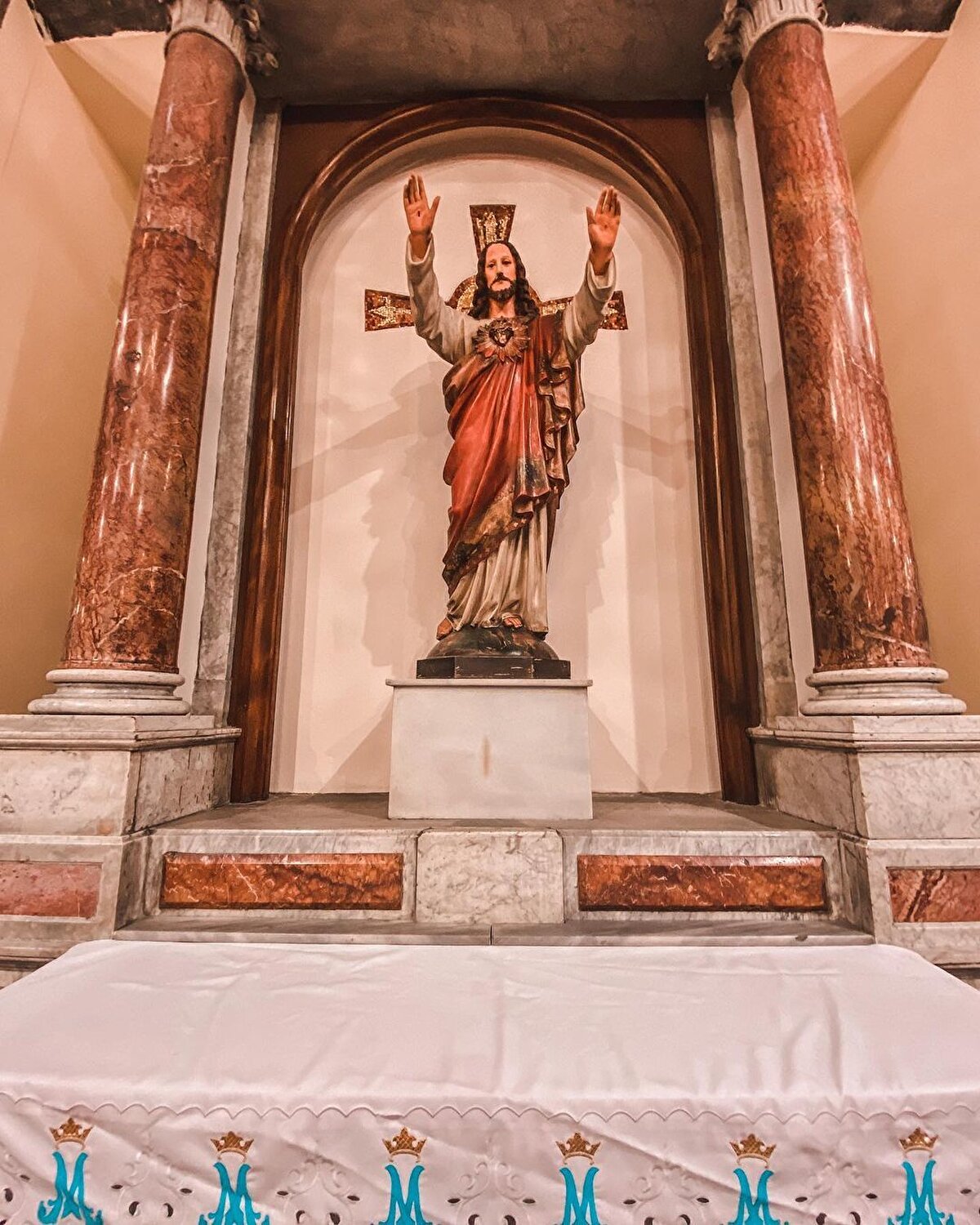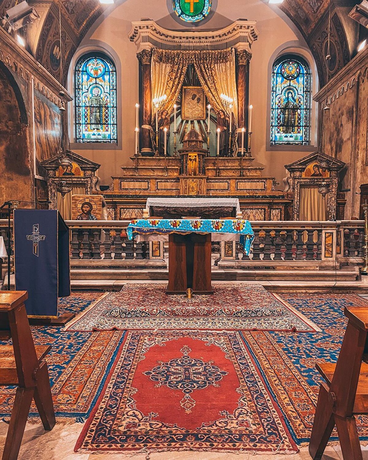 Günümüz halini almasından sorumlu olan İtalyan Mimar Guglielmo Semprini tarafından inşa edilen kilise Neo-klasik üslupta, sade bir cepheye sahip. İtalyan mimarın bunu yapabilmesindeki en büyük etken olan II. Abdülhamid'in izninden dolayı kilisenin giriş plaketinde padişahın kendisine teşekkür edilmekte. Dışı şık çitlerle örülü olup merdivenlerden inerek ulaştığımız kilisenin giriş kapısının hemen üzerinde bulunan iki melek figürü ile bulutların üzerinde süzülen Meryem Ana'nın mozaikten yapılmış kompozisyon çalışması ise gerçekçiliği ile insanda inanılmaz bir göz zevki uyandırıyor. Kilisenin içinde yer alan ilgi çekici bir diğer eser de atlattığı yangınların ardından hala güzelliğini korumayı başarmış 'Meryem' tablosu baktıkça hayranlık uyandıran türden.