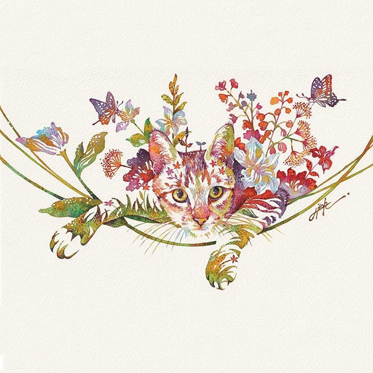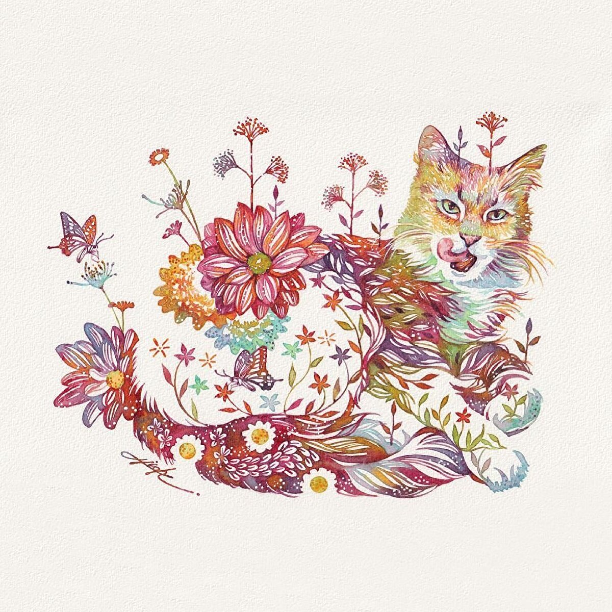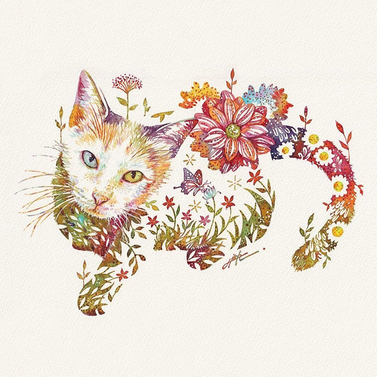 Günün yorulmaya başladığımız saatleri geldiğine göre içimizin çiçeklerini uyandırma vakti geldi 😌☀️⠀ ⠀ 📌 Japon sanatçı Hiroki Takeda; dost canlısı kedileri, harika botanik figürlerle sulu boya tablolara dönüştürüyor. Ağırlıklı olarak pembe ve mor tonlarını kullanan sanatçı, annesinin bitkilere olan ilgisinin büyük bir ilham kaynağı olduğunu söylüyor. Karşılaştığı bir fotoğraftaki hayvanın kürkünü bir bitkiye benzetmesiyle birlikte çalışmalarına başlayan Takeda, sulu boyayı bitki ve hayvanlarla birleştirdiği doğal çalışmalarıyla şimdilerde çok dikkat çekiyor.⠀ ⠀ We thank @hiroki_takeda1223 for this great works. 🧡⠀
