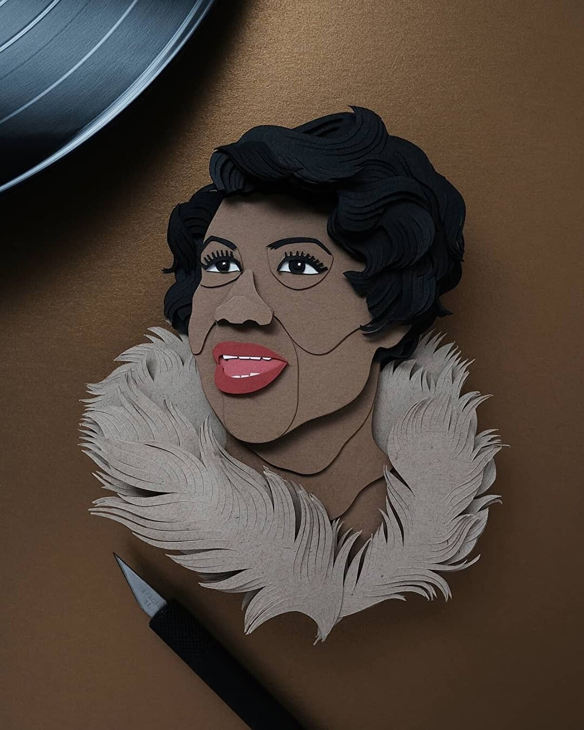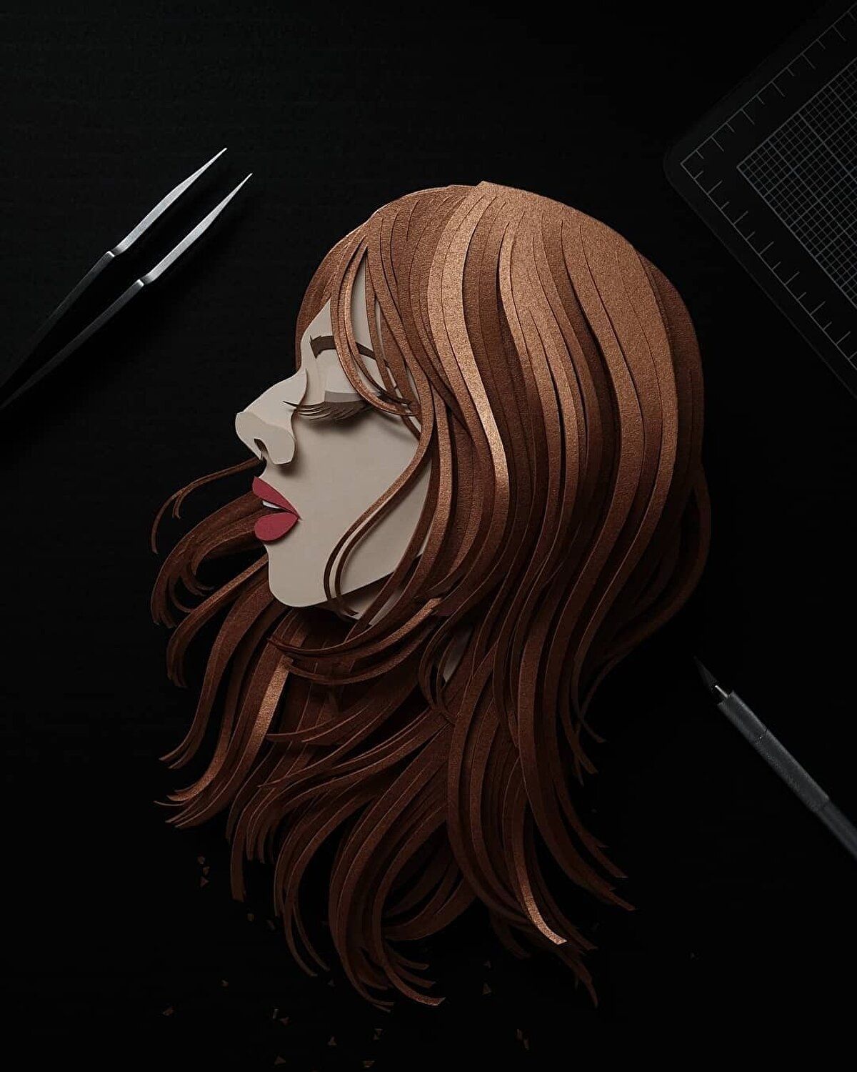 Çok disiplinli bir tasarımcı olan John Ed De Vera (@battery_full) harf sanatına, kağıt kesmeye ve farklı/yeni ortamlarla deneme yapmaya eğilimli bir sanatçı. Çalışmaları pop kültüründen ünlü karakterlere, hayali karakterlerden doğal dünya unsurlarına kadar geniş bir yelpazeyi kapsayan sanatçı kağıdın dokusunu kullanarak çok katmanlı görseller ortaya çıkarıyor. Genellikle portreler üzerine çalışan sanatçı üç boyutlu ortamlar üzerine de çalışmalar yürütüyor.