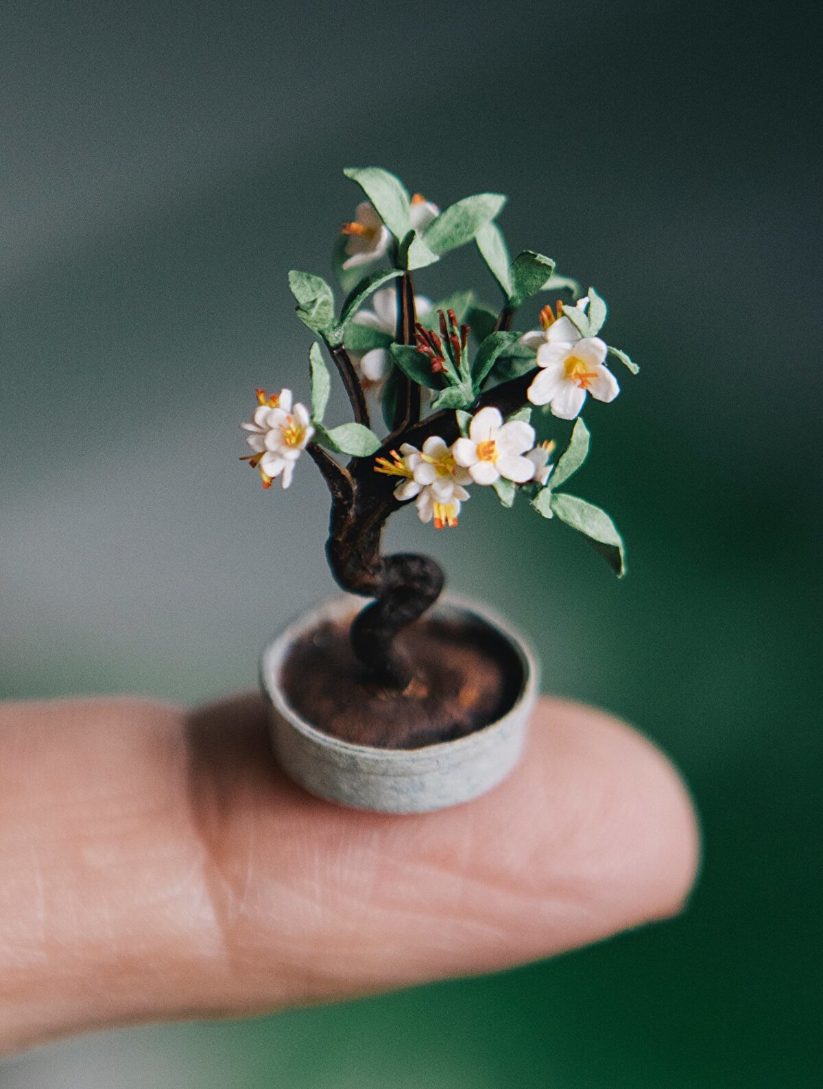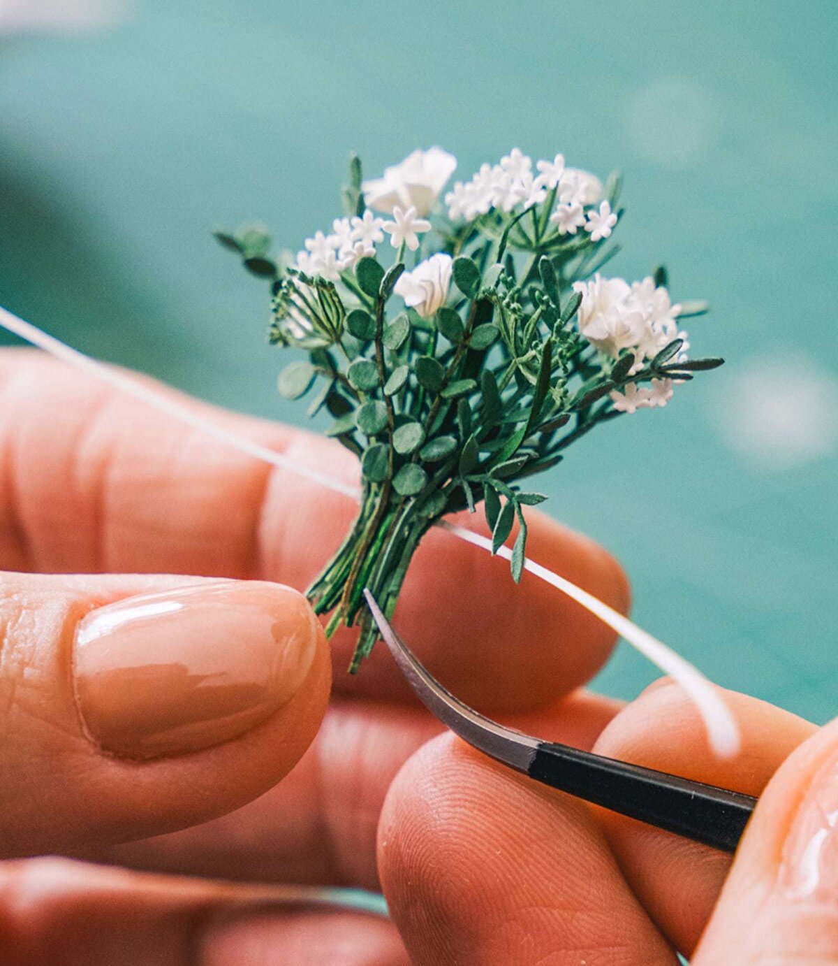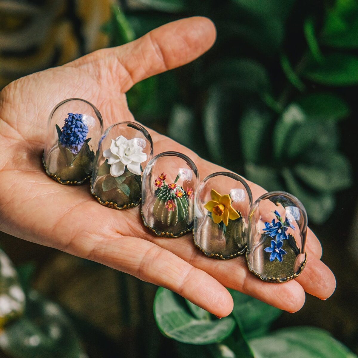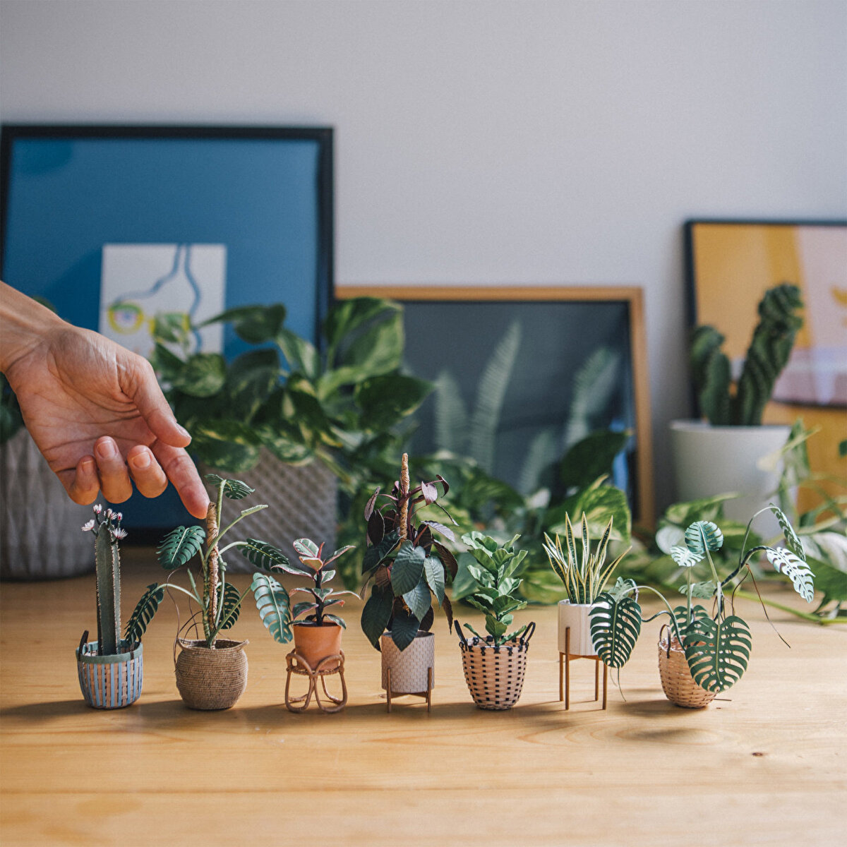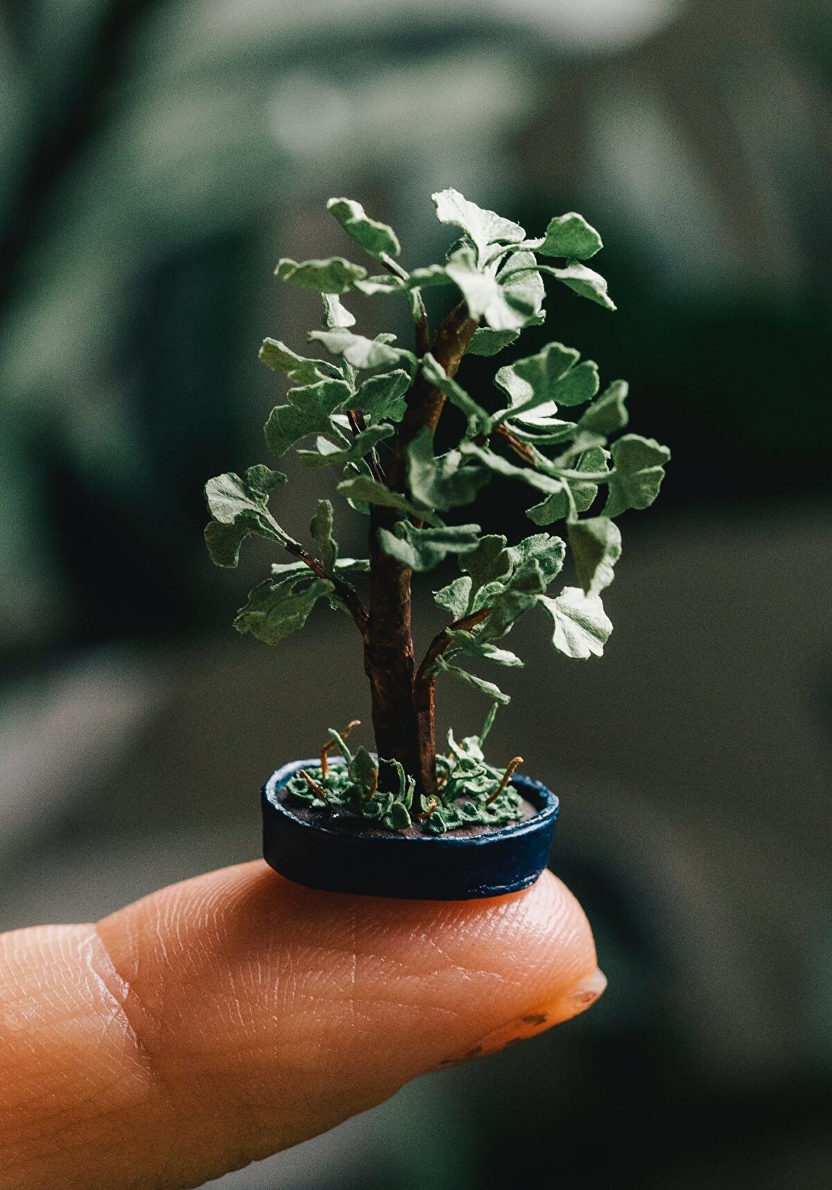 kak Barselona'da yaşayan sanatçı Raya Sader Bujana, çalışmalarını heykel ve illüstrasyon arasında bir alan olarak tanımlıyor ve bir parmağın üzerinde durabilecek ev bitkilerinin şaşırtıcı derecede küçük kopyalarını oluşturuyor.