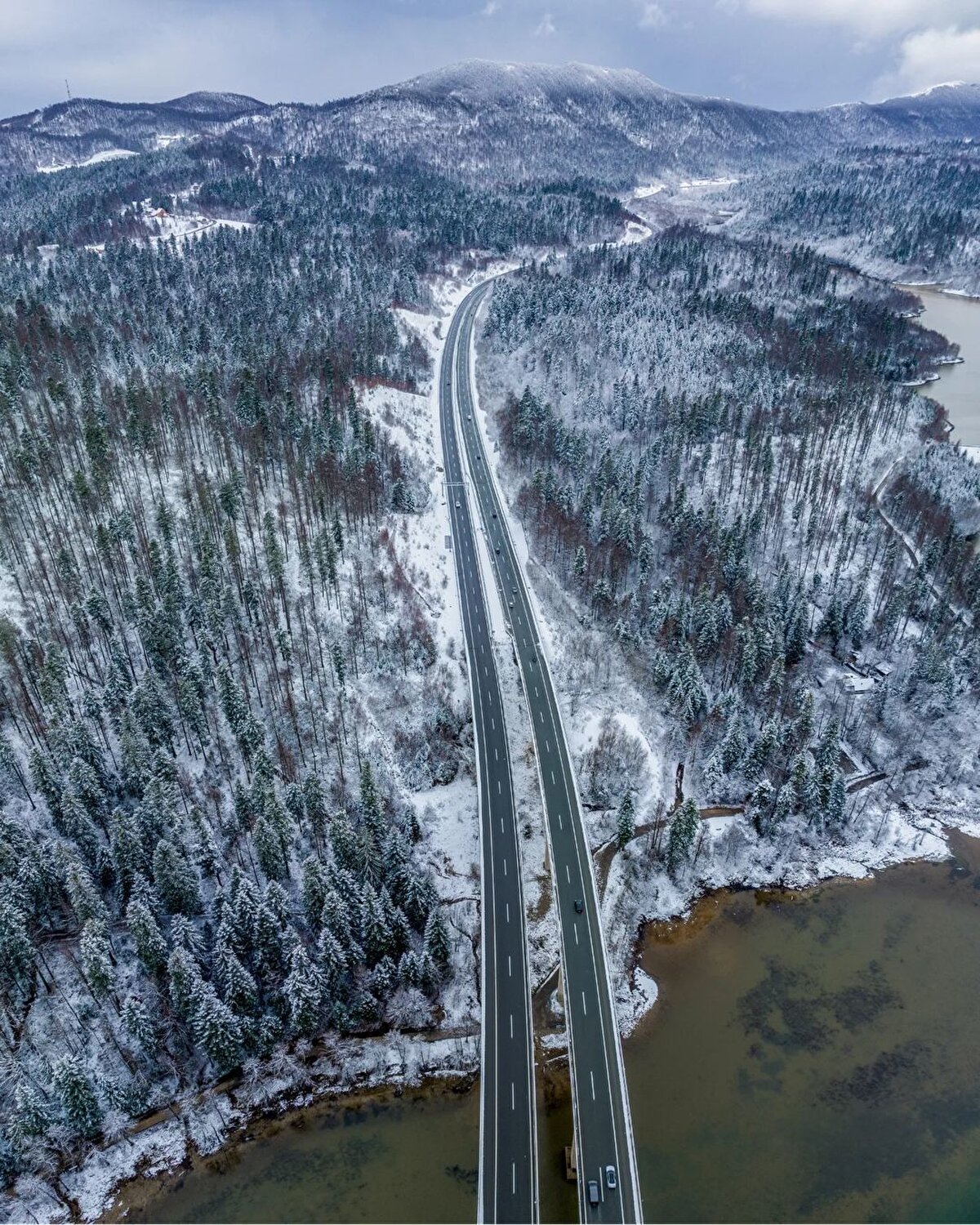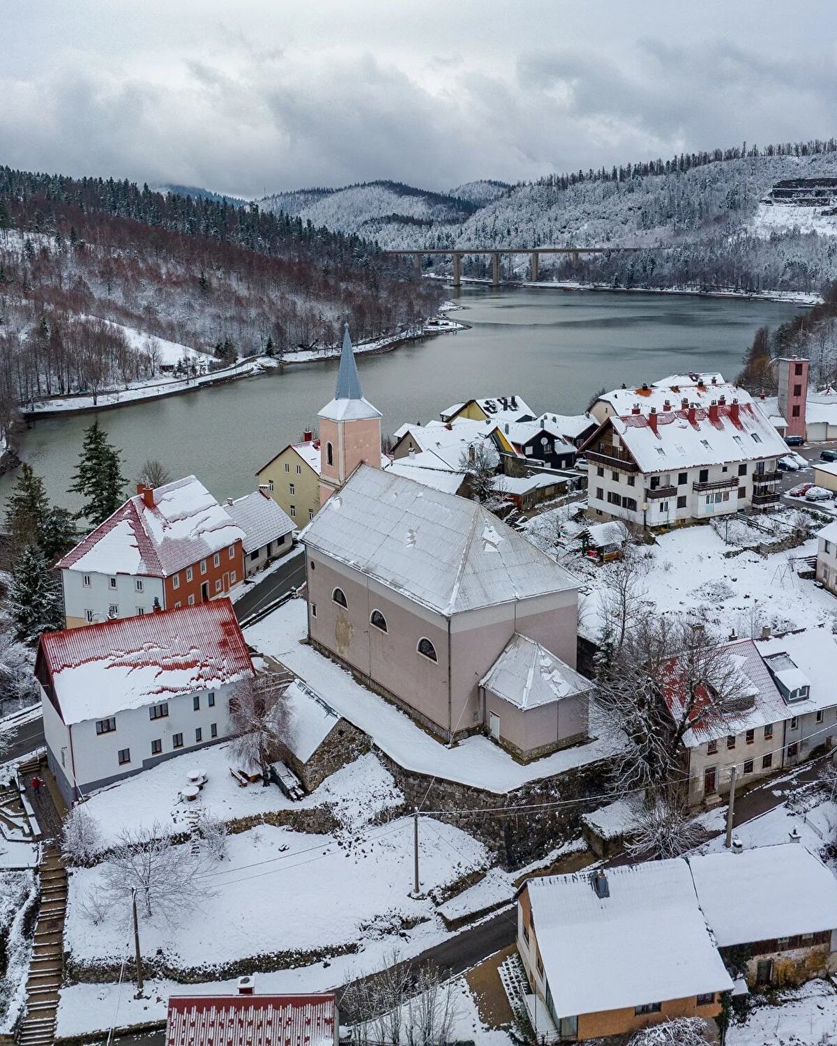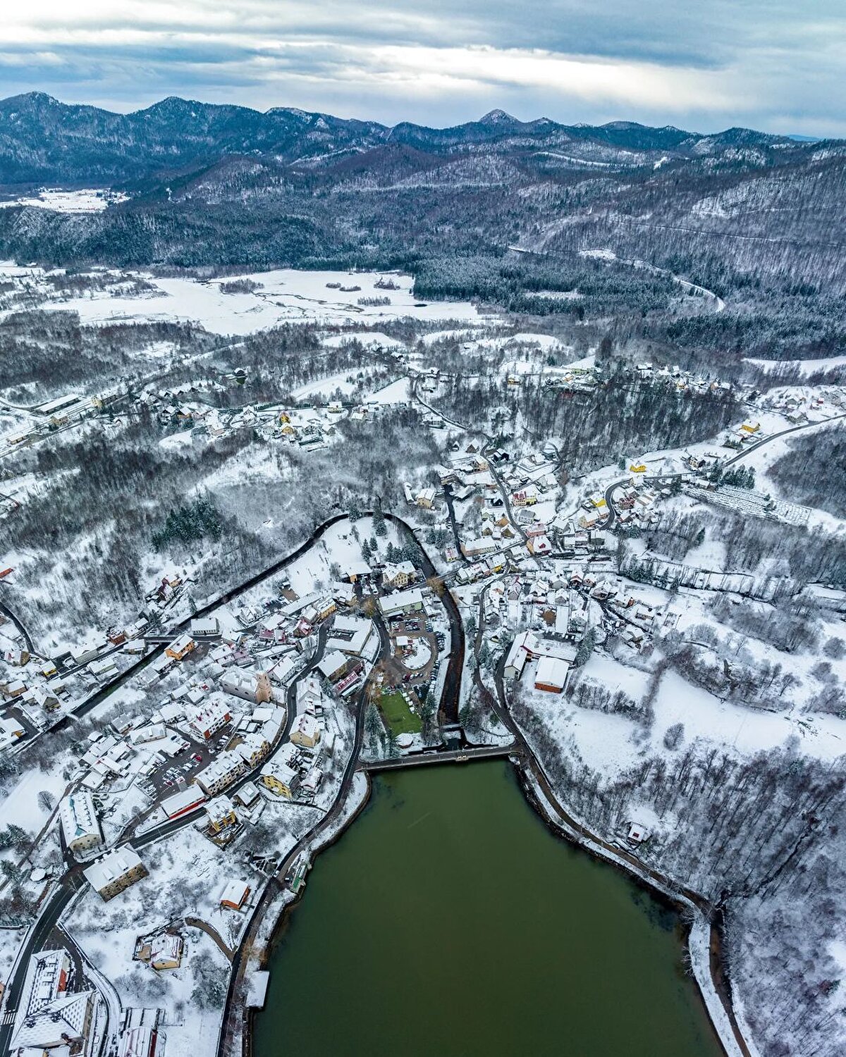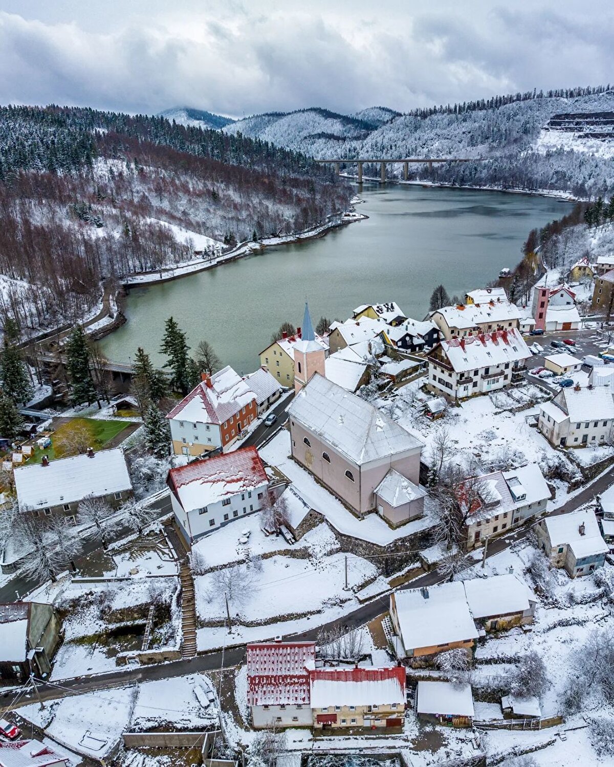 Beyazlar içinde gördüğümüz bu büyüleyici manzarayı koruyan ülke Hırvatistan. Hırvatistan'ın Primorje-Gorski Kotar kantonunda yer alan bir belediye olan Fuzine, etnik köken bakımından Hırvat ağırlıklı olsa da Sırp asıllı azınlıklara da ev sahipliği yapıyor. Yerleşimin göbeğinde konumlanmış bu su birikintisi ise yazları yüzmeye uygun, su altı oryantining ve balıkçılık gibi etkinliklerin yapıldığı yapay bir göl. Aralık ayına yakışır güzelliğiyle bu görüntüler bize karlı günlerimizi özletti.