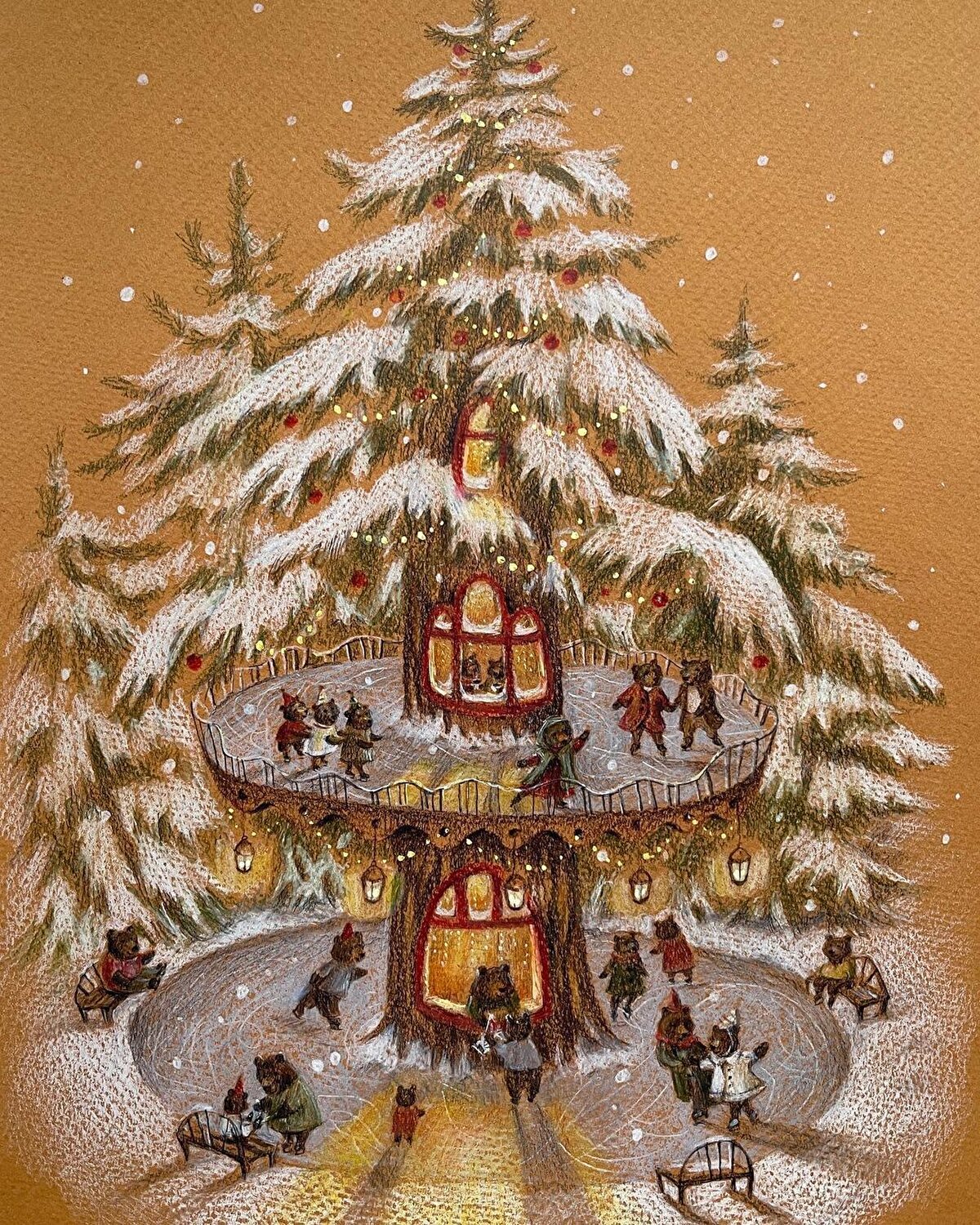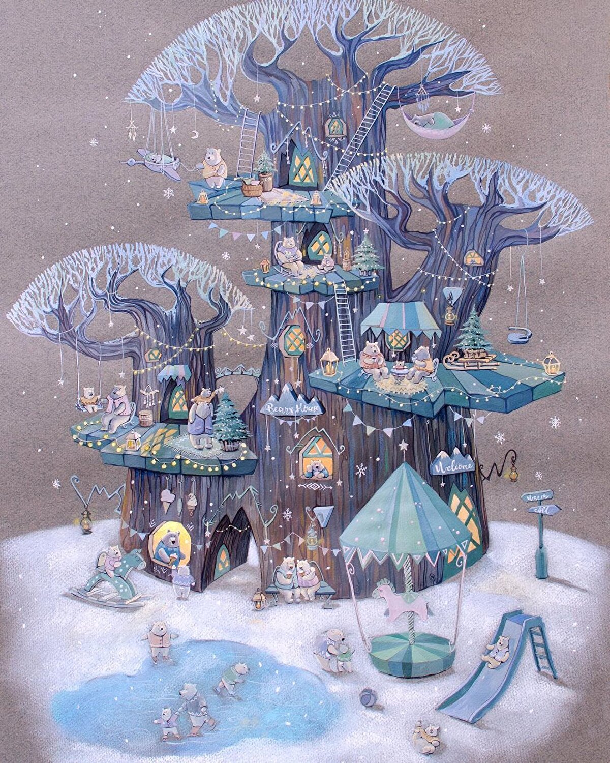 📌 Ukraynalı illüstrasyon sanatçısı Julia Vaihicheva, yaptığı sanat eserleriyle sevgi dolu ve büyülü bir atmosfer sunuyor. Sanatçı sanatın getirdiği neşe, mutluluk ve güzelliği ağaç evleri ile birleştirerek sımsıcak bir dünya oluşturuyor. Hayal gücünün bütün ayrıntılarını eserlerine yansıtan @fairyhouses_jv 'nin kış tasvirlerini biz çok sevdik. Özellikle de kış denilince akla ilk gelen kar tasvirleri bizi çok mutlu etti.