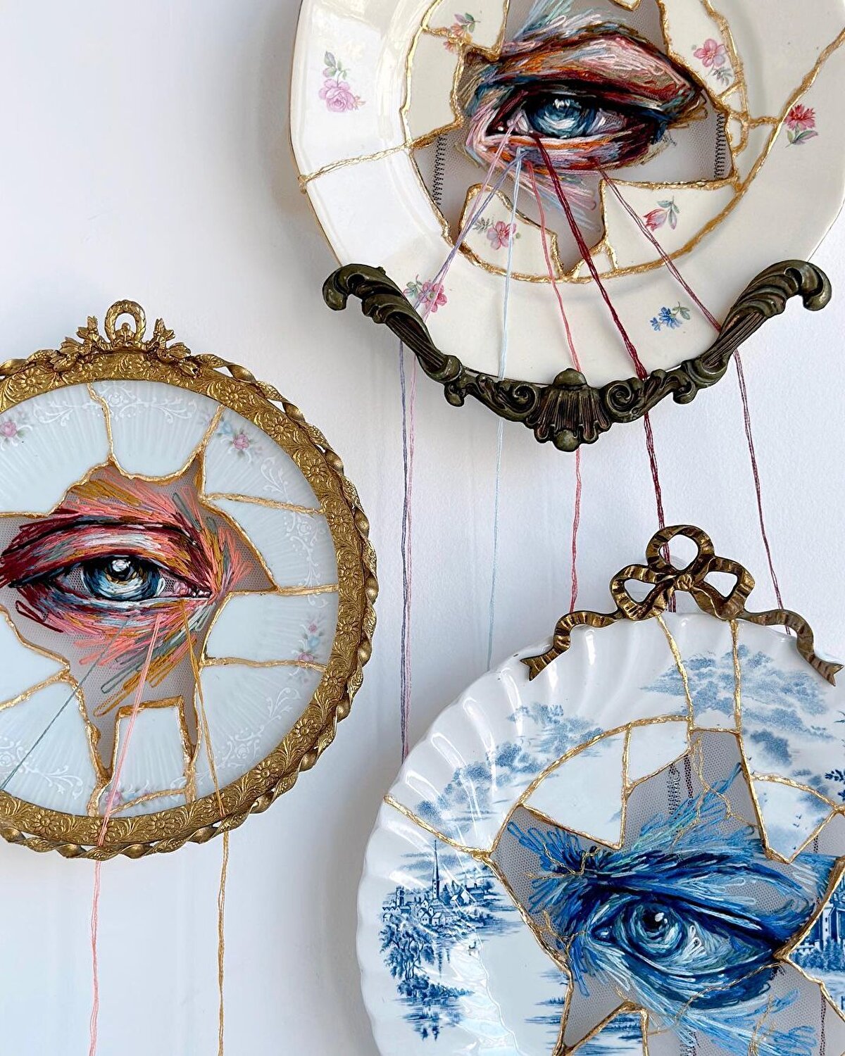 Ukraynalı nakış sanatçısı Katerina Marchenko (@kathrin_marchenko), üç boyutlu nakış desenleri ve portreler yapıyor. Büyükannesinin yanında sakin bir kasabada büyüdüğünü belirten sanatçı, yaşadığı yerde kimsenin acelesi olmadan sakince yaşamasını ilham alarak büyümüş. Kendi kendini yetiştirmiş bir sanatçı olan Katerina, en çok hayvanları, portreleri işlemeyi ve anatomik çalışmalar yapmayı seviyor. İşlemelerini ayrıntılı bir şekilde ortaya koymak için eserlerini yaparken renkli iplikleri tülün içine işliyor. Her bir eserine doğaçlama şekilde başlayan sanatçı, ana hatları çizdikten sonra tüle iplikleri dikmekten öte adeta bir resim gibi çiziyor. Renk uyumlarına çok dikkat eden sanatçı, gölgelemeye de gösterdiği özen sayesinde boyutlandırılmış ve gerçeğe yakın el işleri ortaya koyuyor.