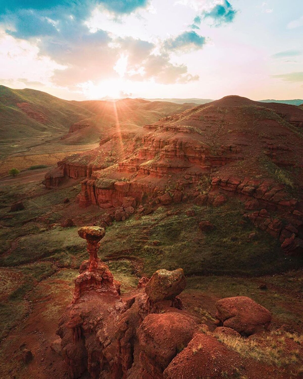 Buraya ''Kırmızı Periler Diyarı'' demekte o kadar haklılar ki! ✨ Gezilecek yerler listesine Narman Peri Bacaları'nı acilen eklememiz lazım. 🙌🏻😌⠀ ⠀ 📌 Erzurum'un doğa temelli turizm destinasyonlarından biri olan Narman Peri Bacaları, rüzgar ve su erozyonunun milyonlarca yıl toprakları aşındırmasıyla oluşmuş. Destinasyon, Erzurum Kültür ve Turizm İl Müdürlüğü, Atatürk Üniversitesi ilgili birimleri ve Kuzey Doğu Anadolu Kalkınma Ajansı tarafından yapılan çalışmalarla birlikte turistik bir nitelik kazanmış. Bu çalışmalar neticesinde de son yıllarda bölgeyi ziyaret eden yerli ve yabancı turist sayısında büyük bir artış gözlemlenmiş.⠀ ⠀ 📍Erzurum'nun kuzeydoğusunda yer alan Narman, şehre 90 km uzaklıkta. İlçe, idari olarak Doğu Anadadolu Bölgesi'nde bulunsa da coğrafik açıdan Doğu Karadeniz Bölümü'nde yer alıyor ve kısmen bu bölgenin özelliklerini taşıyor. ⠀ ⠀ Harika fotoğraflar için @cagriselek 'e teşekkürler. 🧡⠀
