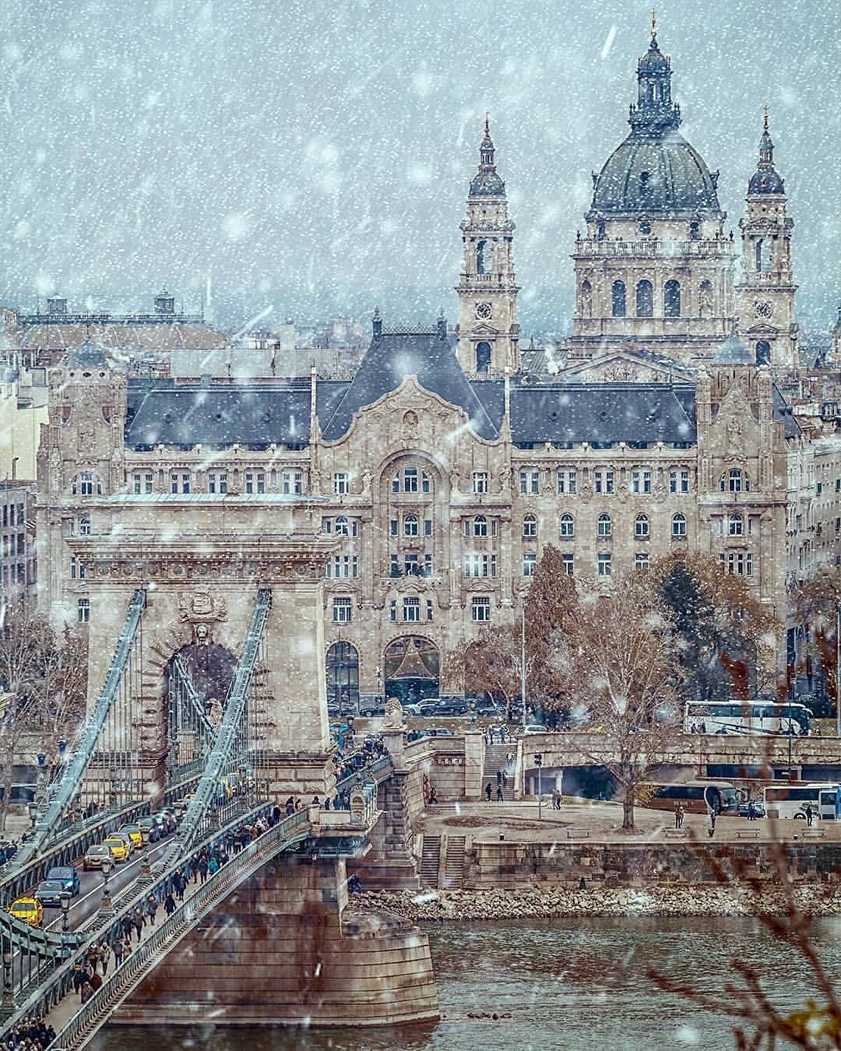 Tuna Nehri'nin iki yakasında konumlanmış olan ve özellikle kar yağdığında adeta bir kış masalına dönüşen Budapeşte; tarihi binaları, köprüleri ve karla kaplanan doğal güzellikleriyle kendine hayran bırakan manzaralara bürünüyor.