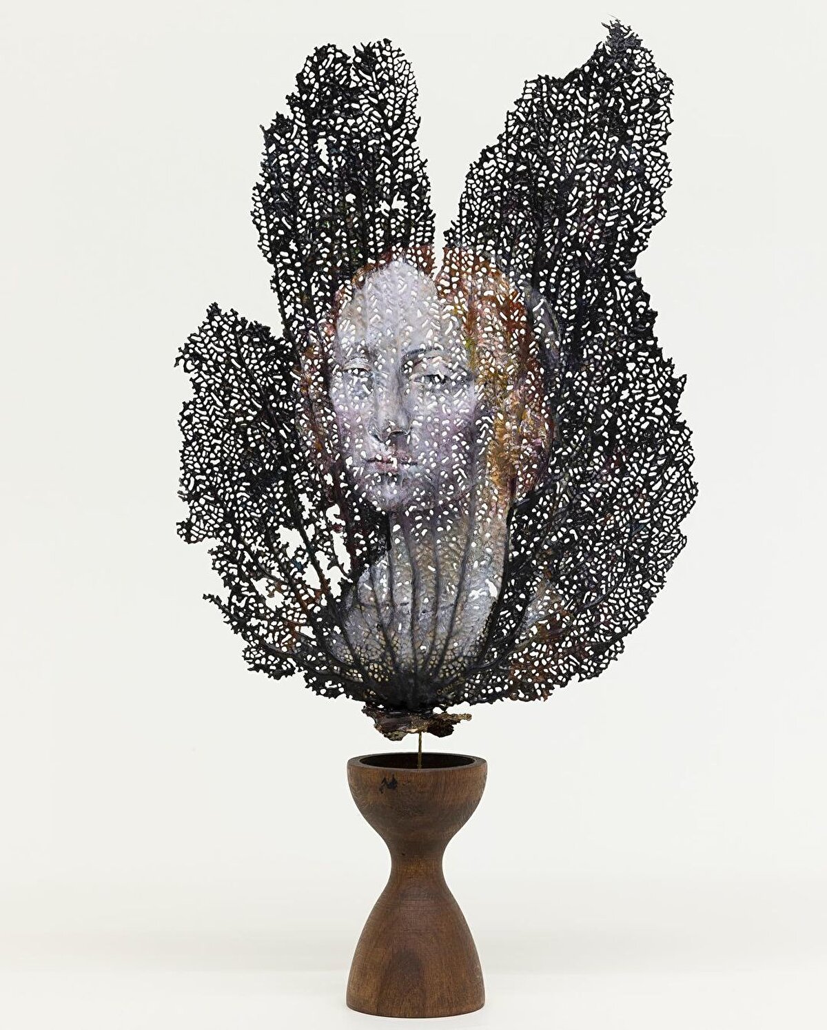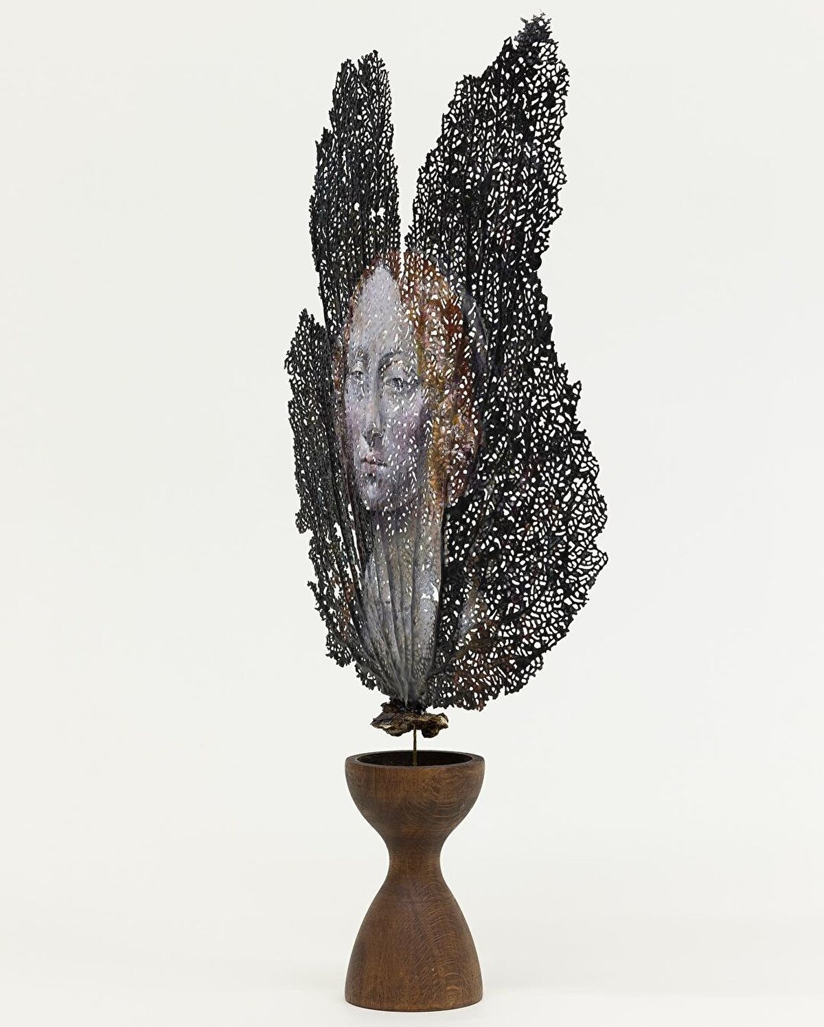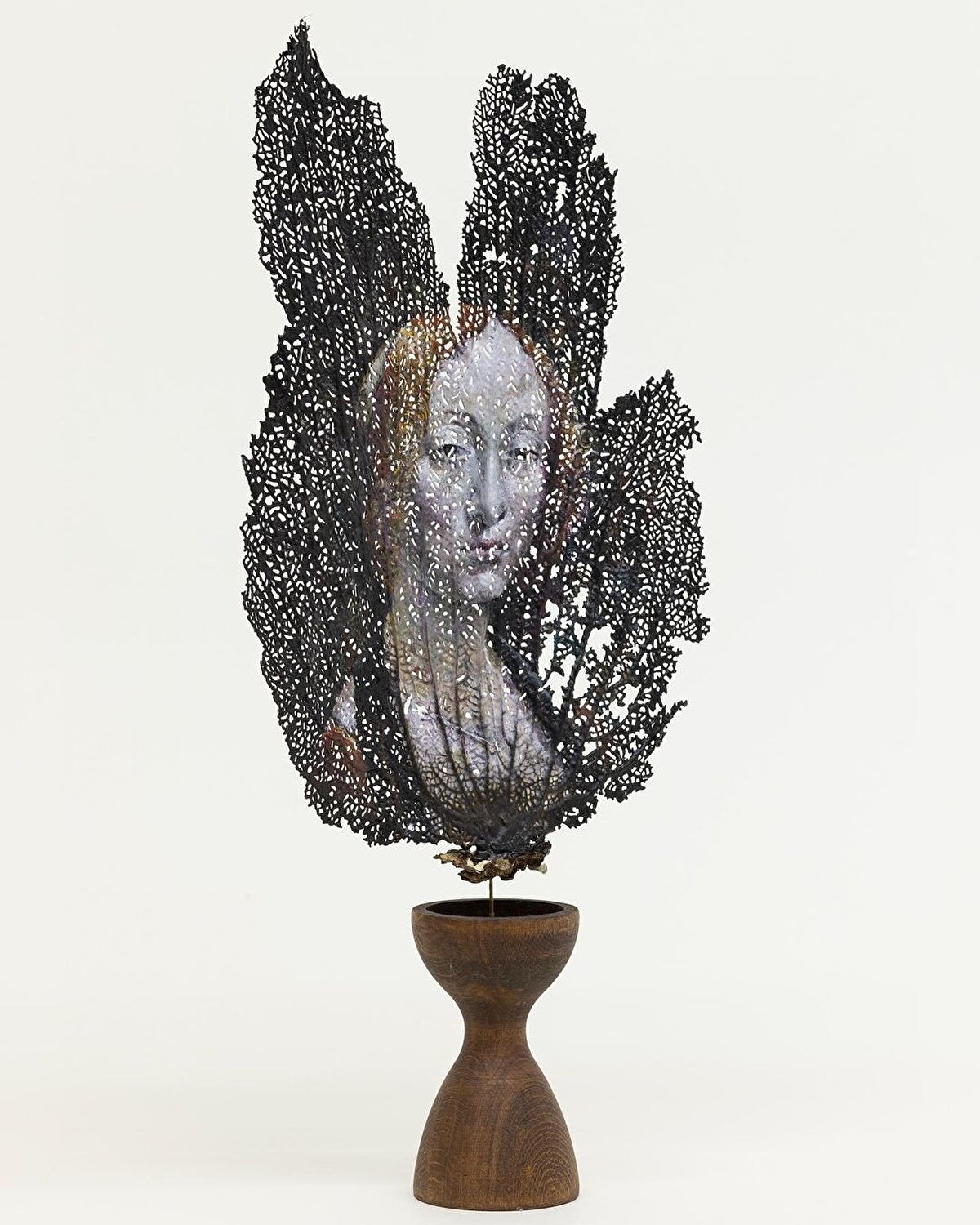 Sanatçı Chris Oh (@cchris.ohh) tarafından yapılan Gorgon adlı eser, 2023 yılında ahşap tabanlı deniz pervanesi üzerine akrilik boya kullanılarak yapılmış bir çalışma. Eser, Leonardo da Vinci'nin "Ginevra de' Benci Portresi"nden bir detayı deniz pervanesinin her iki tarafına yansıtarak tasvir eder. Deniz pervanesi, ilkel sulardan ve denizin şekilsizliğinden sembolik olarak bahsederken, oturan figürün özellikleri, ağaç dalları gibi büyüyen poliplerin arasında kaybolur. Gerçek benliğin tersine çevrilmesini araştıran eser, Gorgon Medusa efsanesine paralellikler çizer. Medusa'nın bakışlarının insanları taşa çevirme gücüne ve başını aynada görenlerin hayatlarının sona ermesine ilişkin mitolojik öyküye atıfta bulunur. Klasik sanat, mitoloji ve denizin gizemli özellikleriyle ilgili düşündürücü bir keşfin izlenimini yansıtan bu resmin yarı saydam şekli, figürün çevresinde hayalet gibi iç içe geçtiği hissini verir.