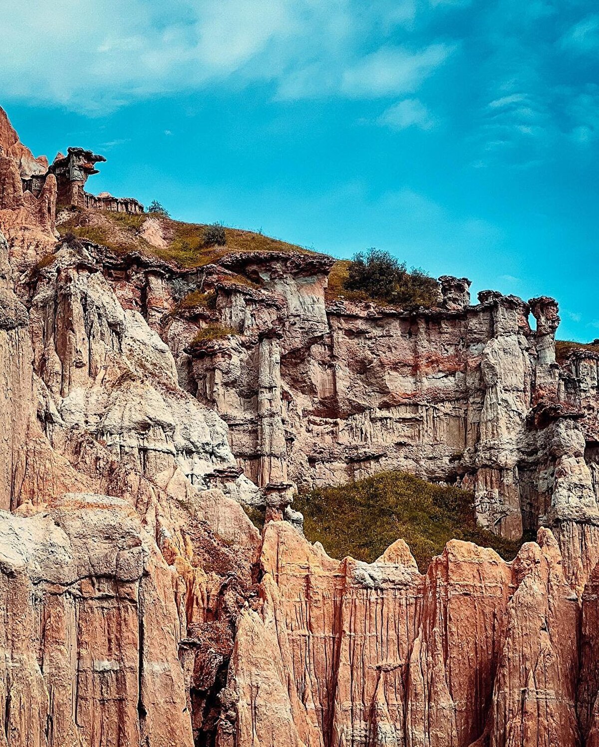 İlk görüşte, elle oyularak şekil verildiğini düşüneceğiniz bu harika görüntü Manisa'dan. Vadi boyunca uzanan peri bacalarıyla ünlü Kula bölgesi'nde bulunan Kuladokya, şiddetli sağanak ve kuvvetli rüzgarların kayaları aşındırmasıyla şekil alan tamamen doğal bir oluşum.