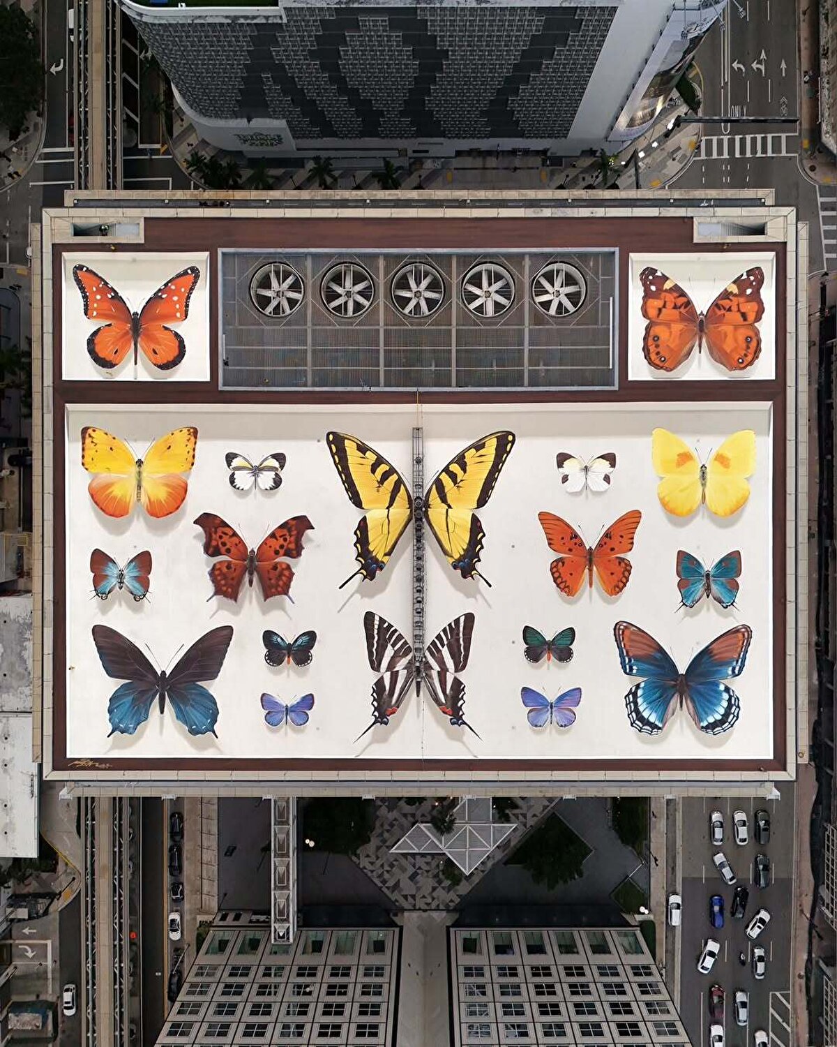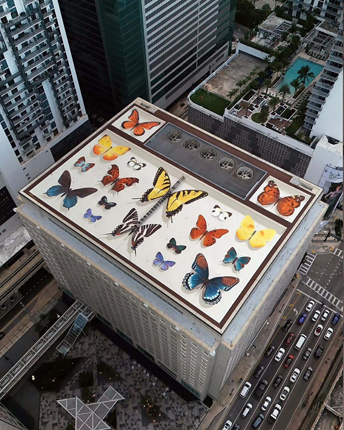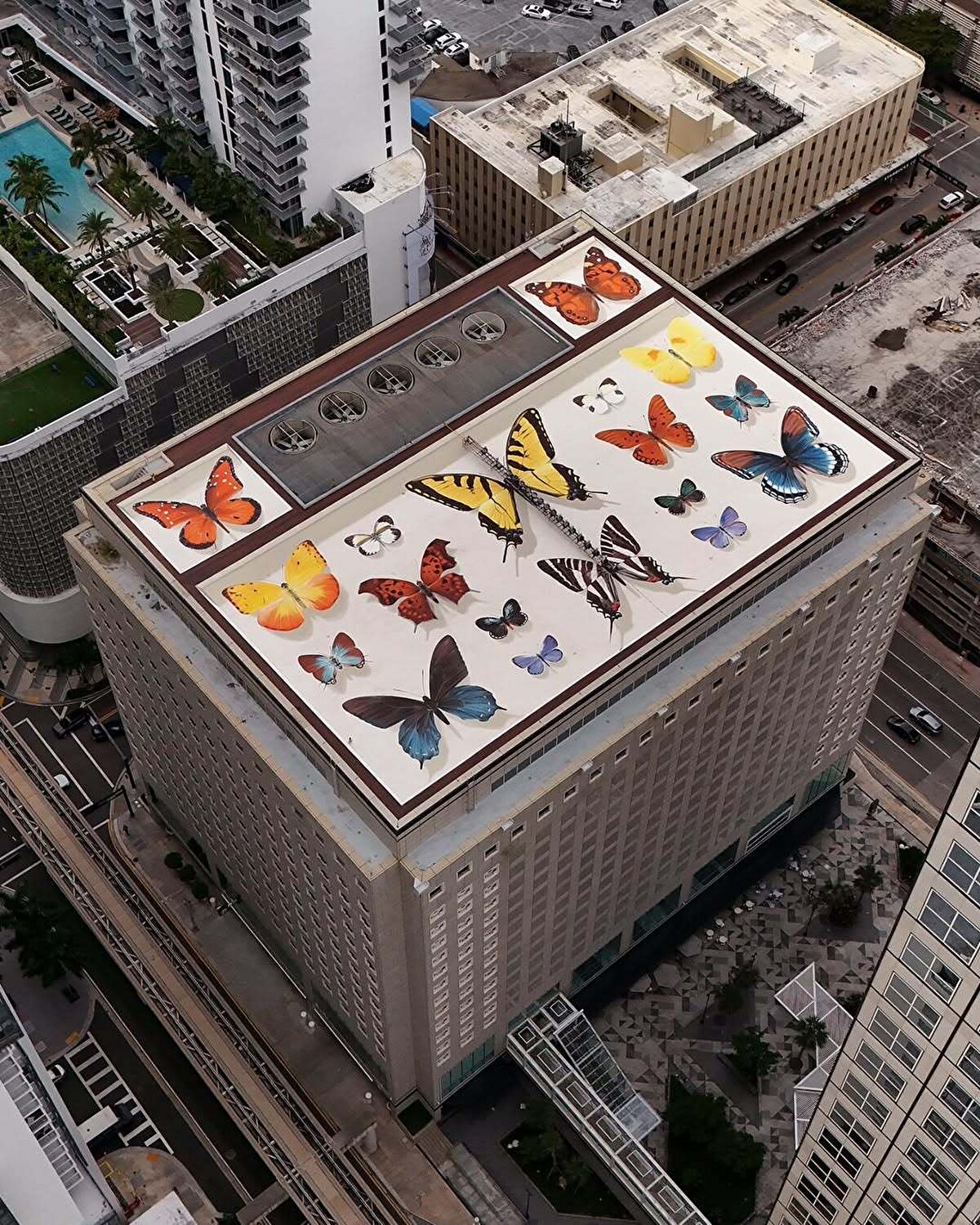 Mantra'nın son çalışması, Miami'deki Southeast Financial Center binasının çatısında yer alan ve şimdiye kadarki en büyük duvar resmi olarak kayda geçti. Sanatçı, yapının karakteristik düzenine uyum sağlayarak canlı renklerle bezenmiş kelebekleri, binanın altyapı sistemleriyle uyumlu bir şekilde konumlandırdı. Bu eser, Güney Florida'ya özgü olan ve nesli tükenme tehlikesiyle karşı karşıya bulunan Miami mavi kelebeği gibi çeşitli türleri barındırıyor. Mantra, “Miami'de çalışmak her zaman bir zevk. Burası, tıpkı duvar resmimdeki kelebekler gibi, farklı kültürlerin ve insanların bir araya gelerek oluşturduğu canlı bir şehir," diyerek eserine olan bağını ifade ediyor.