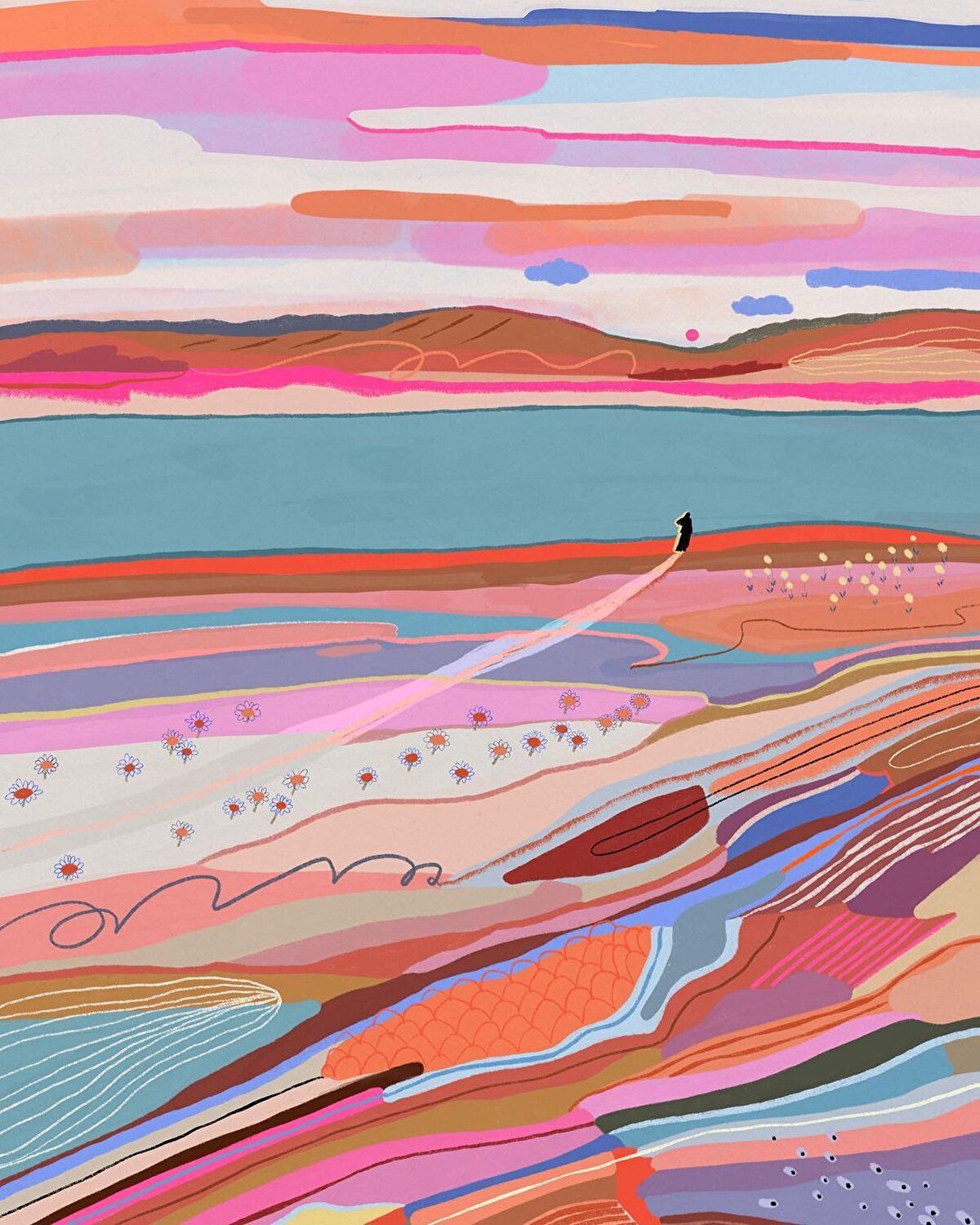 İtalyan sanatçı @marinaestercastaldo, Londra'da yaşıyor ve çalışıyor. Napoli'de doğup büyüyen Marina, yaşadığı kültürü, insanların misafirperverliğini, içinde bulunduğu doğayı ve sıcak havayı eserlerinde yansıtmayı seviyor. Çalışmalarında zıt ve güçlü renkler kullanan sanatçı, tarzını ise spontane ve doğal olarak açıklıyor. Sanatçı, sürekli gelişen ve değişen bir insan olmasını sanatına da yansıtarak onu büyüme tarzına dahil ettiğini söylüyor. Marina, sanatını icra ederken en çok doğadan, günlük yaşamdan ve her zaman hissettiğimiz ama çoğu zaman göstermekten çekindiğimiz duygularımızdan etkileniyor. Çalışmalarıyla başarmayı çalıştığı şeyi ise, ''Bir şey hissettirmek'' olduğunu dile getiren sanatçı, sanatını görenlerin nasıl açıklayacağını ya da adlandıracağını bilemese de sanatına baktığında bir duygu, bir titreşim hissetmelerini istiyor.