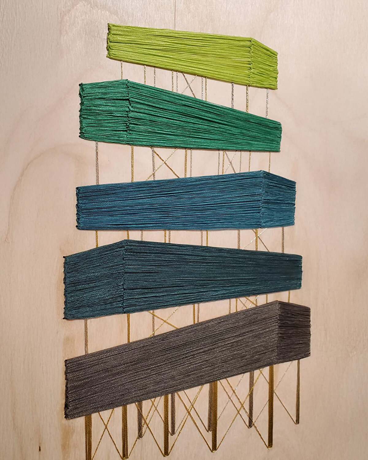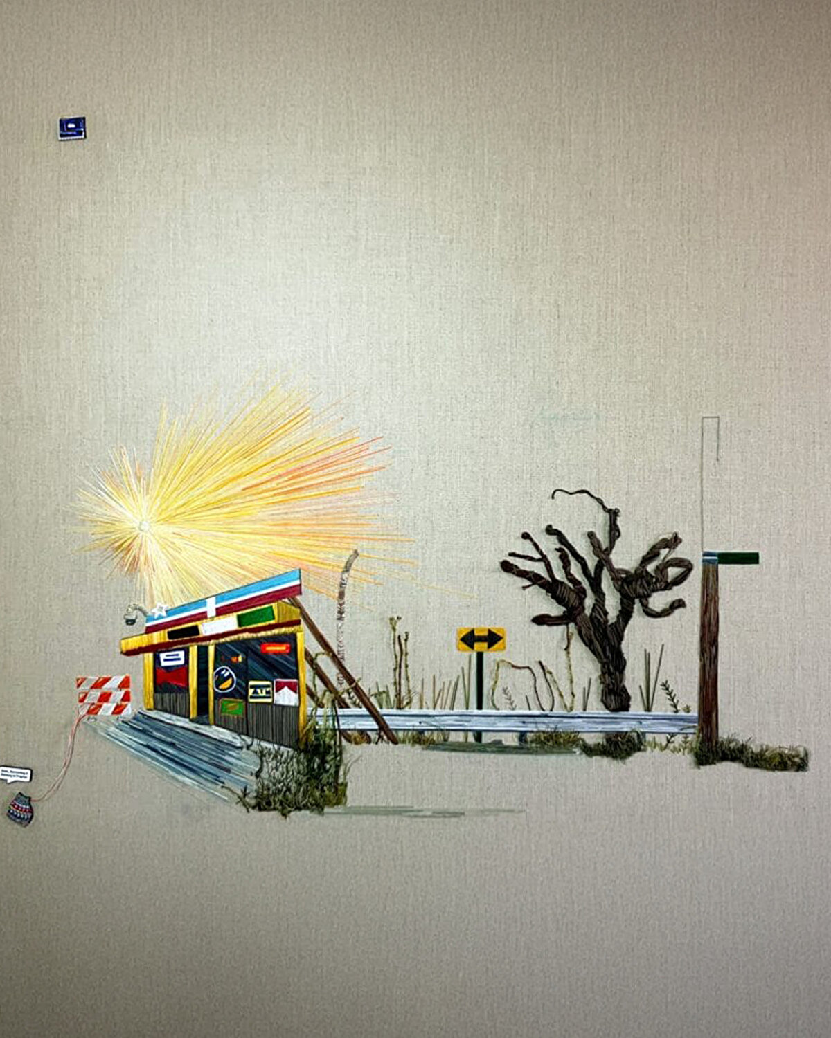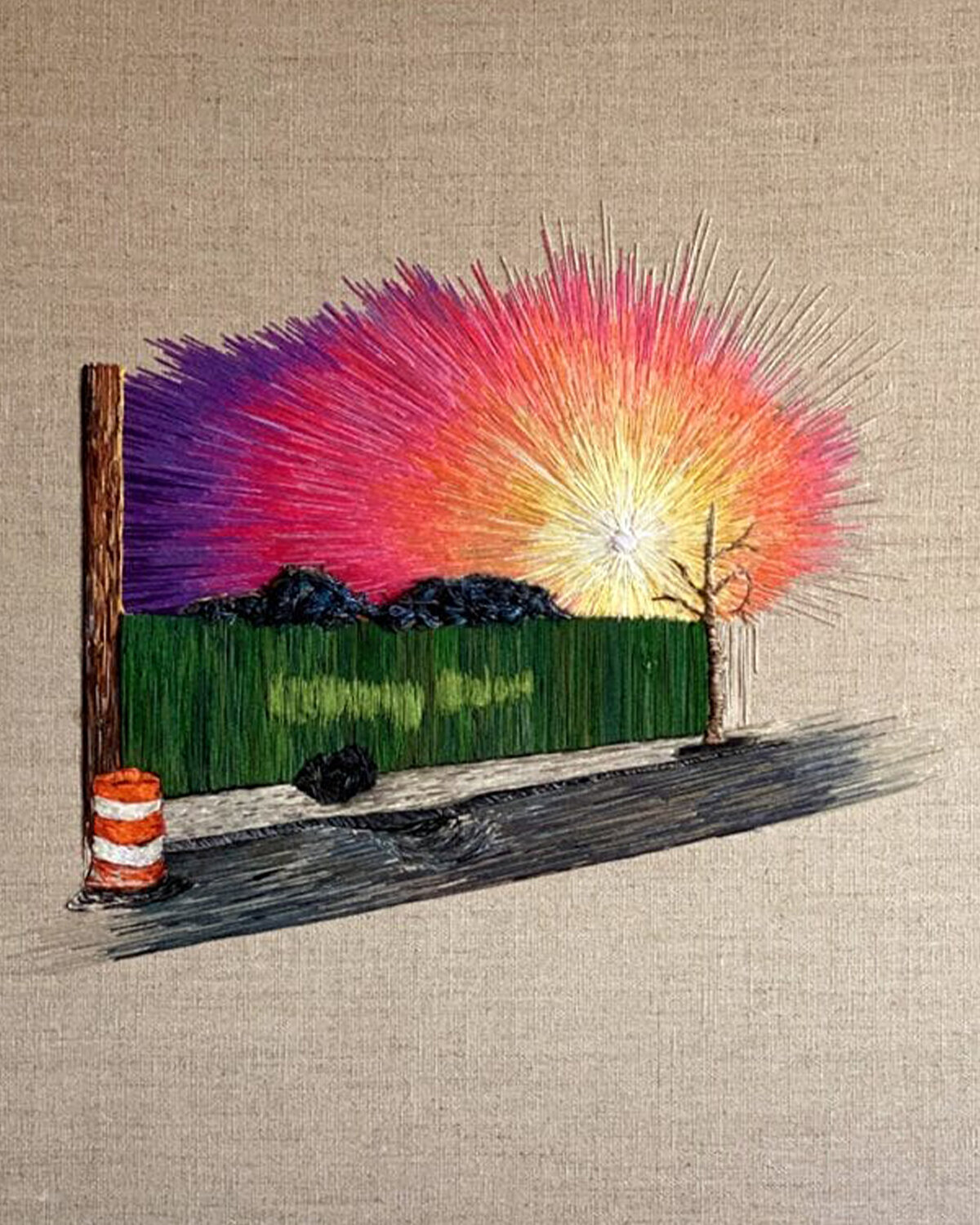 New York Bronx'taki çocukluk anılarından kesitleri ailesinin memleketi Porto Riko ile birleştiren sanatçı, keten kumaş üzerine pamuk ve metalik iplikle bilindik şehir manzaralarını işleyerek hayal gücü ve rengarenk ipliklerle saklamak istediği anıları canlı nakışlara dönüştürüyor. Çocukluğundan kalan hatıra anları, manzaraları ve gündelik mahalle yaşamından kesitleri aklının bir köşesinden çıkarıp nakış işleme tekniğiyle kumaş üzerine aktaran sanatçı @msmelissacalderon, bazen bir gün batımı manzarası, bazen renkli kapıların olduğu bir mahalleden kesitler bazen de gündelik eşyaları renkli iplikler aracılığıyla kusursuz şekilde keten kumaş üzerine işliyor.