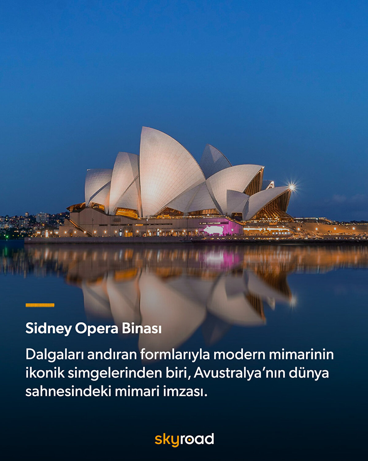Avustralya'nın kıyısındaki Sydney Opera Binası, modern mimarinin sesle kurduğu en estetik bağlardan biridir; bir yelkeni andıran formuyla hem denizi hem kültürü kucaklar. Bunlar gibi birçok yapılar her biri kendi dilinde konuşur, ama ortak bir şey anlatır: İnsan hayal ettiği sürece taş da can bulur.